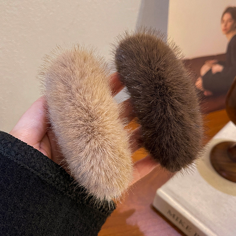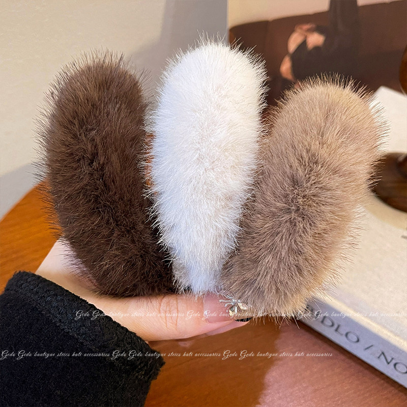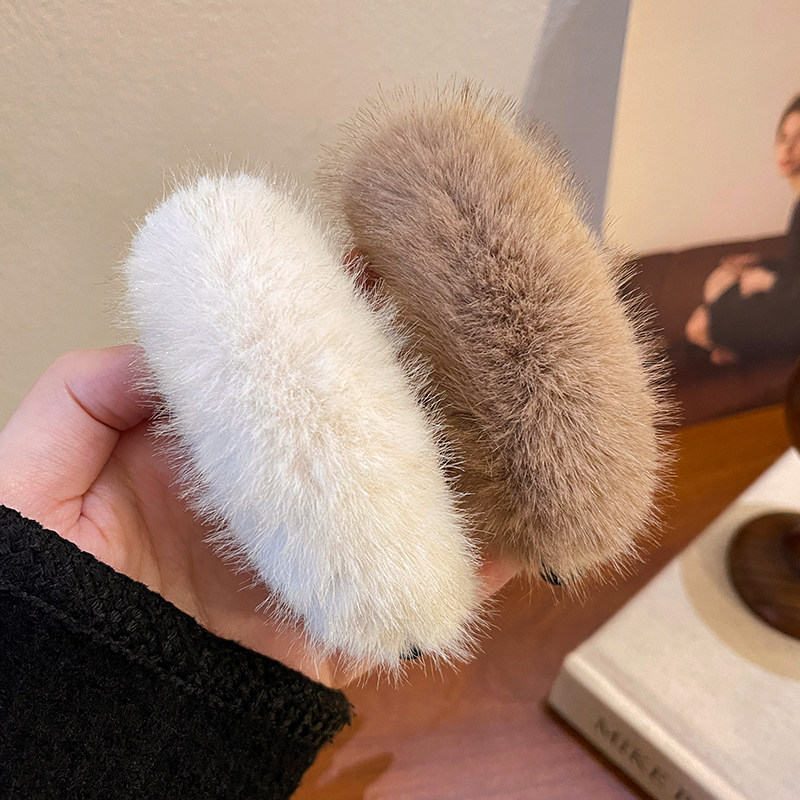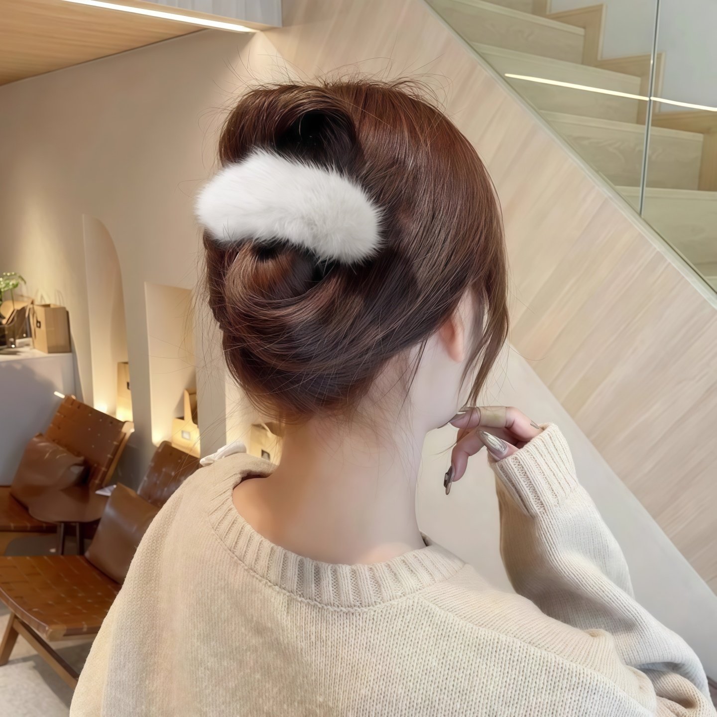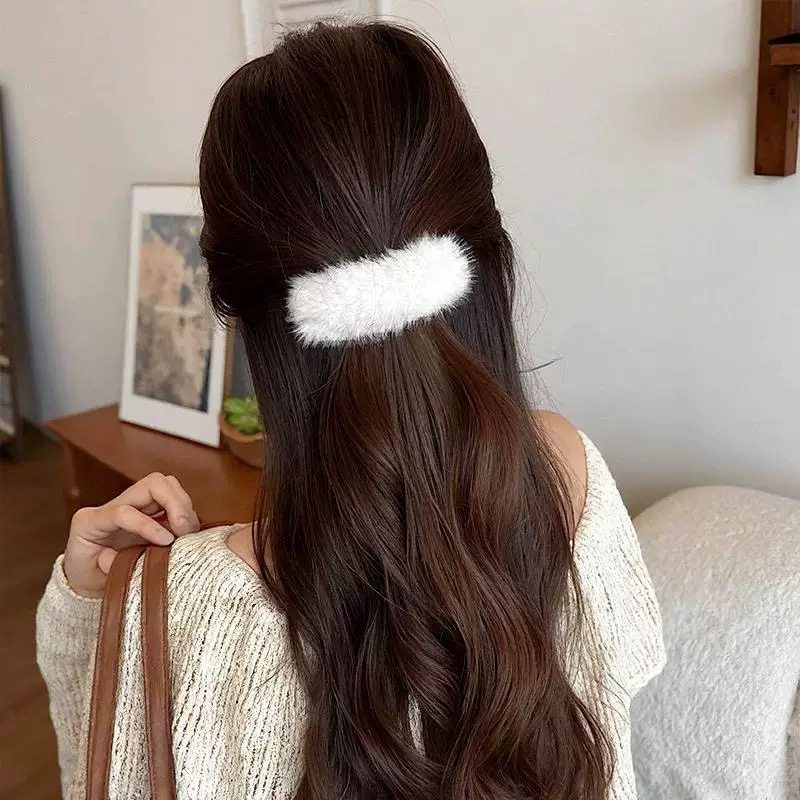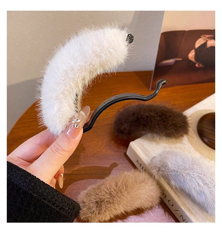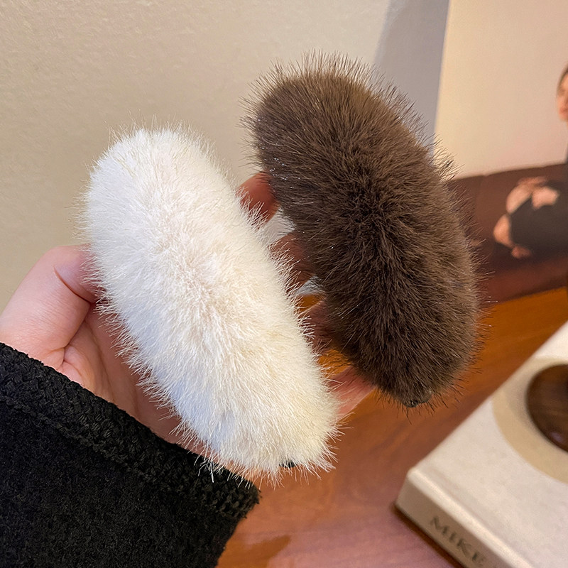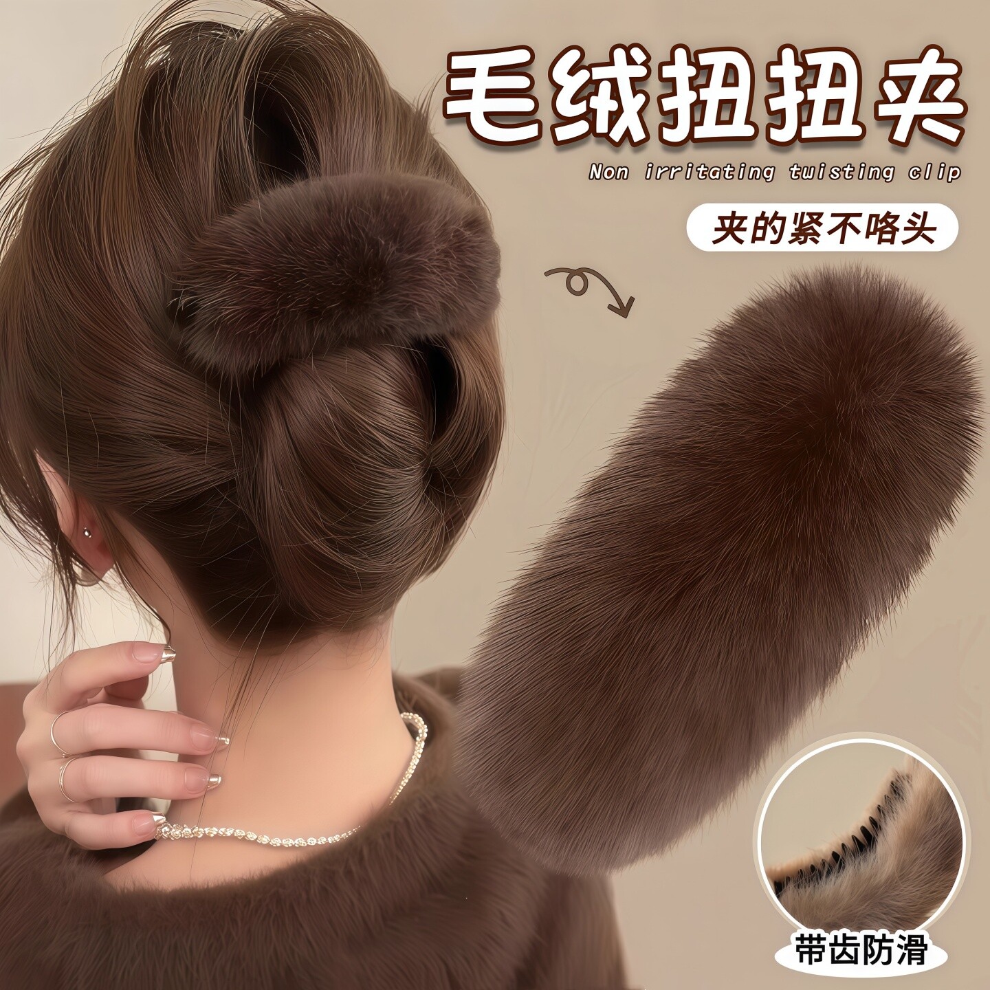 毛绒发夹女后脑勺毛毛扭扭夹新款一字抓夹高级感鲨鱼夹高马尾发扣