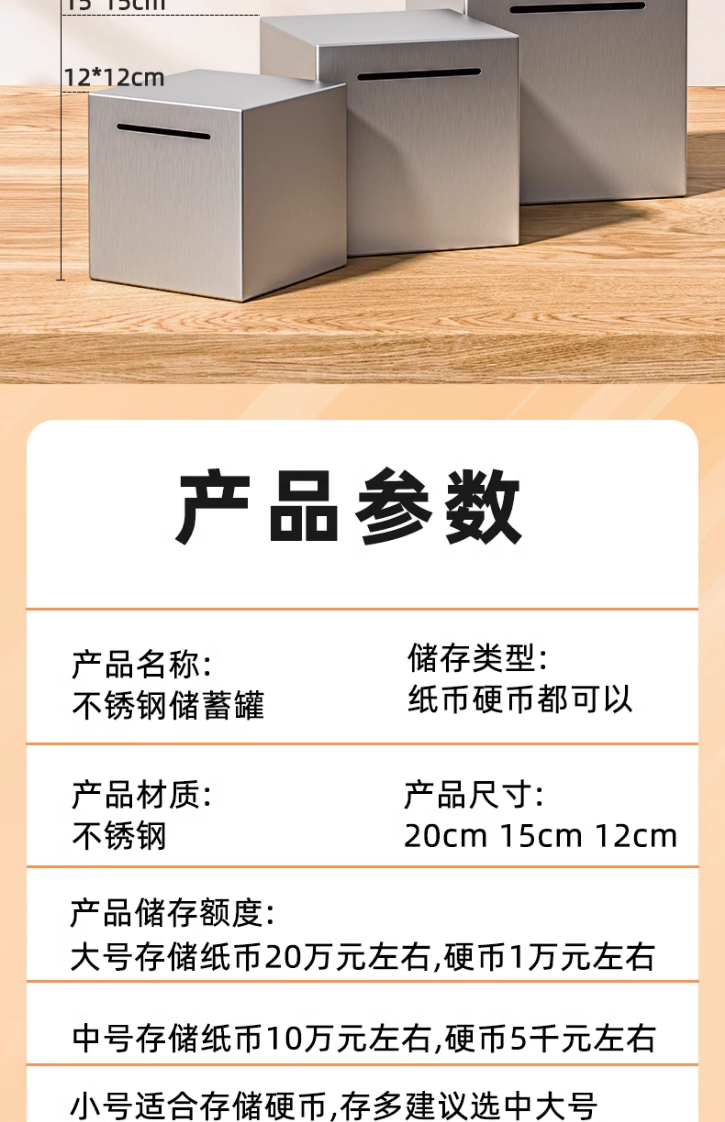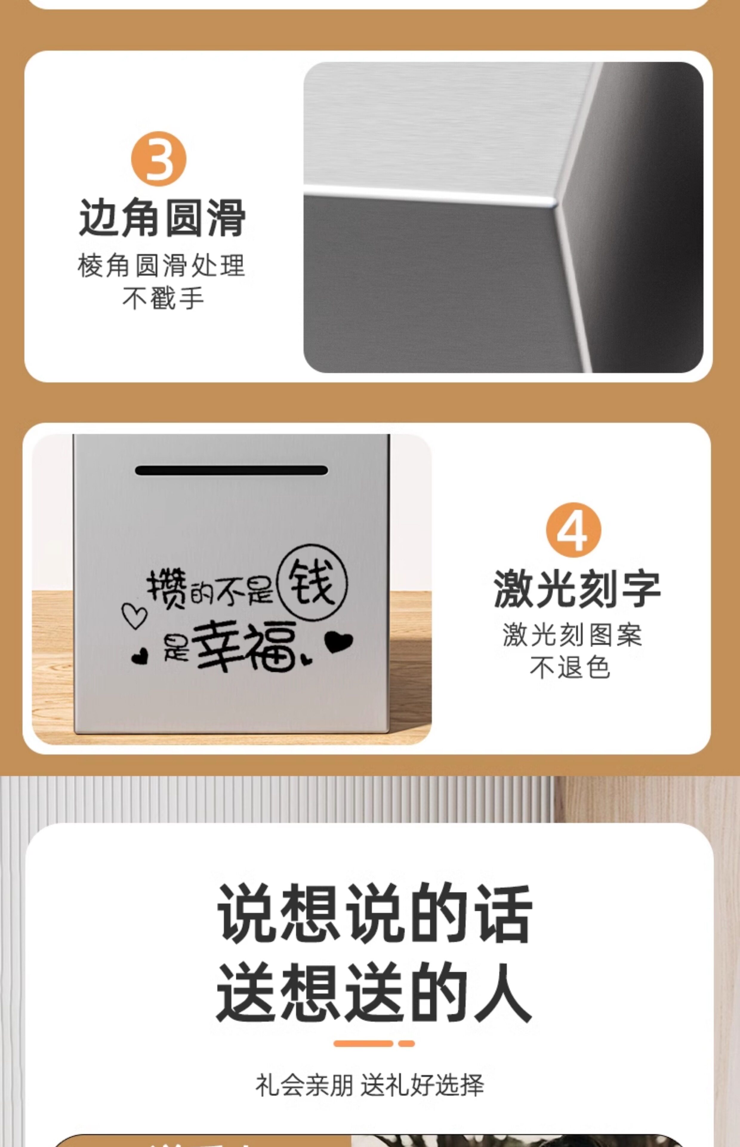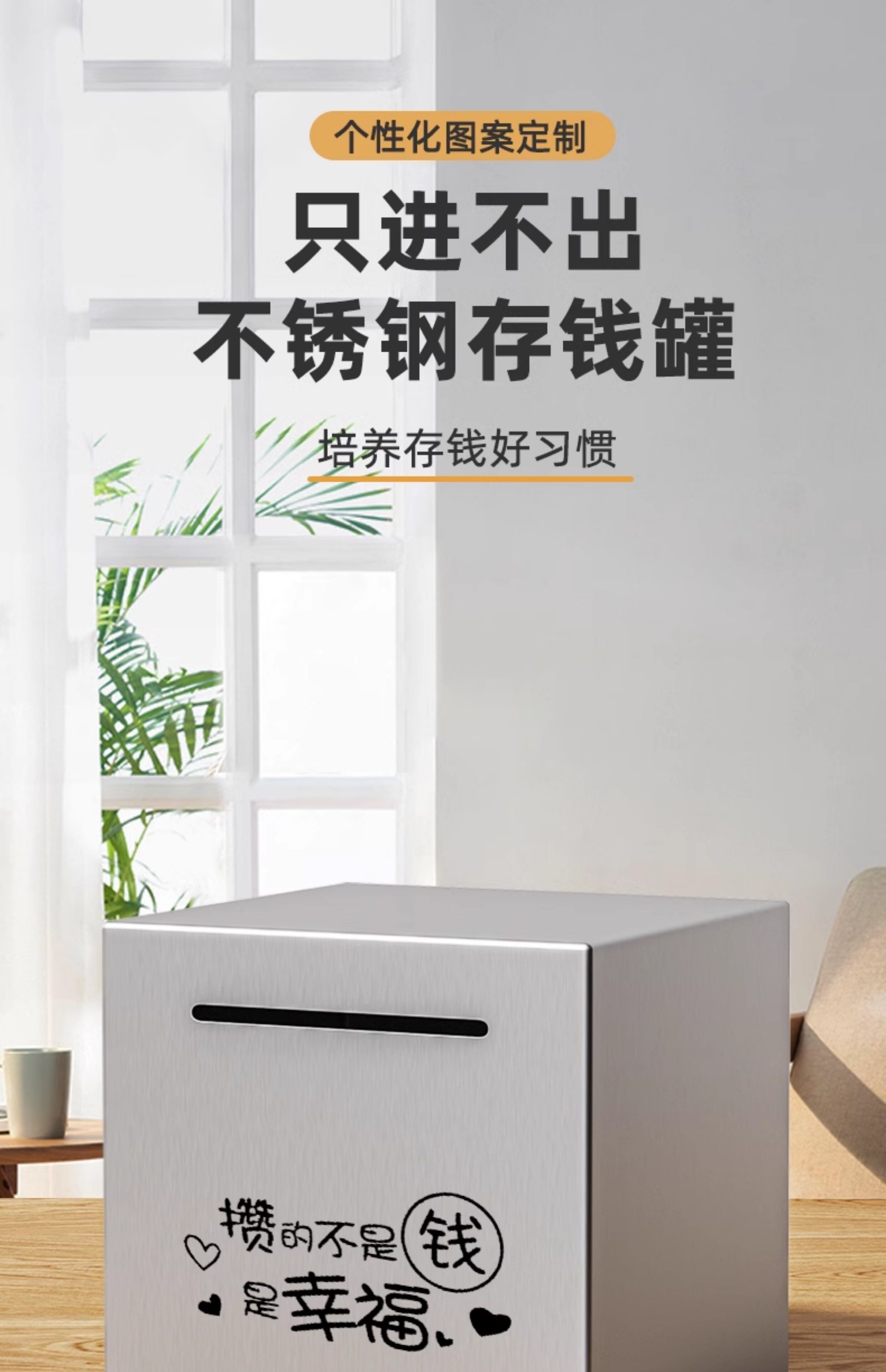 新款存钱罐只进不出成人女孩男孩2025不锈钢储蓄罐大容量硬币纸币