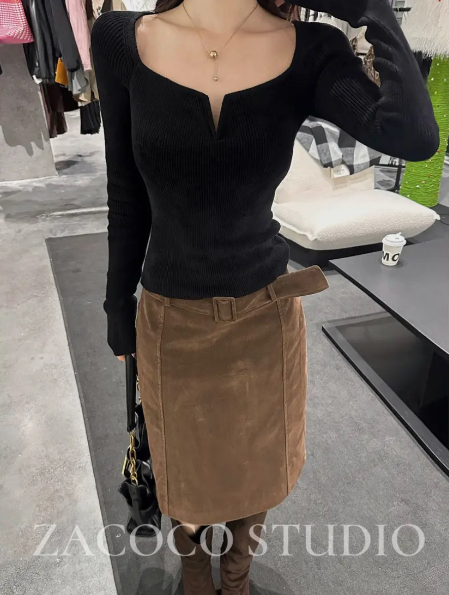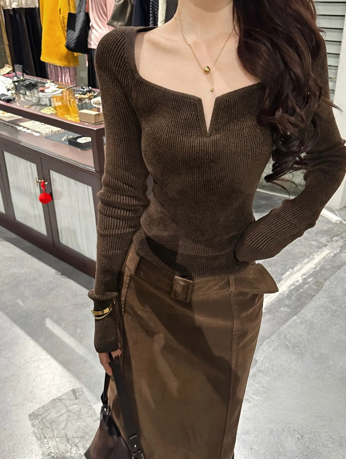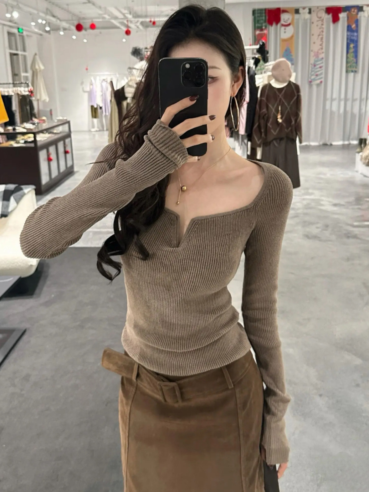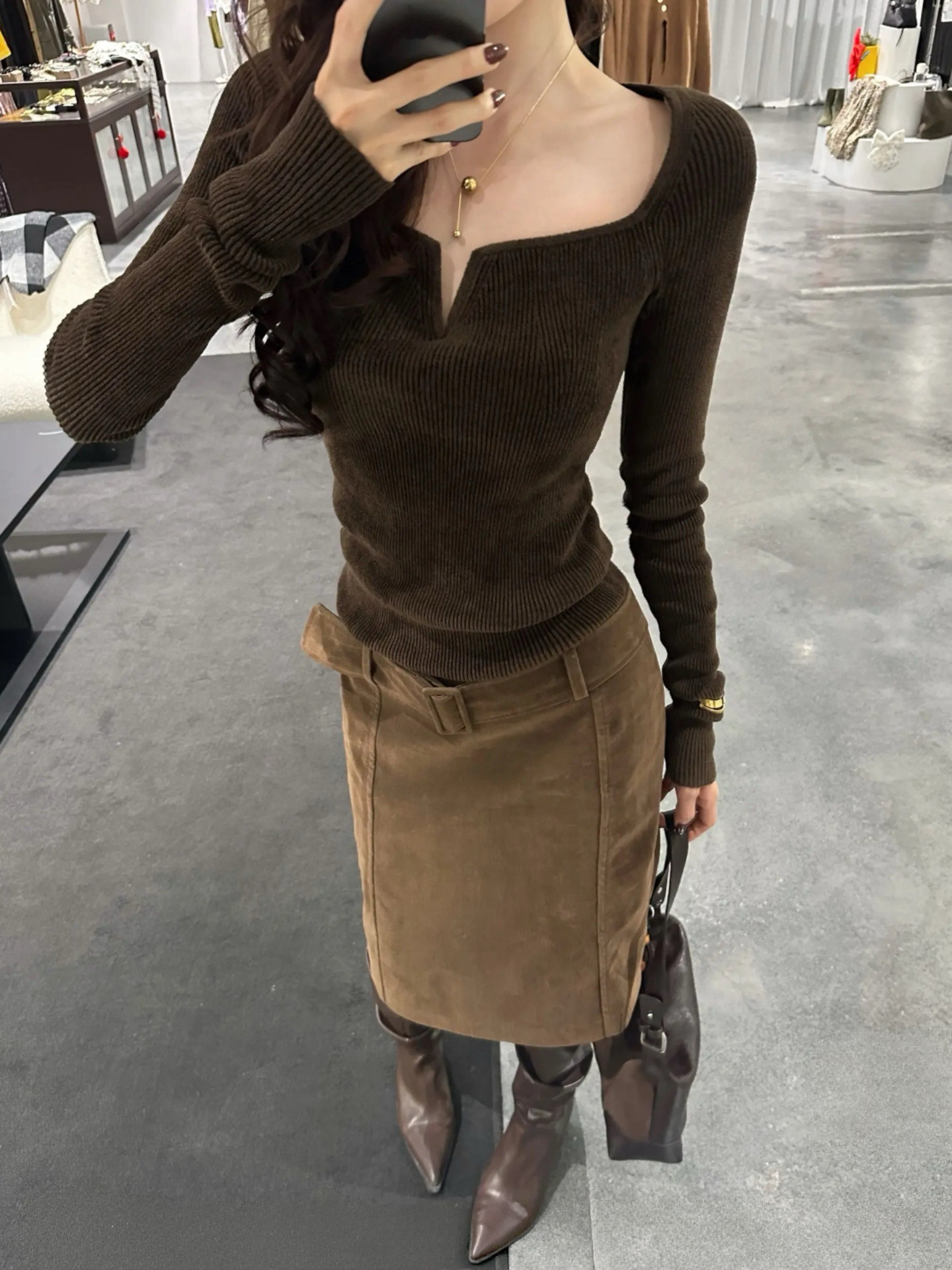 韩系冬装穿搭一整套女洋气高级感修身内搭针织衫上衣半身裙两件套