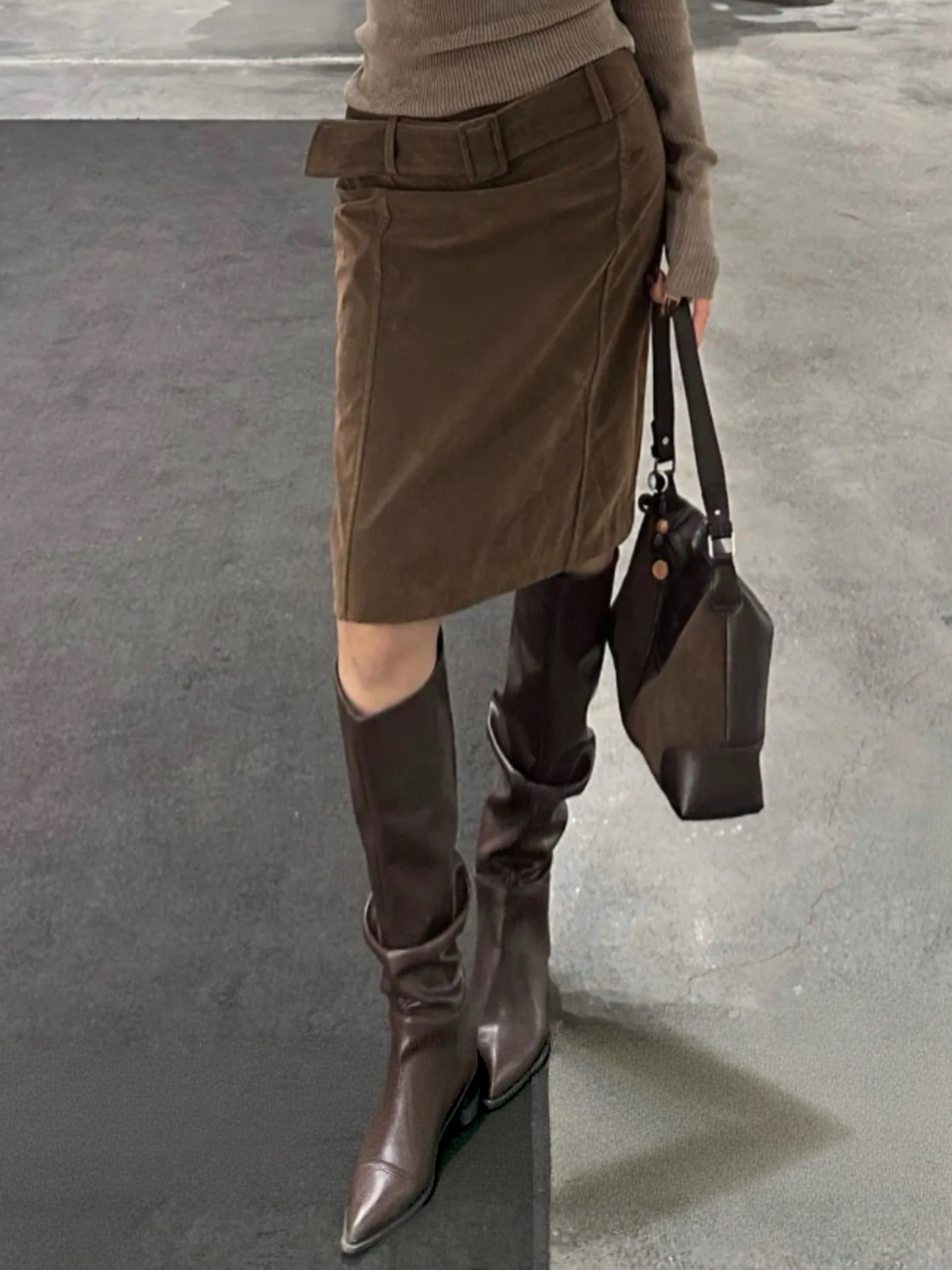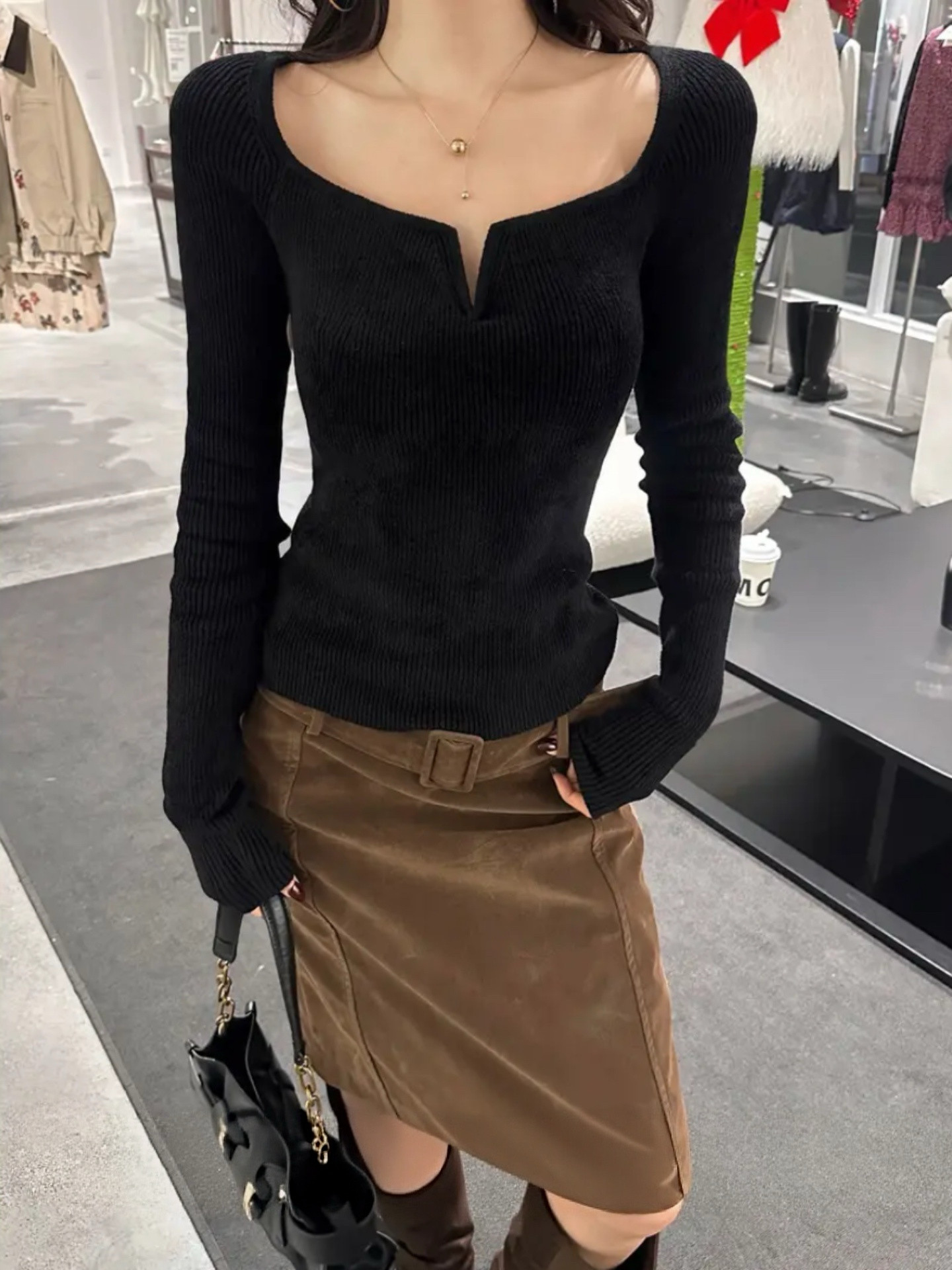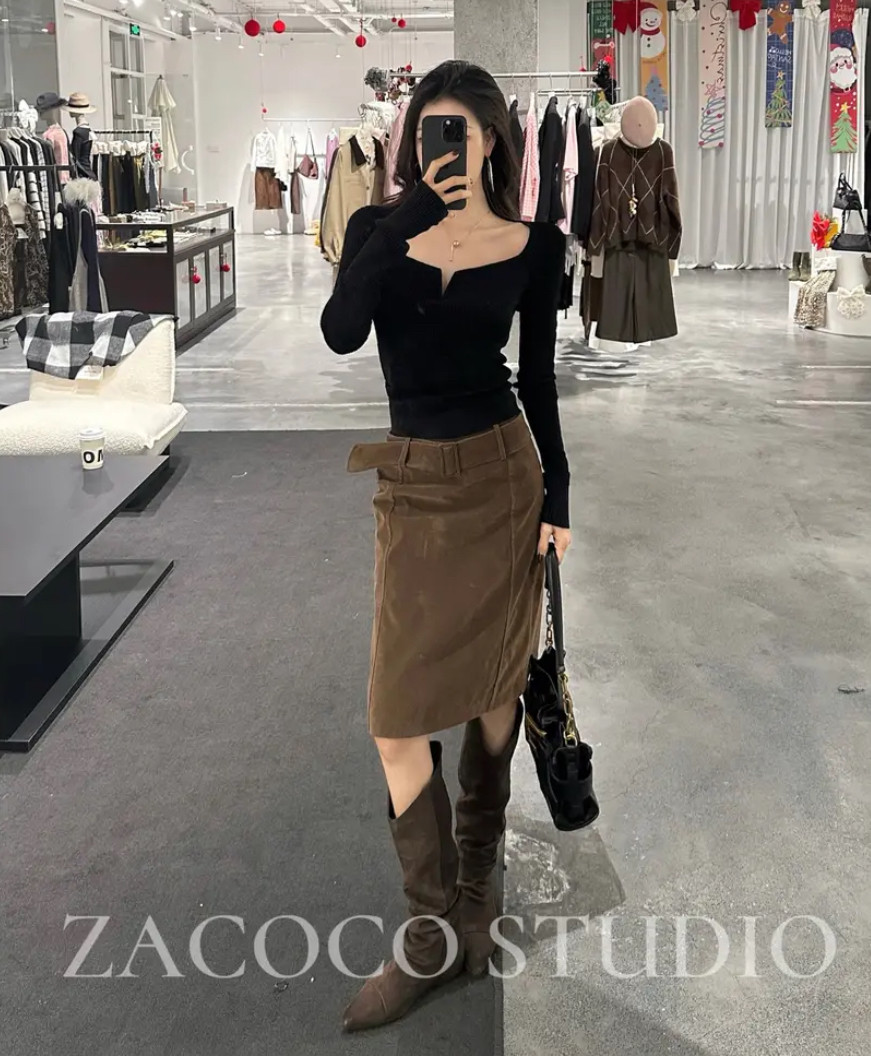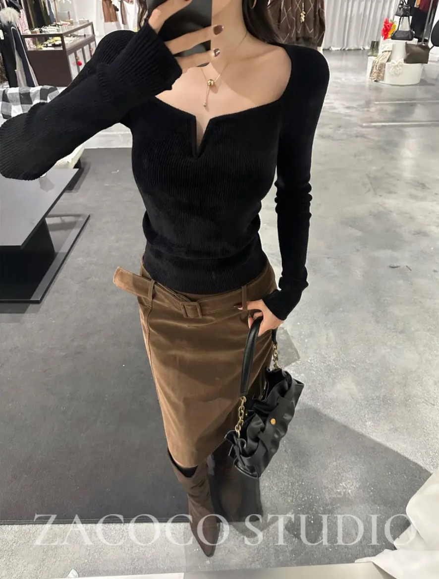 韩系冬装穿搭一整套女洋气高级感修身内搭针织衫上衣半身裙两件套