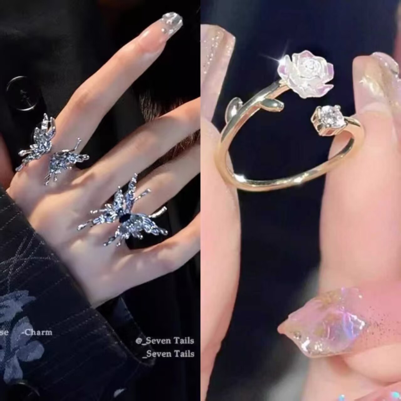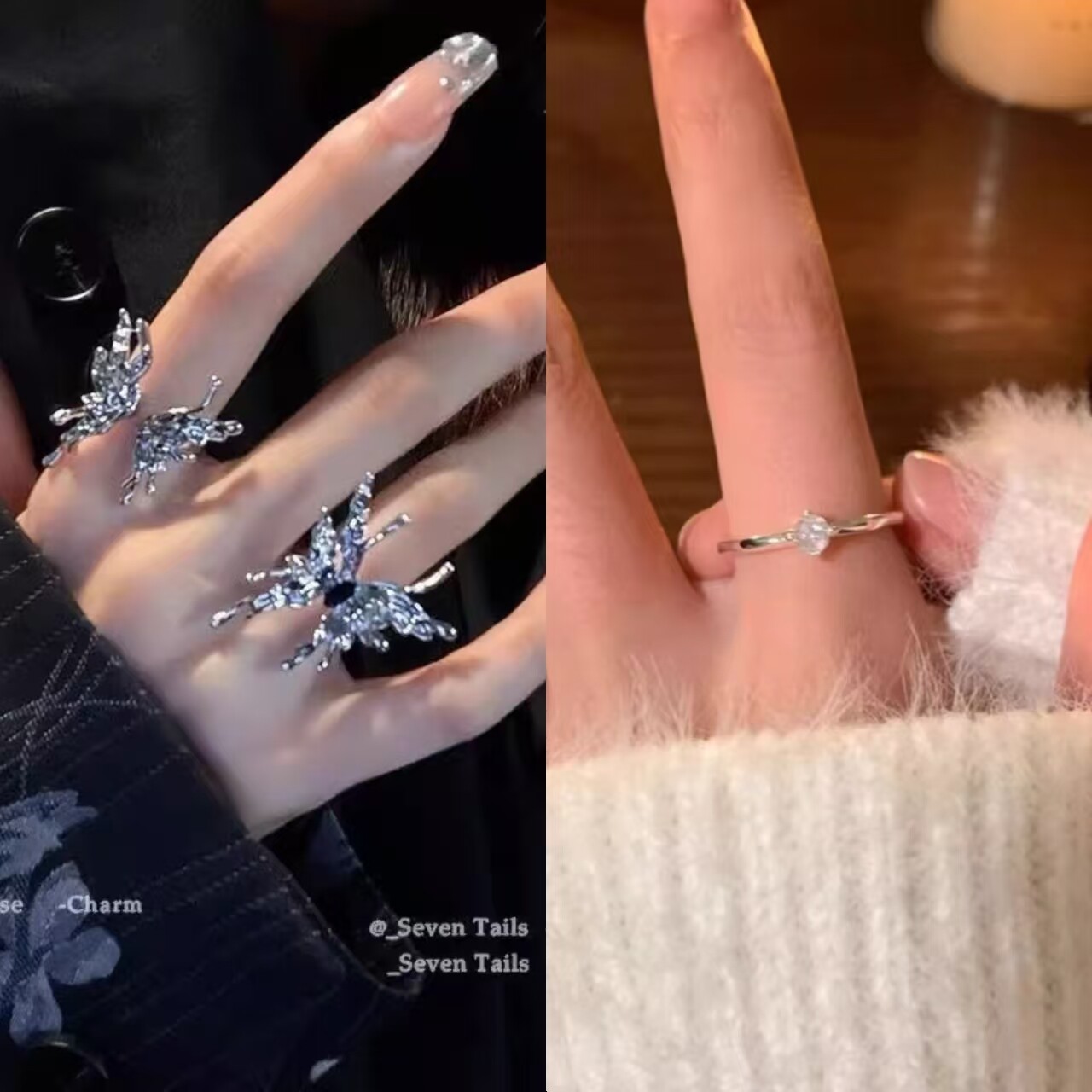 韩系轻奢高颜值蝴蝶开口戒指优雅简约开口食指指环小众百搭精致