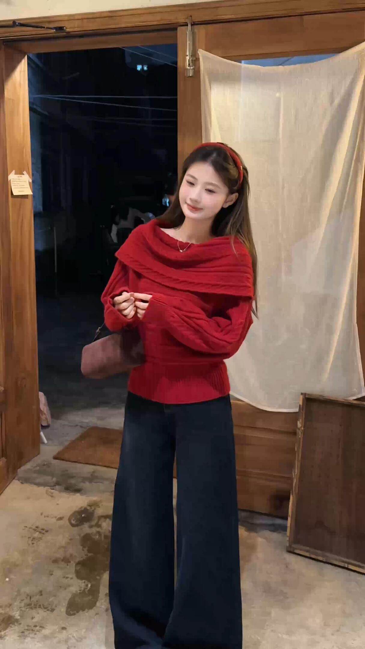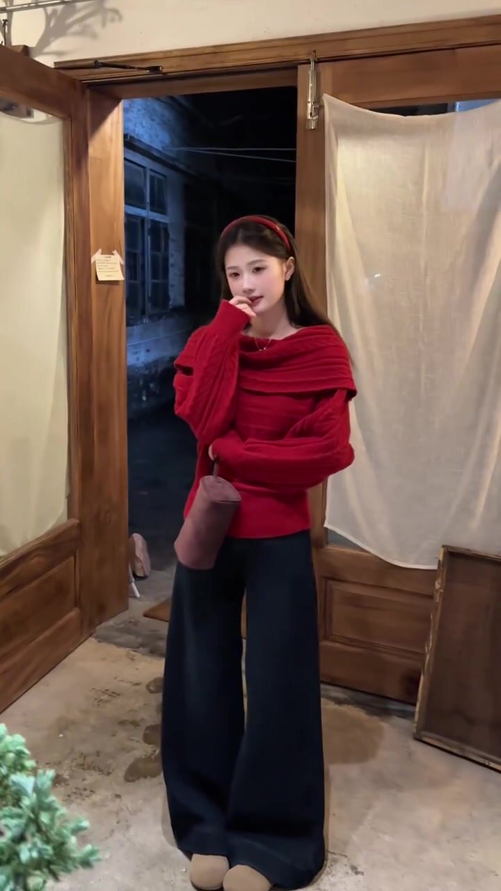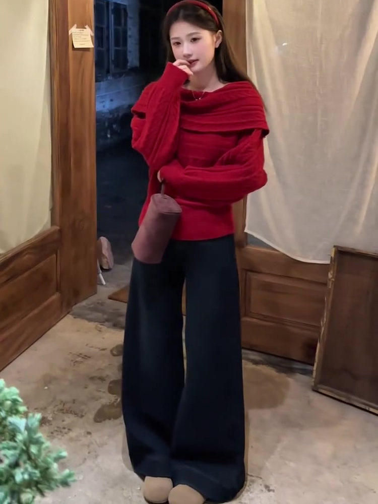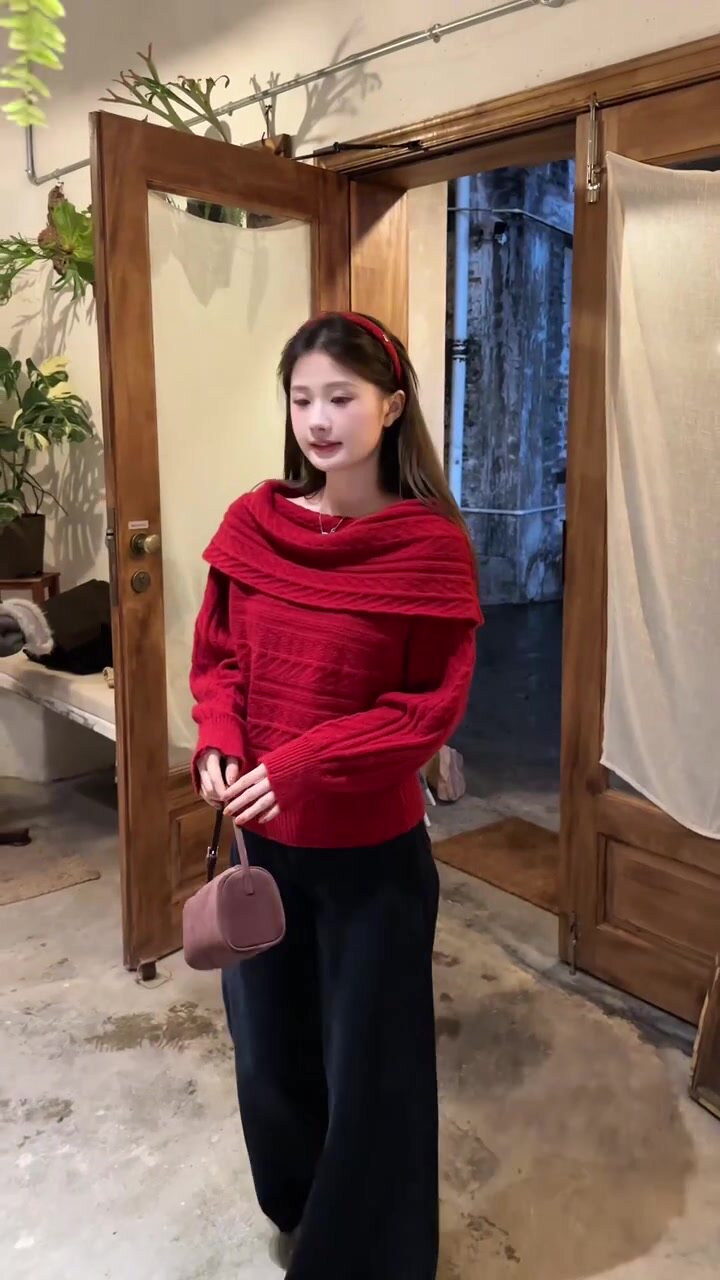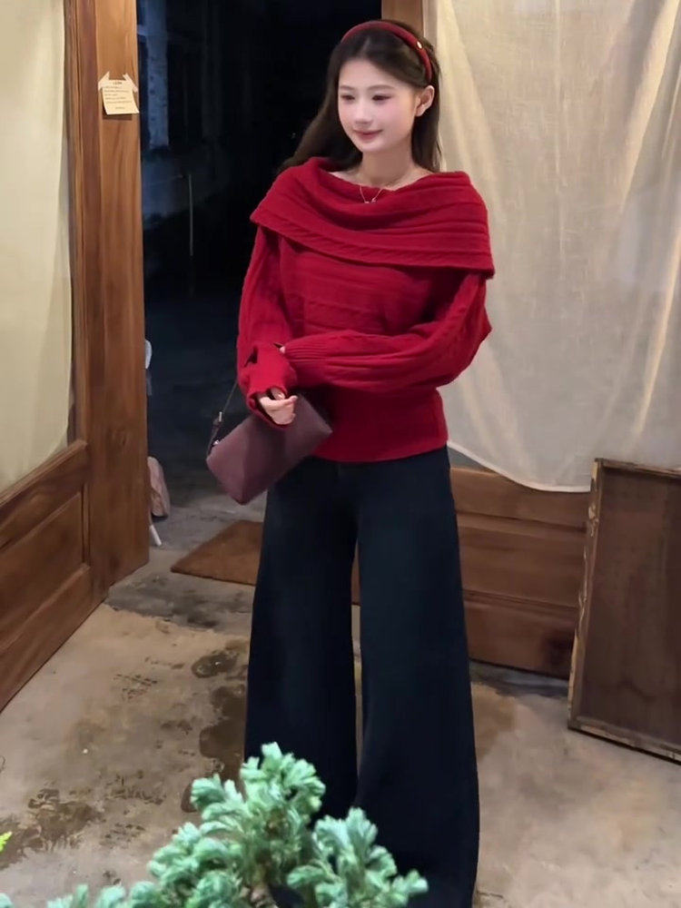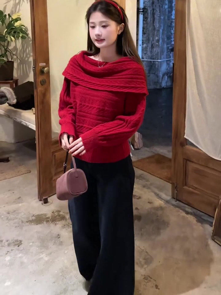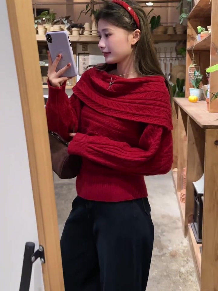 轻熟风一字肩绞花毛衣2025法式千金风气质氛围感露肩针织衫上衣女
