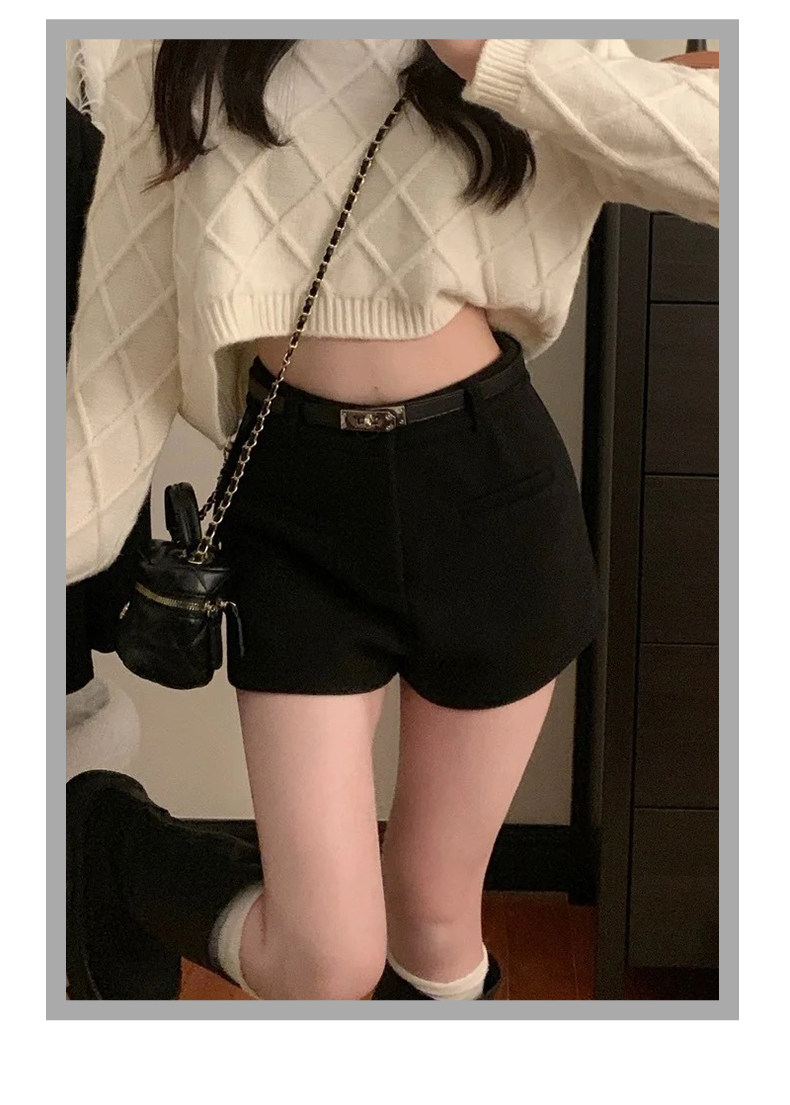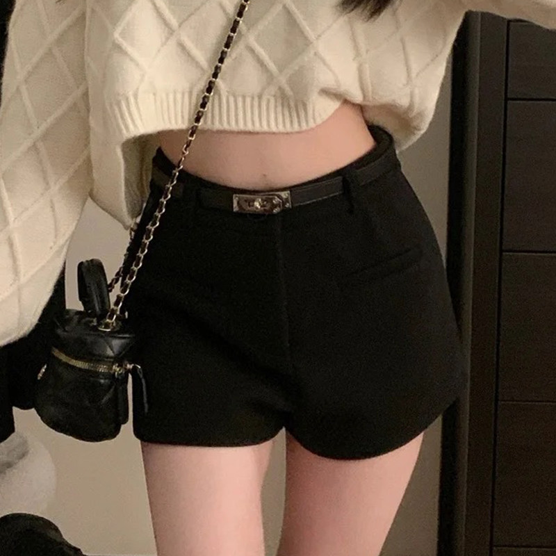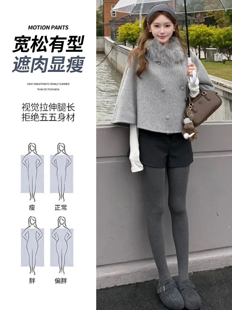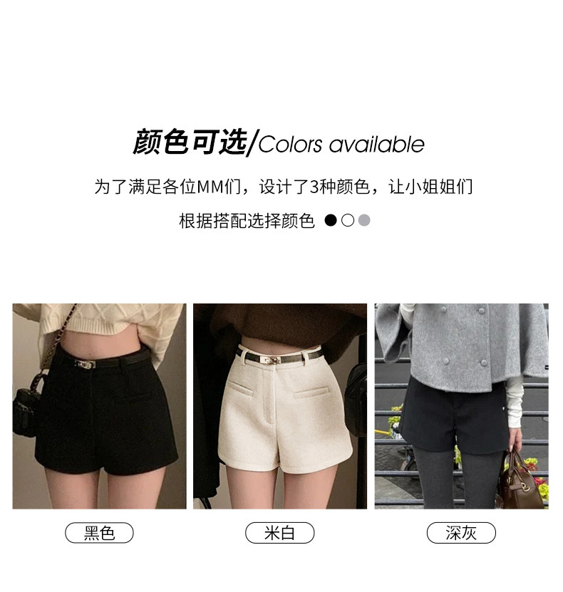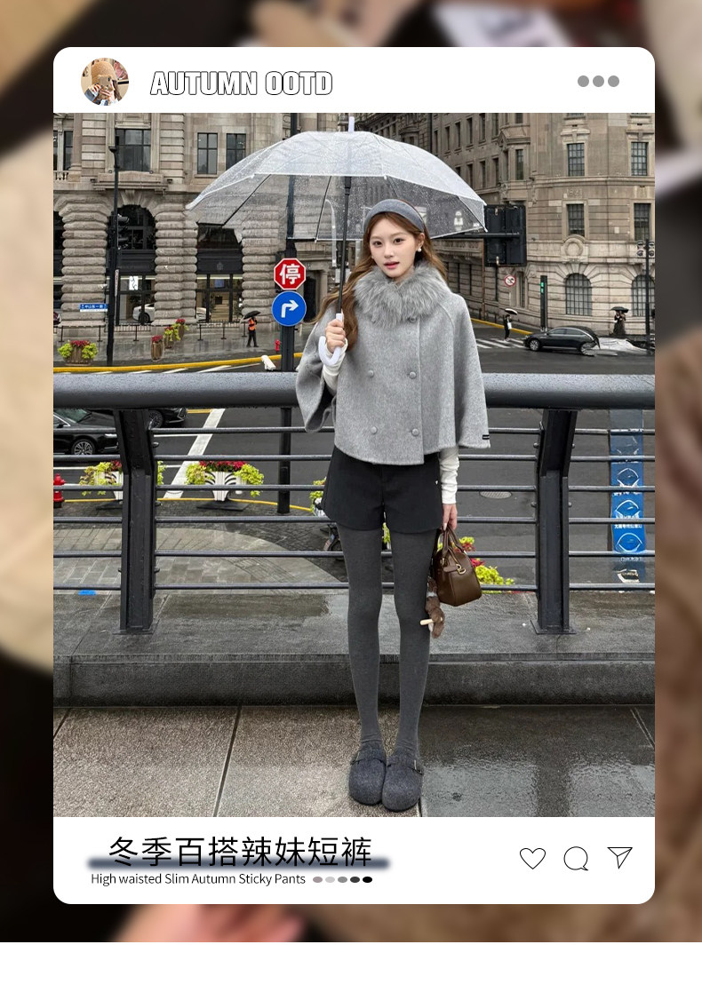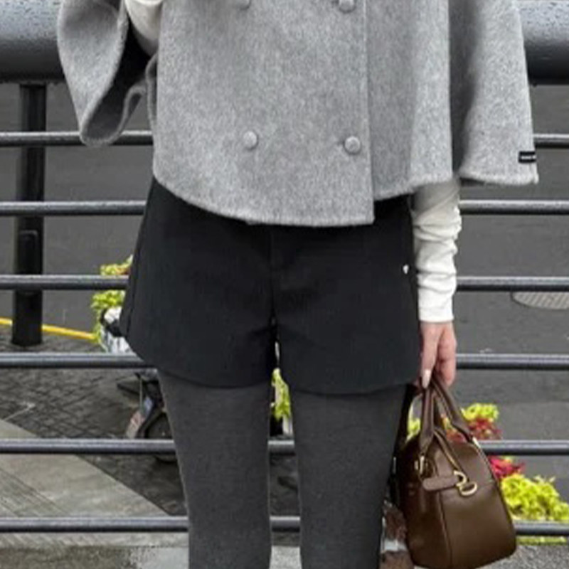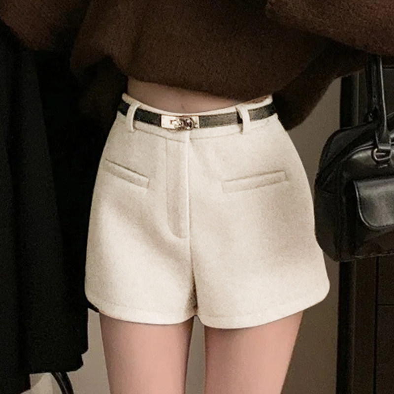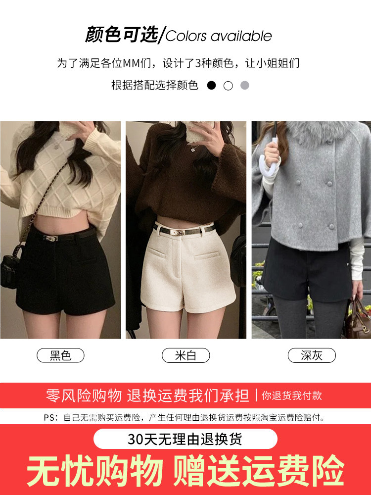 灰色毛呢辣妹短裤女冬季2025新款小个子加厚高腰a字外穿打底靴裤