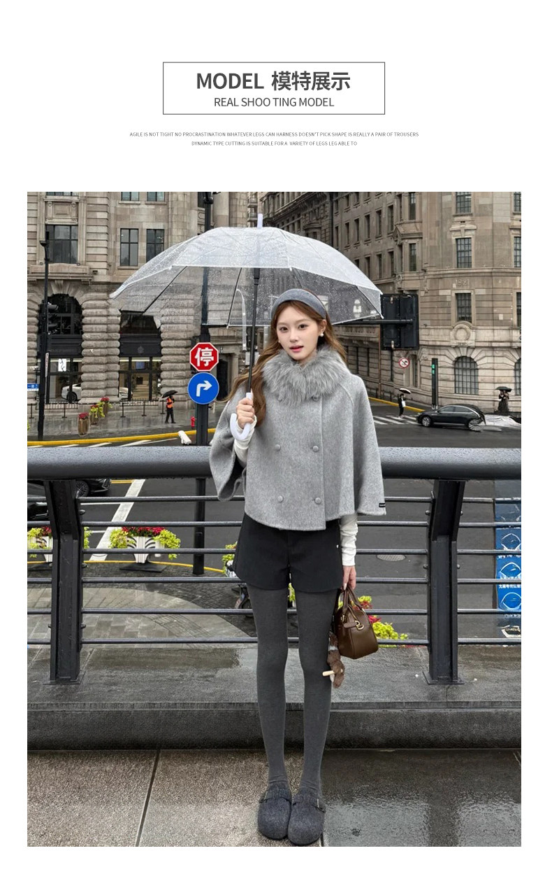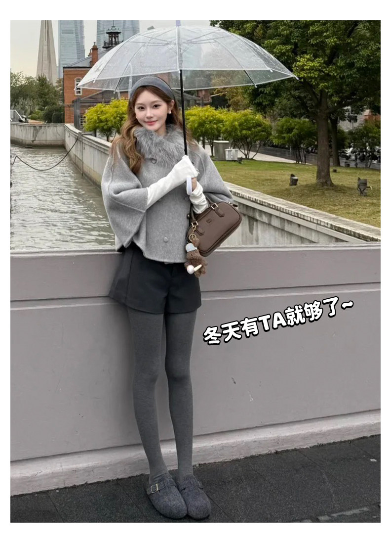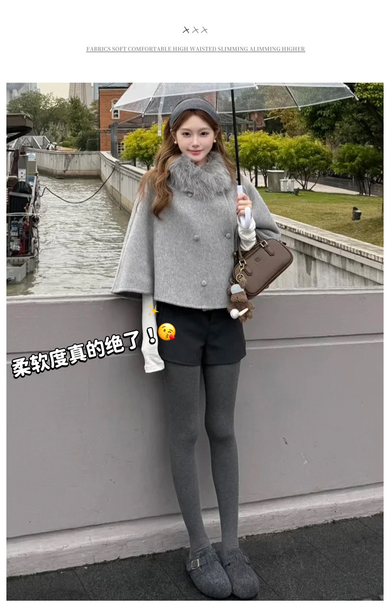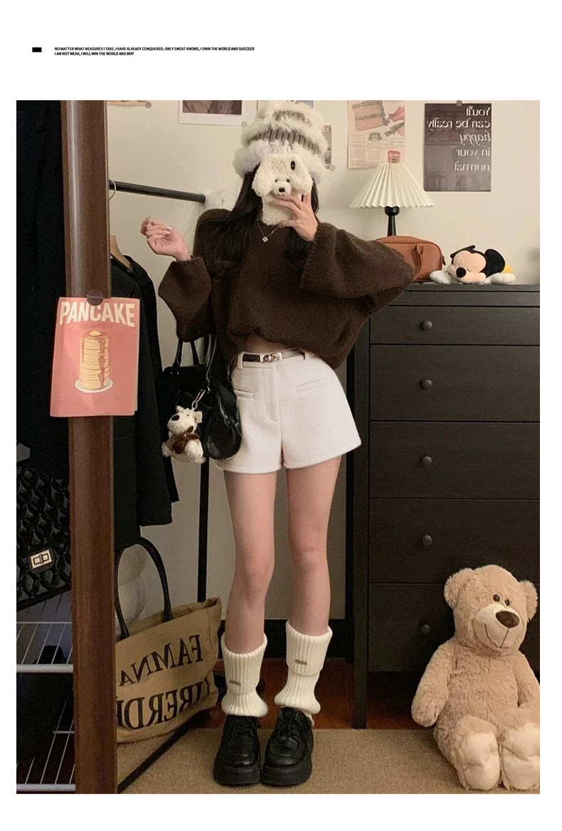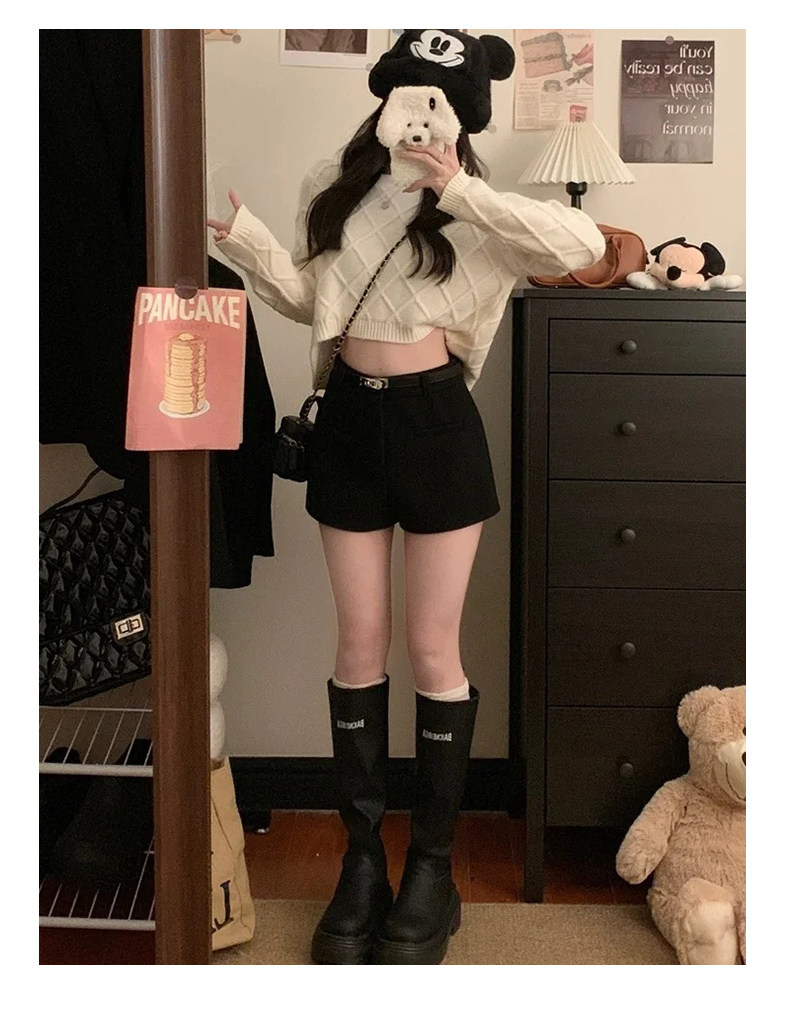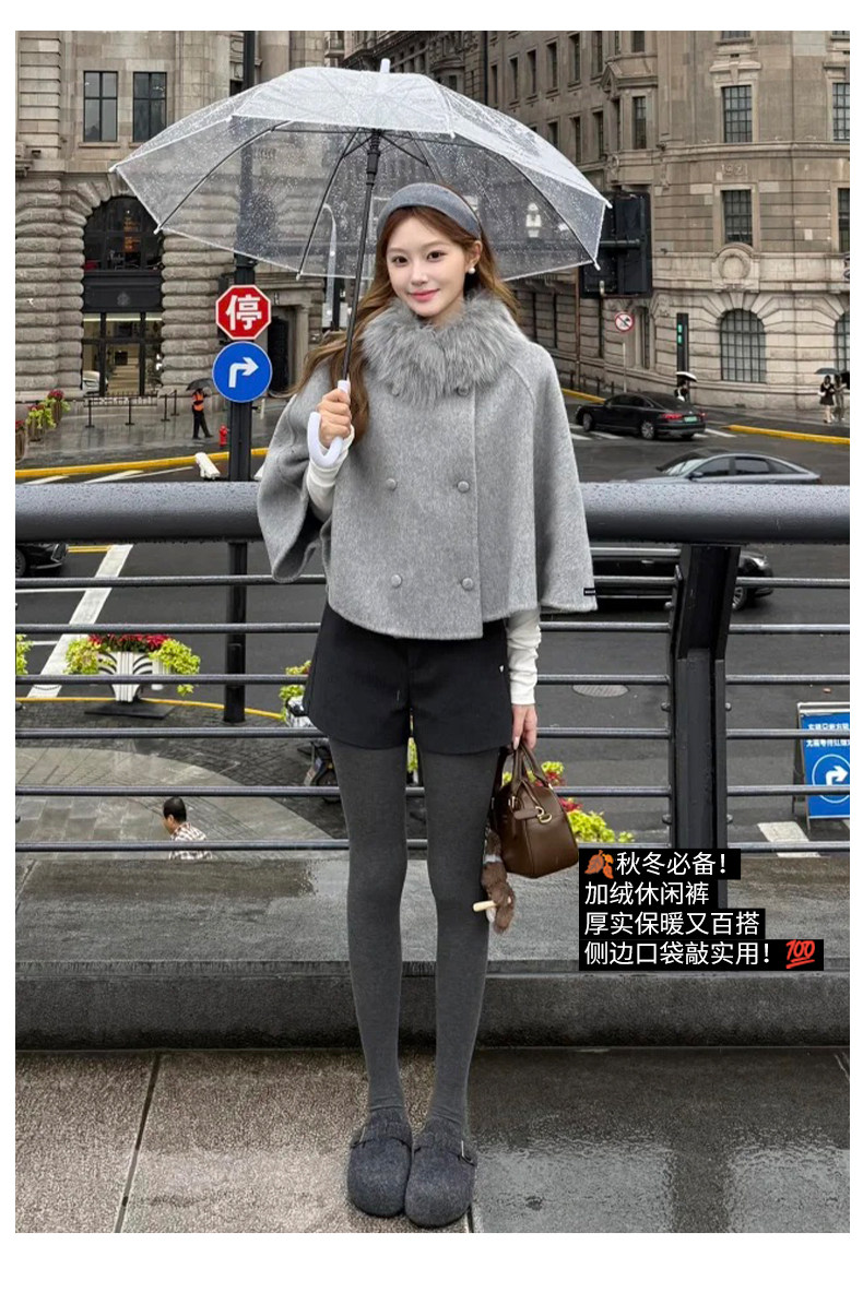 灰色毛呢辣妹短裤女冬季2025新款小个子加厚高腰a字外穿打底靴裤
