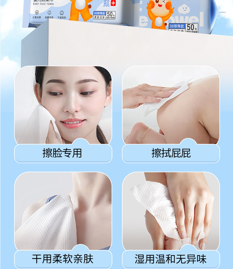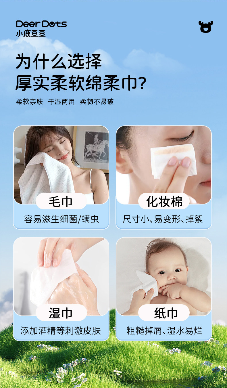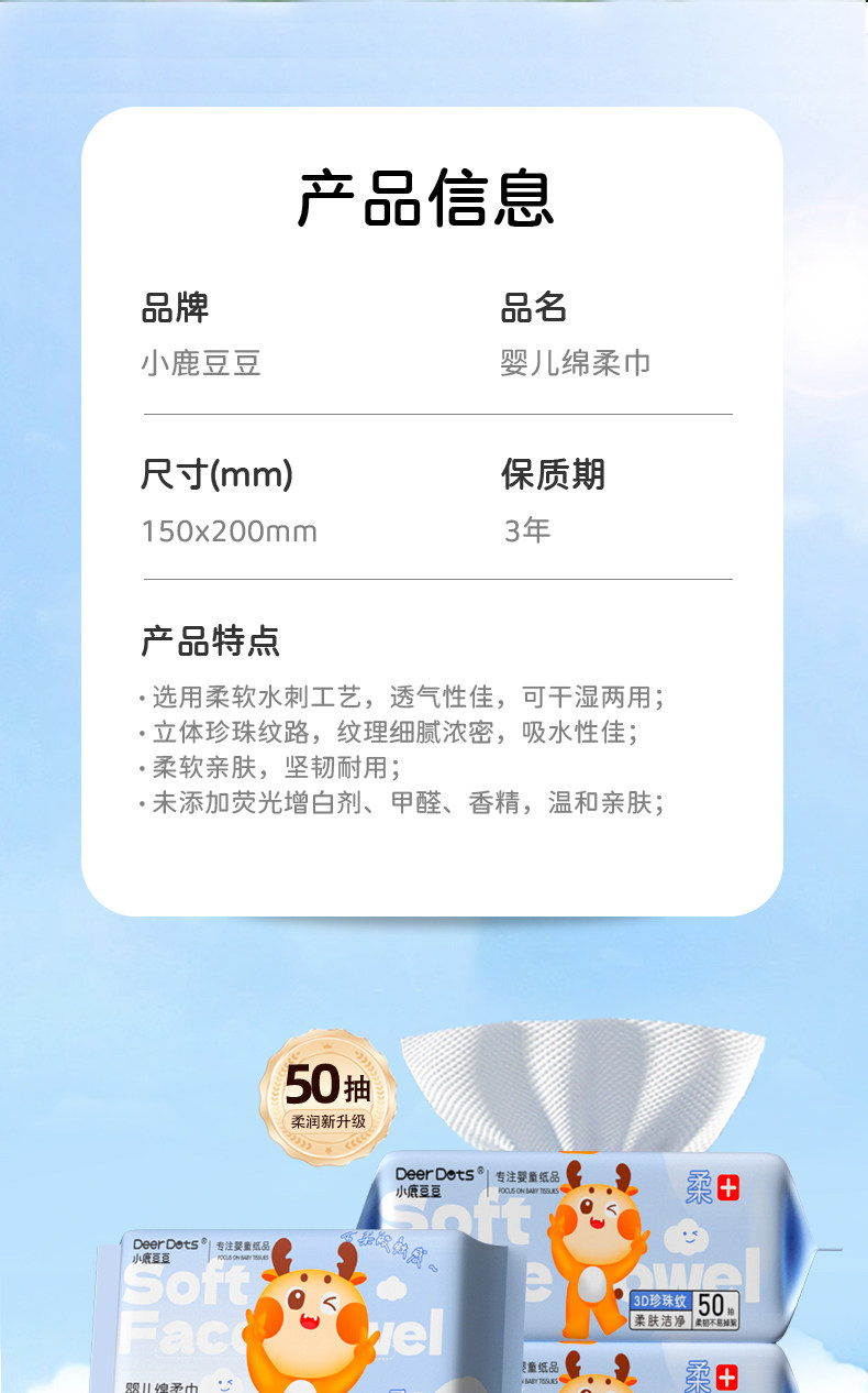 小鹿豆豆洗脸巾加大加厚擦脸巾抽取式绵柔巾干湿两用棉柔洁面巾19