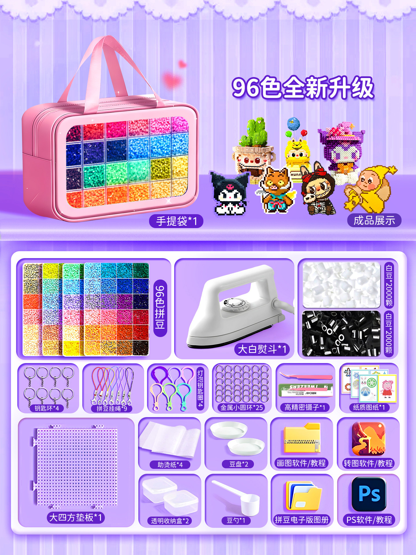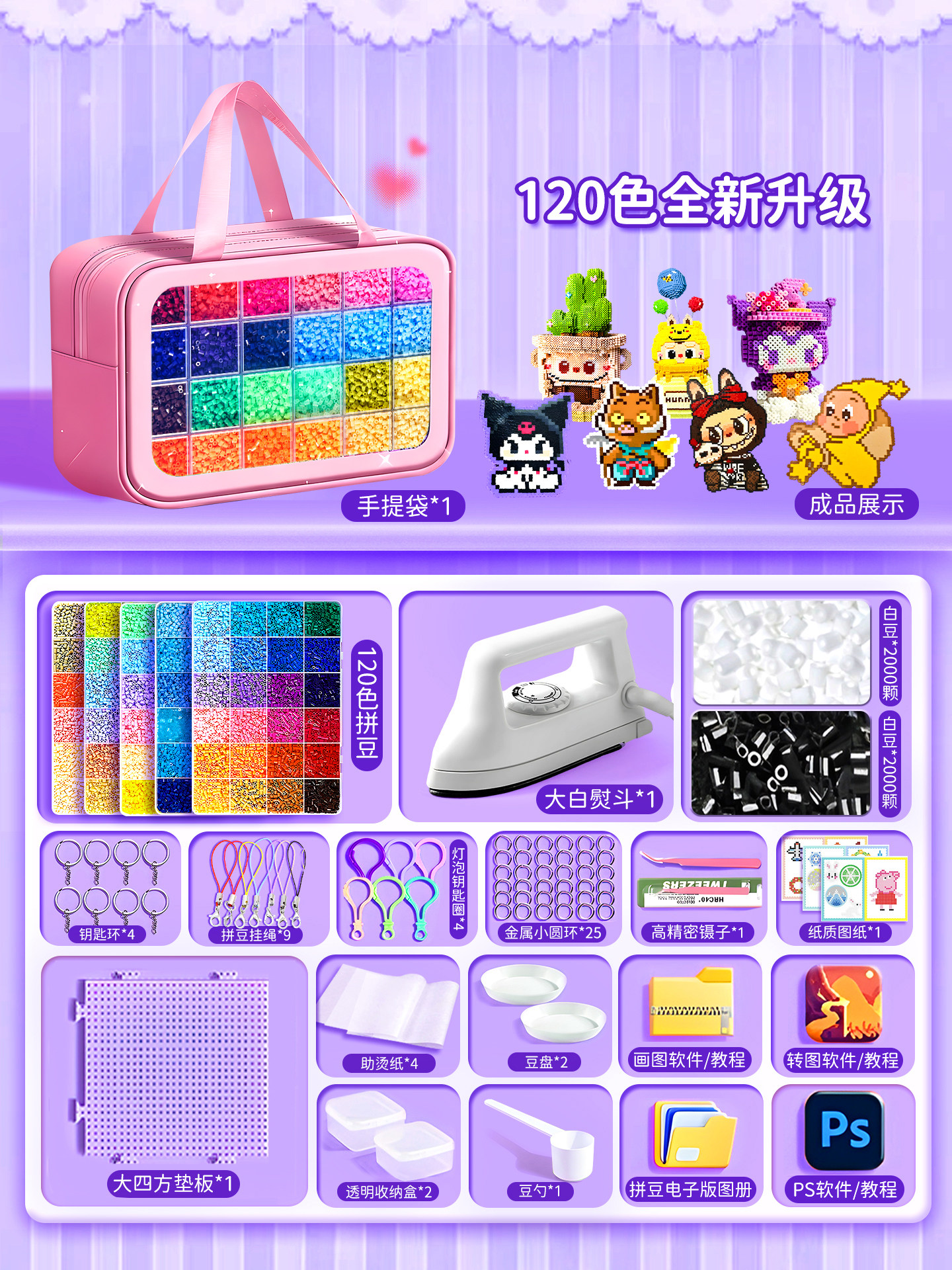 拼豆豆手工diy材料包全套立体融合MARD色号套装工具熨烫纸补充包