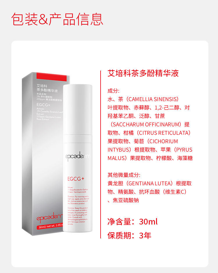【新品】epicaderm/艾培科茶多酚精华液30ml EGCG修护舒缓控油