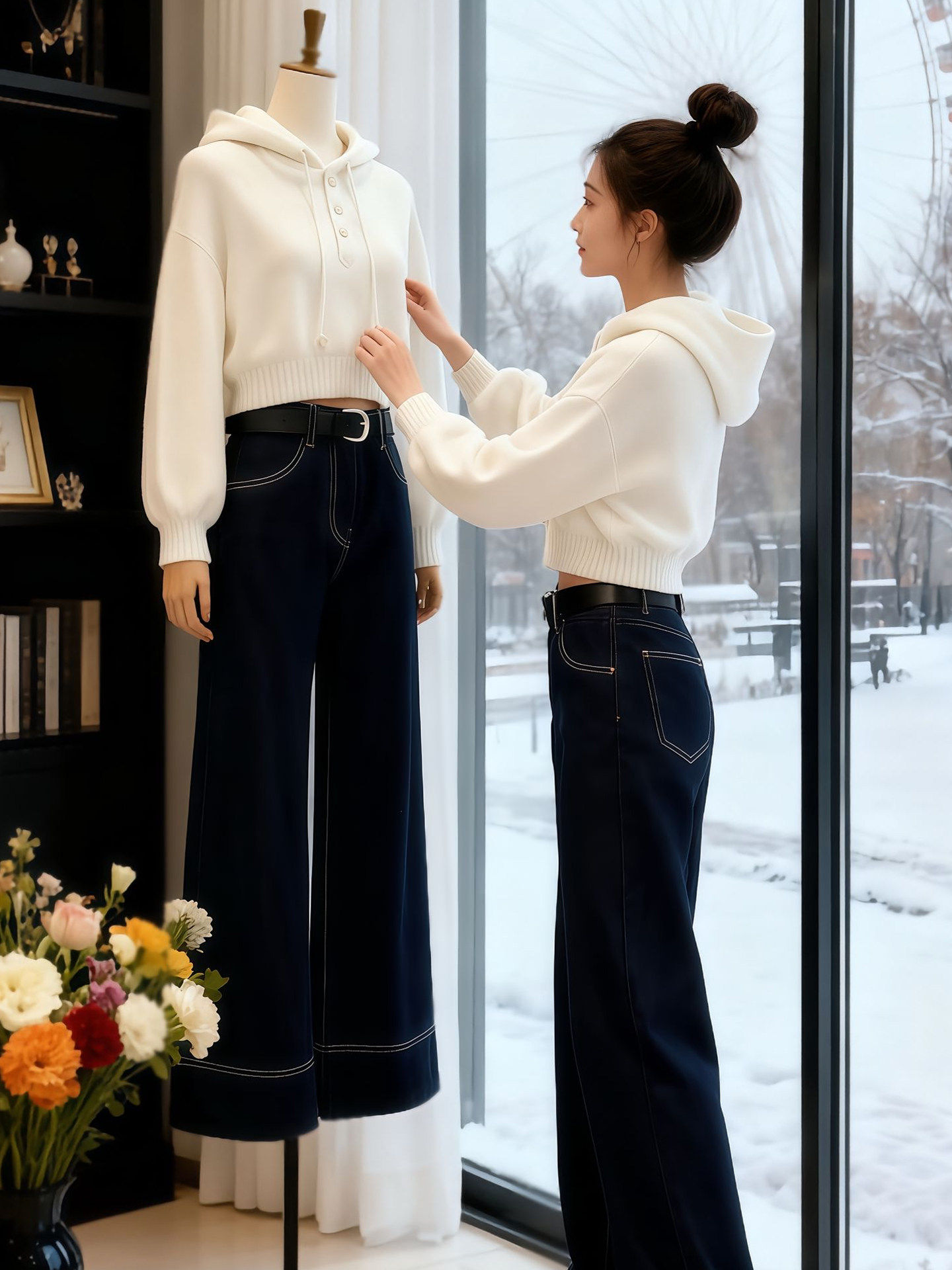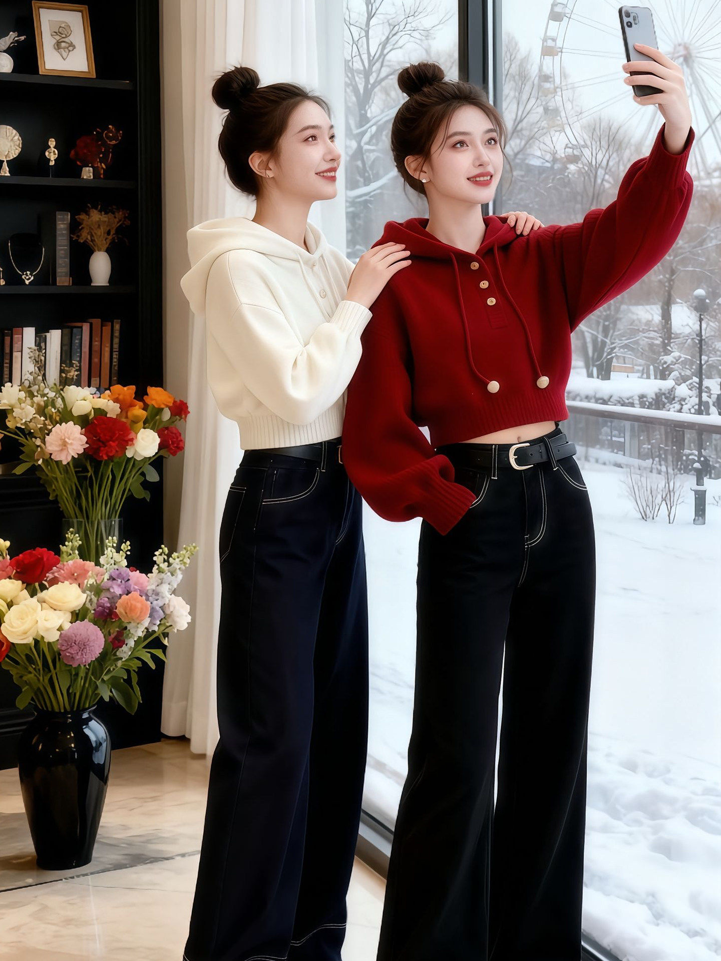 红色连帽短款毛衣女外穿内搭秋冬高级感小个子宽松气质针织衫上衣