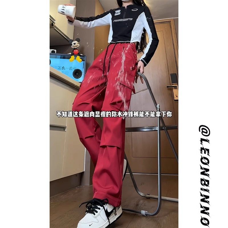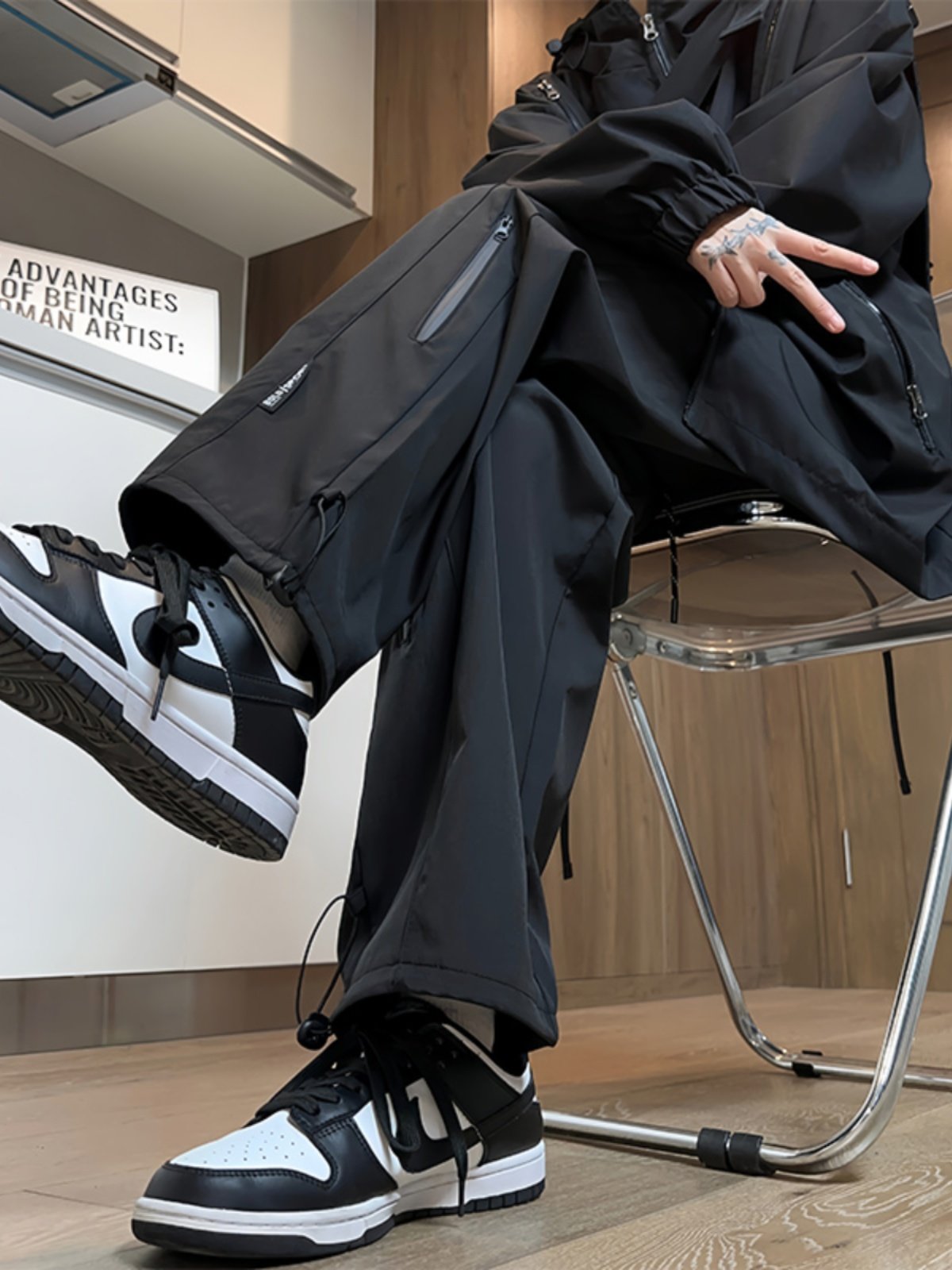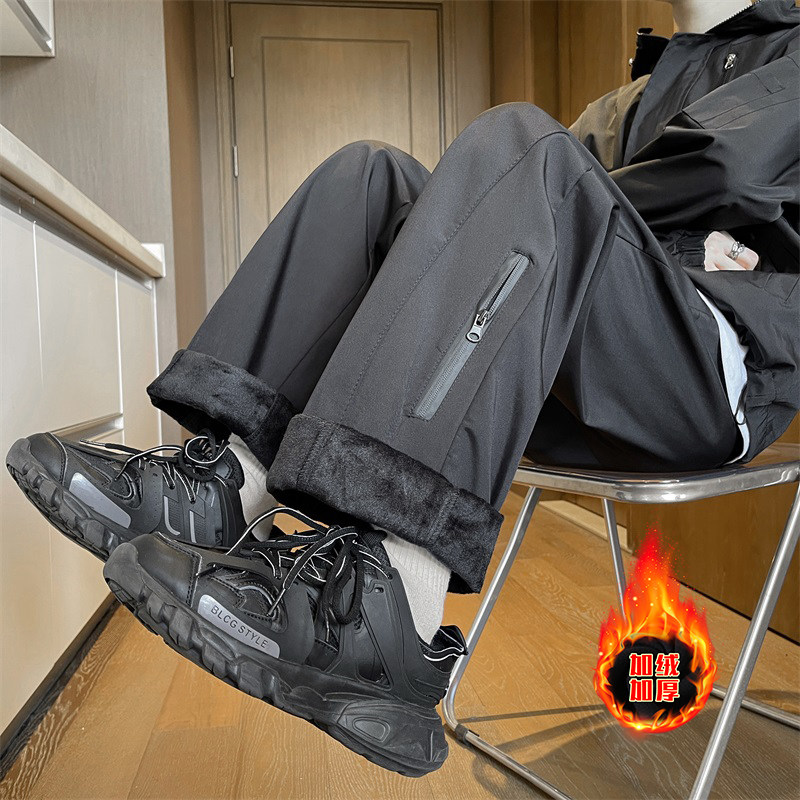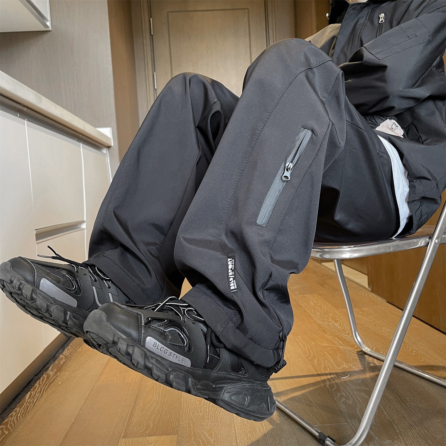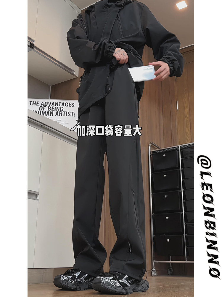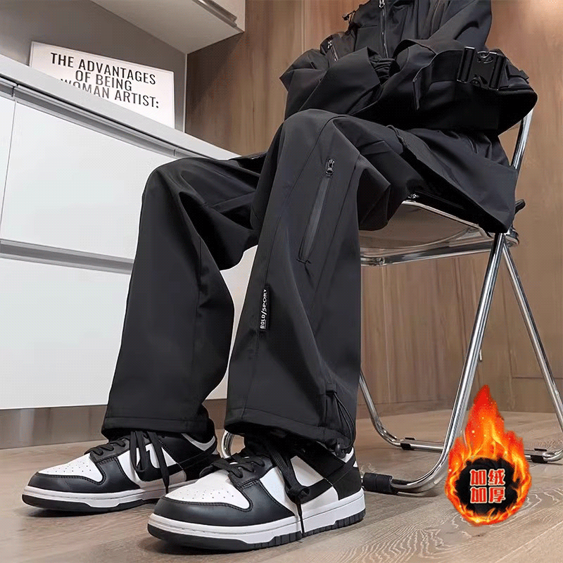 冲锋裤男士潮牌秋冬加绒新款防风宽松直筒运动工装休闲大码长裤子