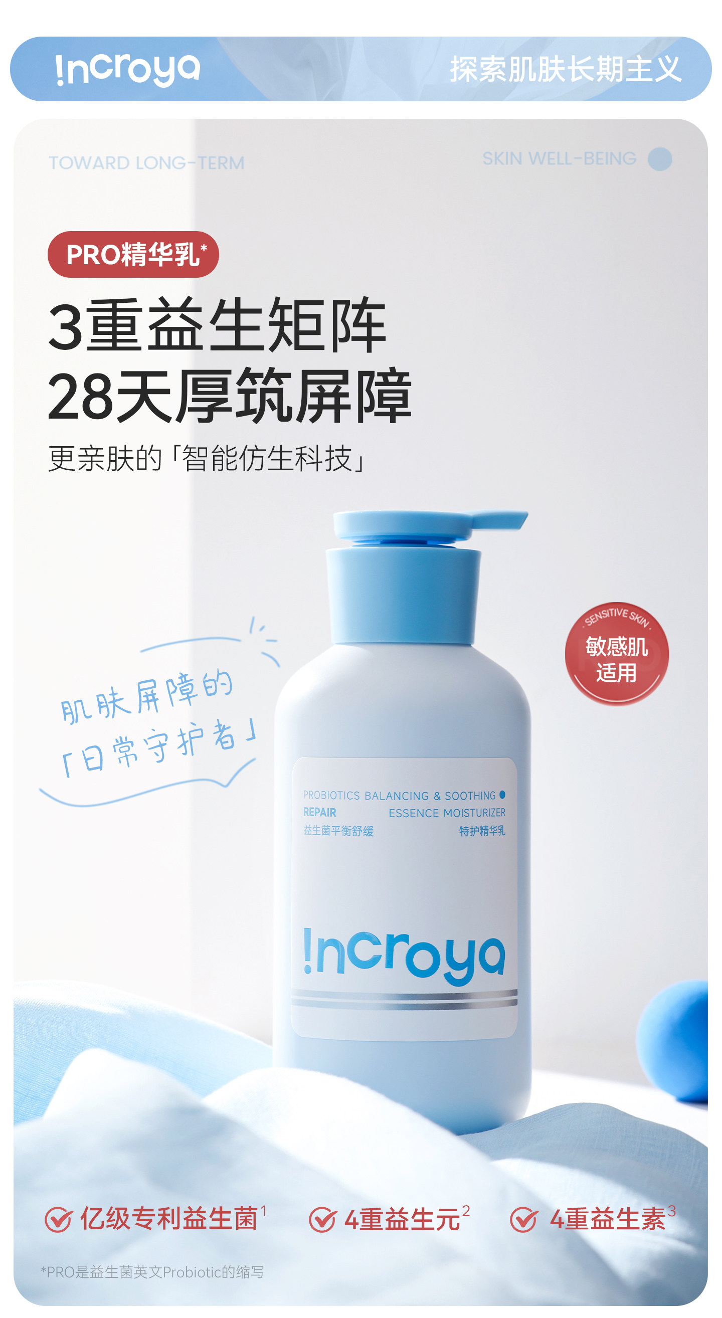 INCROYA益生菌Pro精华乳锁水保湿乳液舒缓修护敏感肌温和滋润护肤