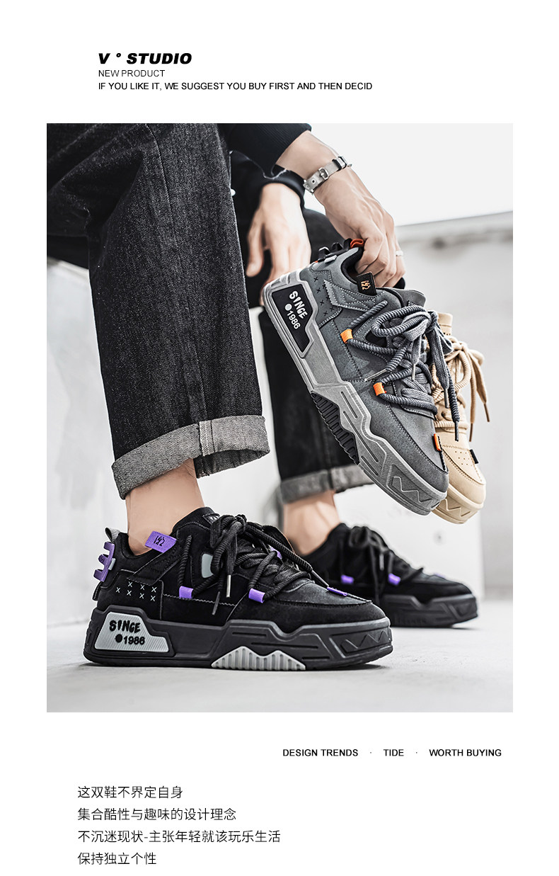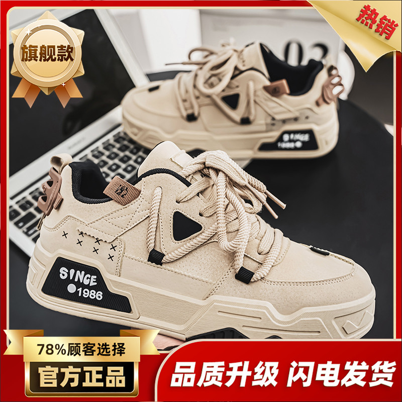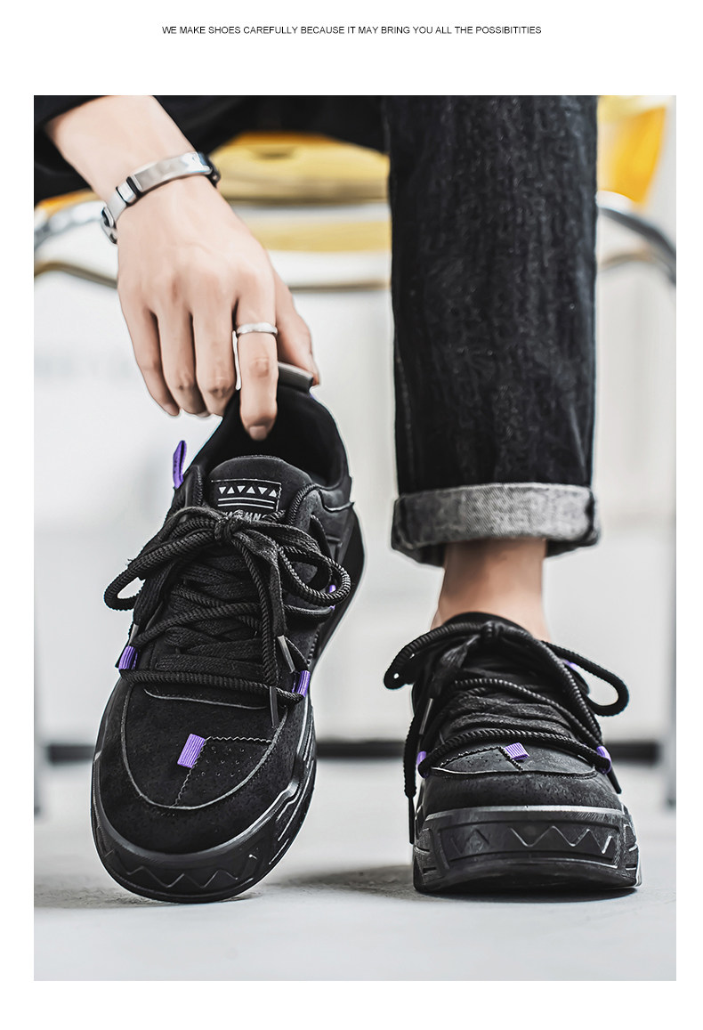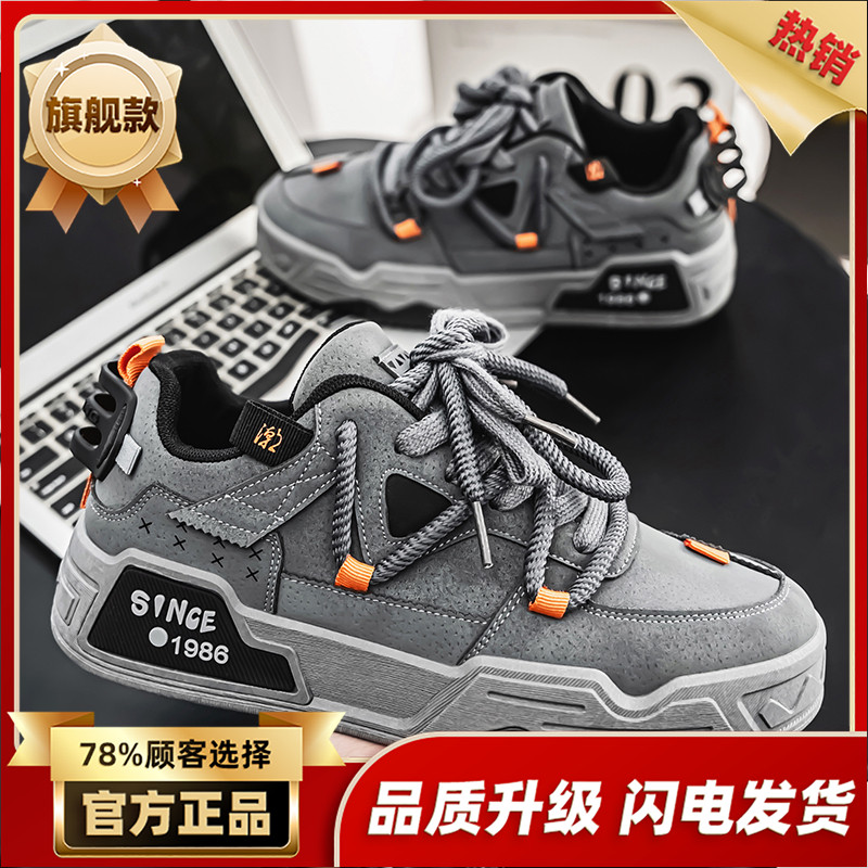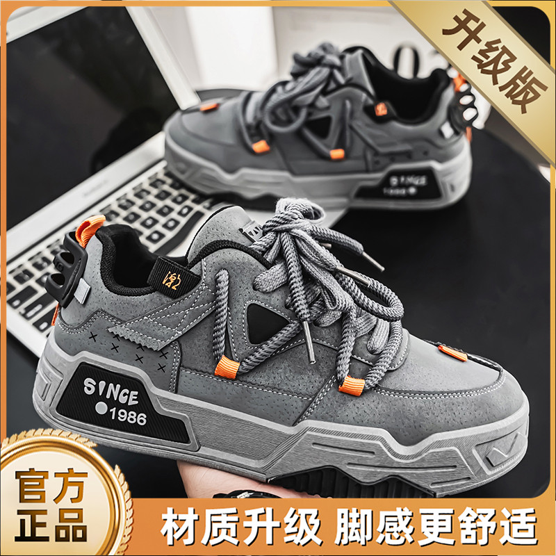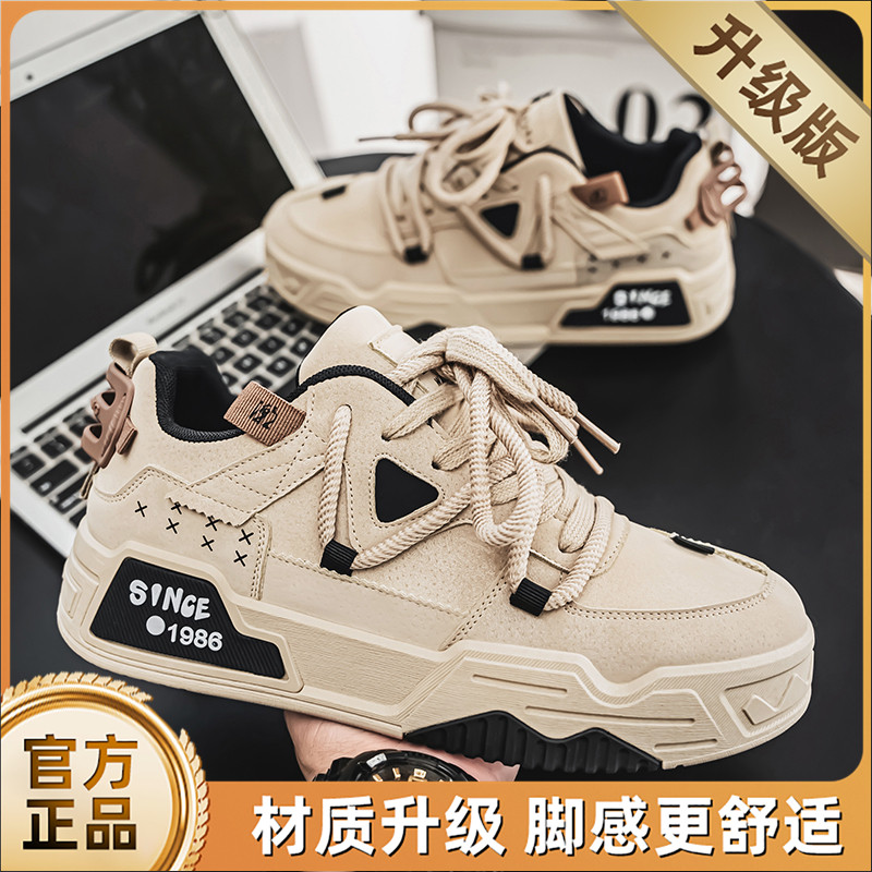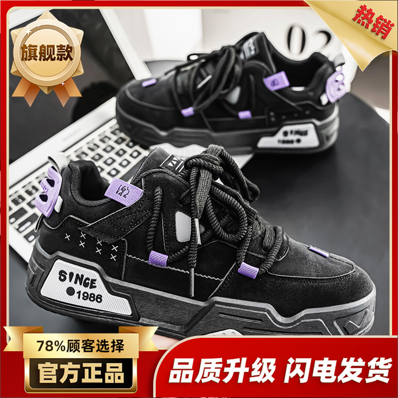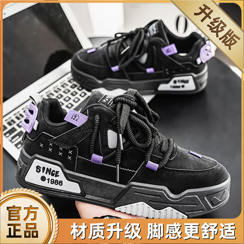 男鞋2026新款春季小众原创潮流韩版休闲百搭黑色厚底增高运动板鞋