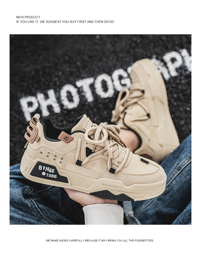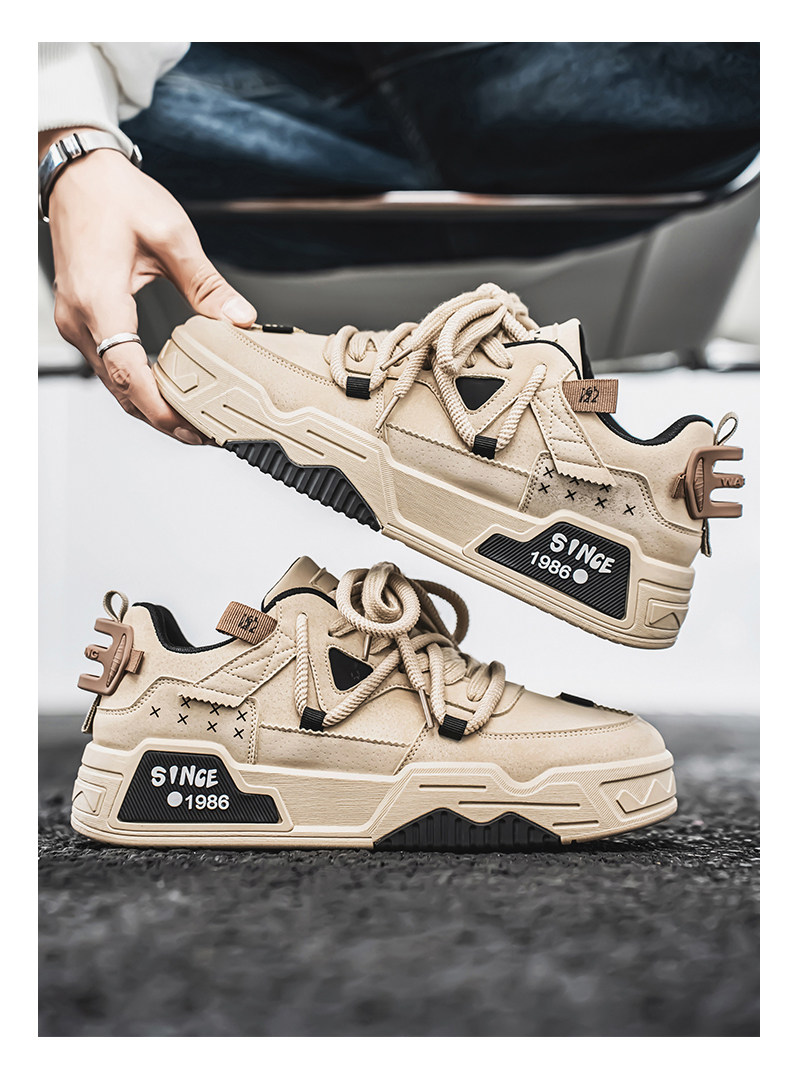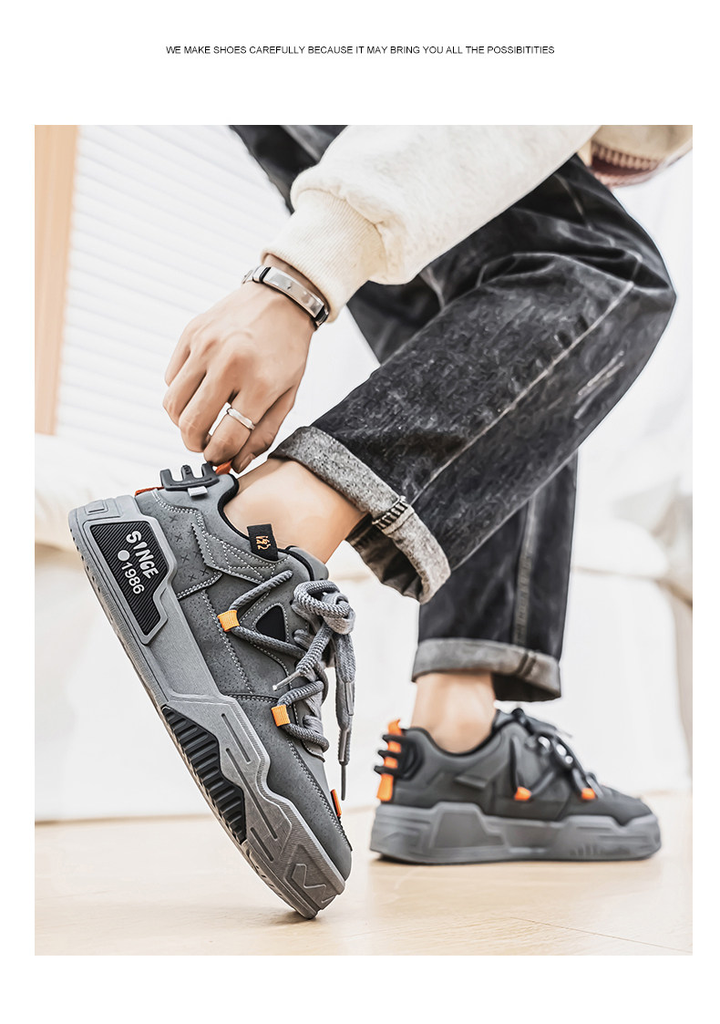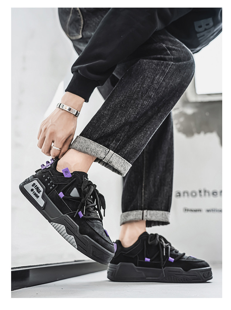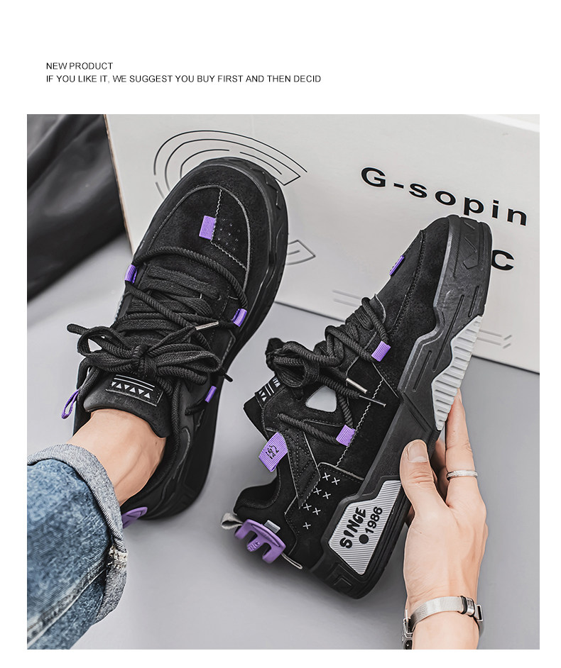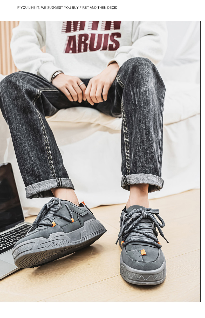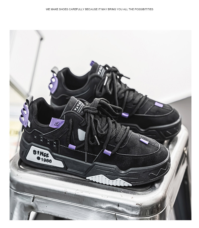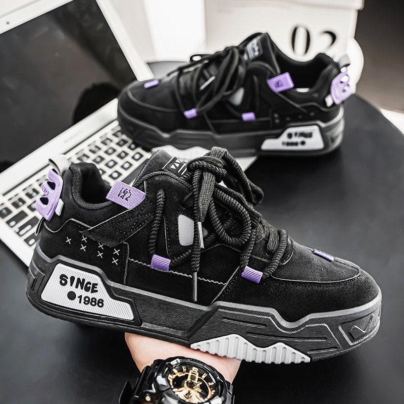 男鞋2026新款春季小众原创潮流韩版休闲百搭黑色厚底增高运动板鞋