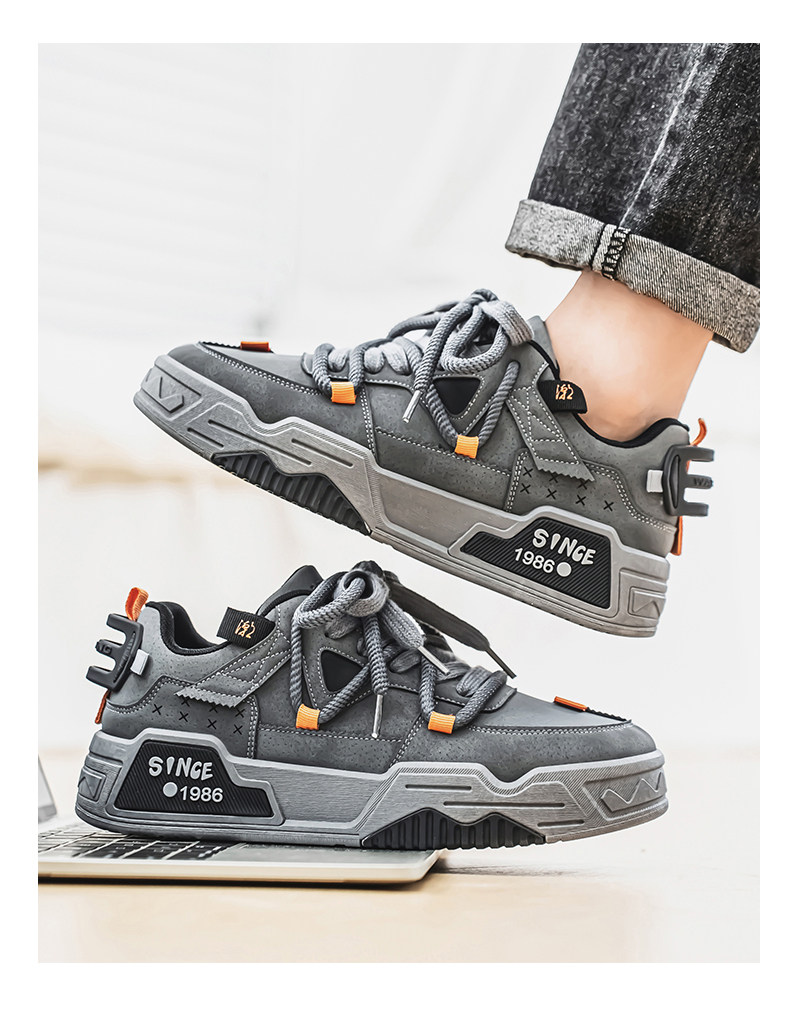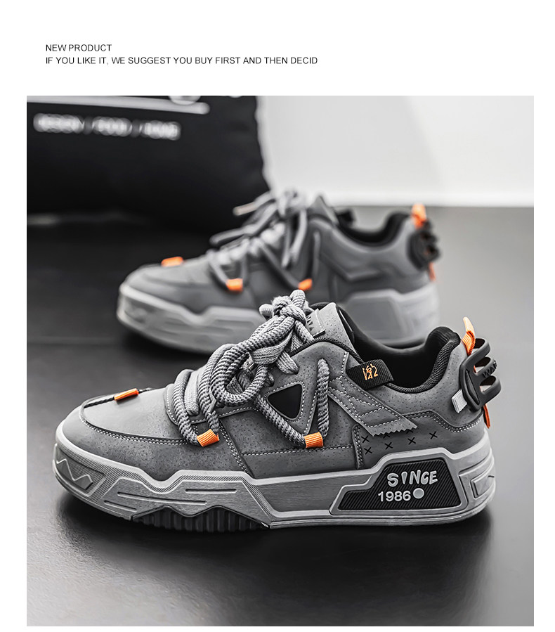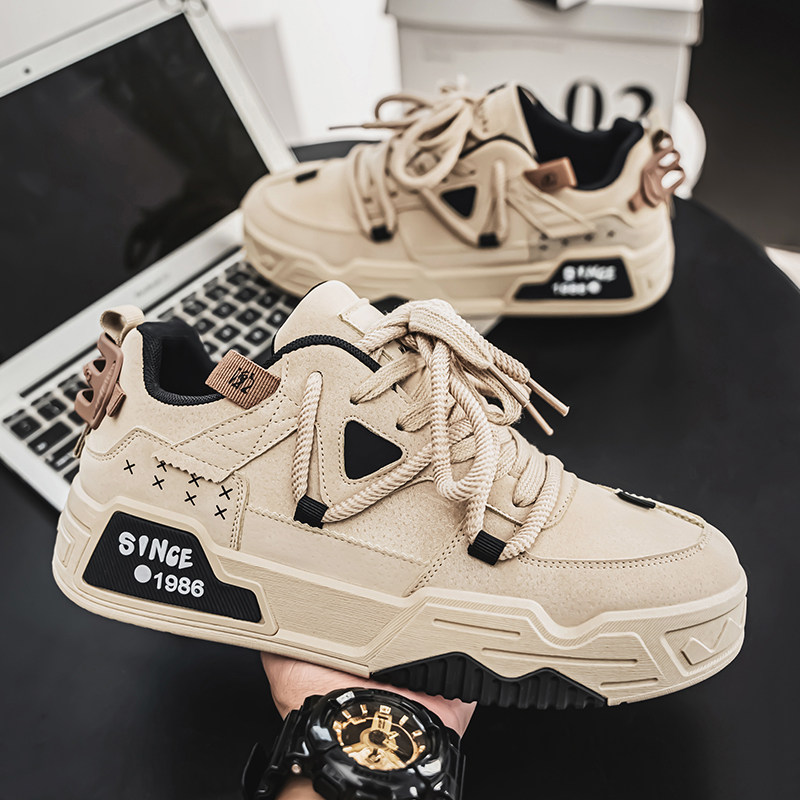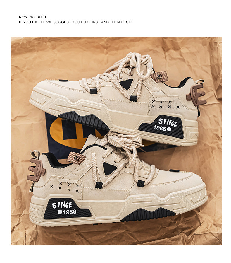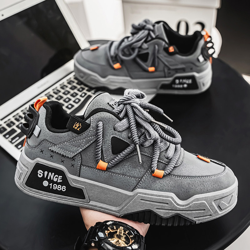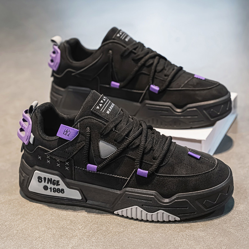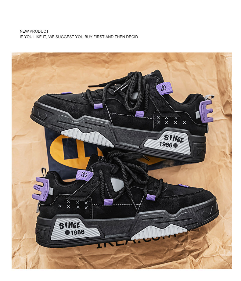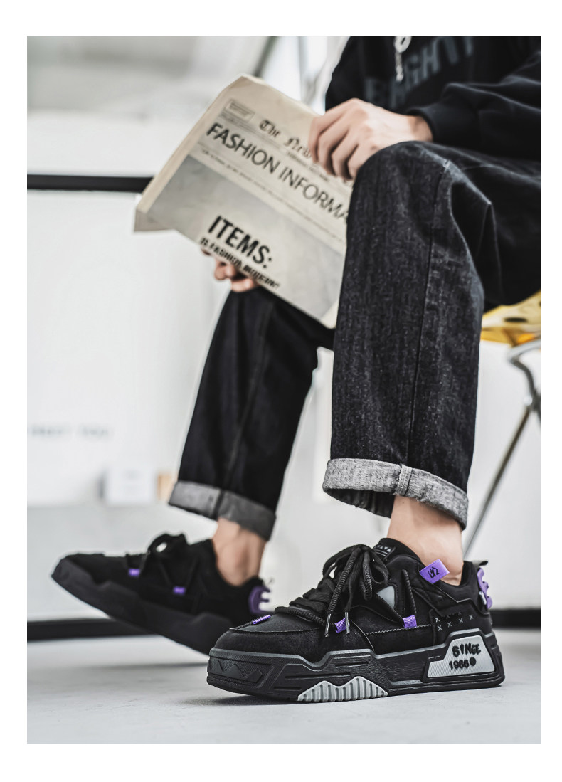 男鞋2026新款春季小众原创潮流韩版休闲百搭黑色厚底增高运动板鞋