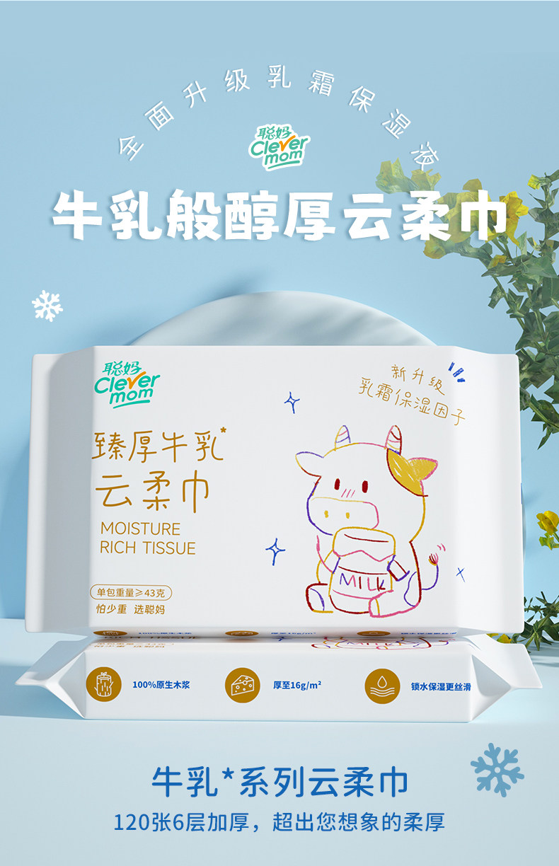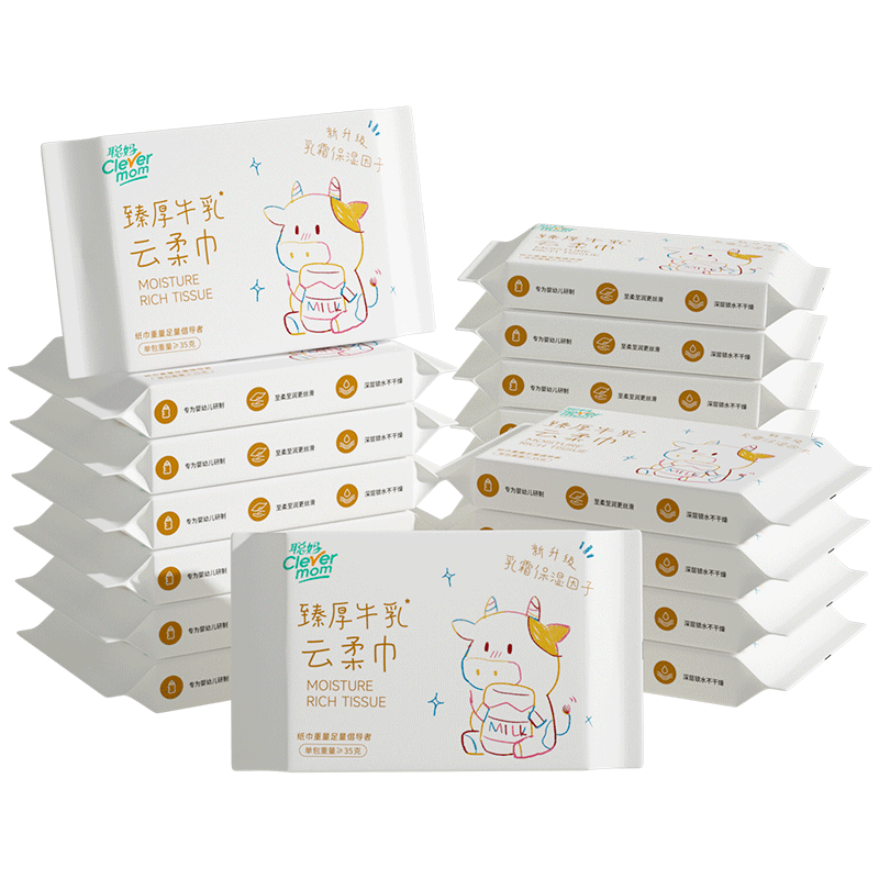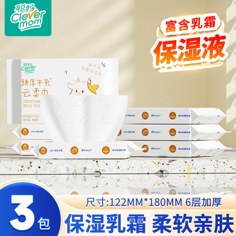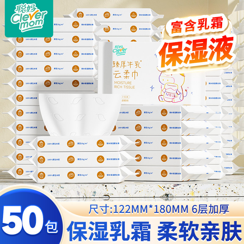 聪妈婴儿柔纸巾抽纸120张便携新生宝宝专用乳霜云柔巾保湿牛乳纸