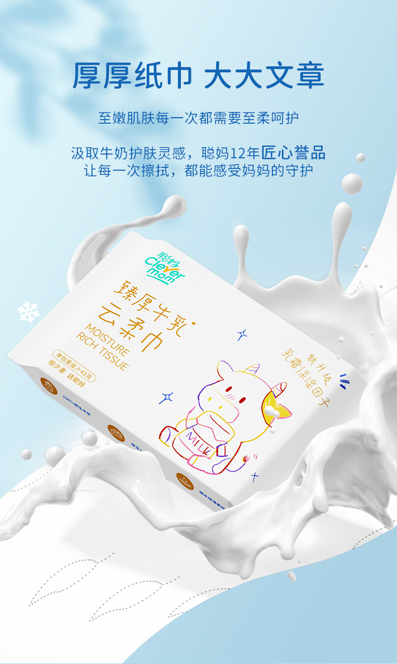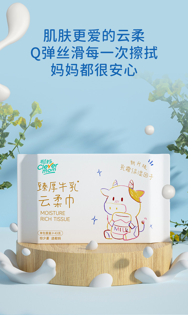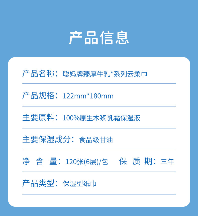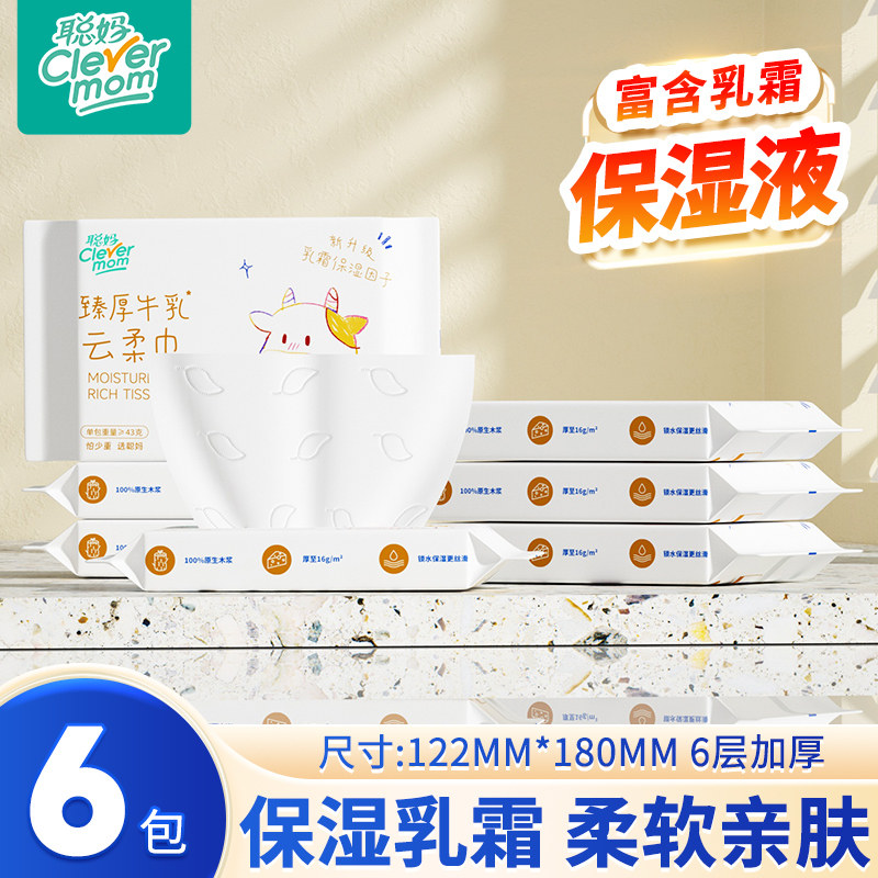 聪妈婴儿柔纸巾抽纸120张便携新生宝宝专用乳霜云柔巾保湿牛乳纸