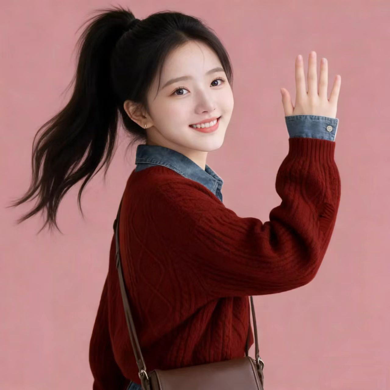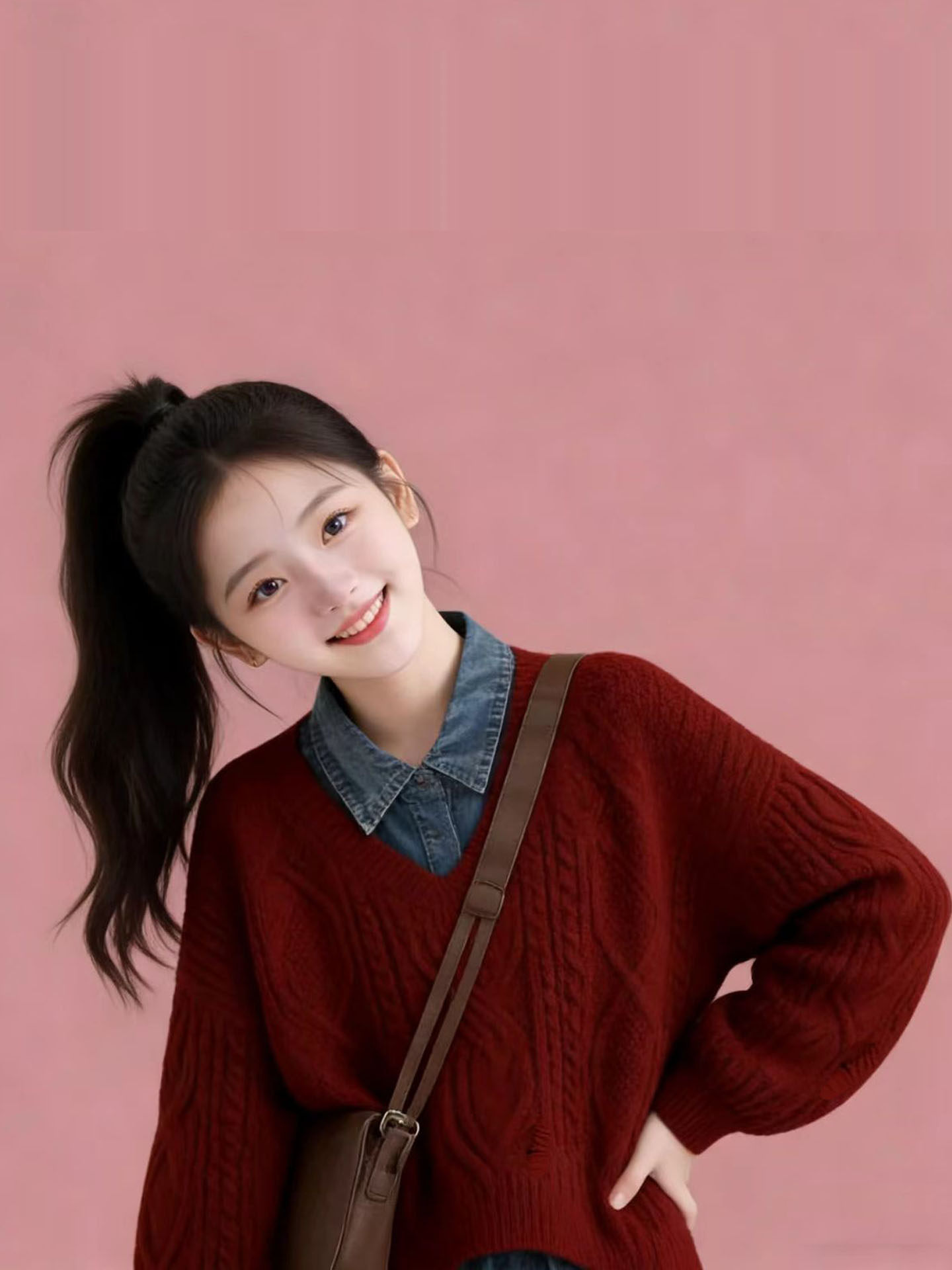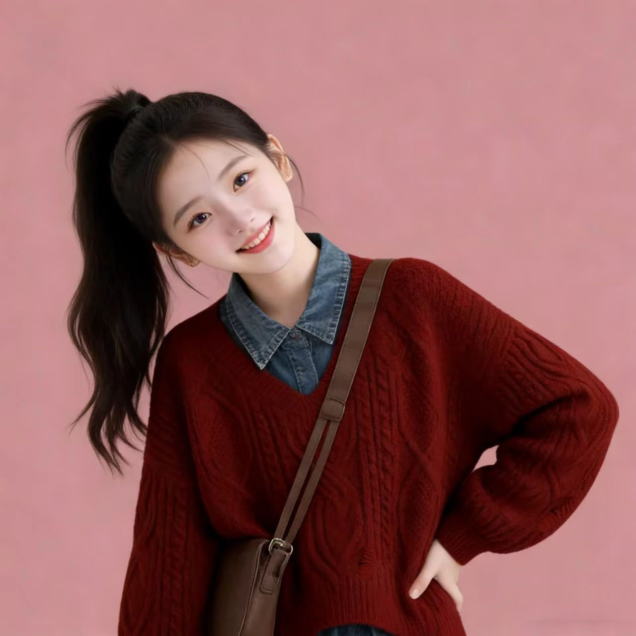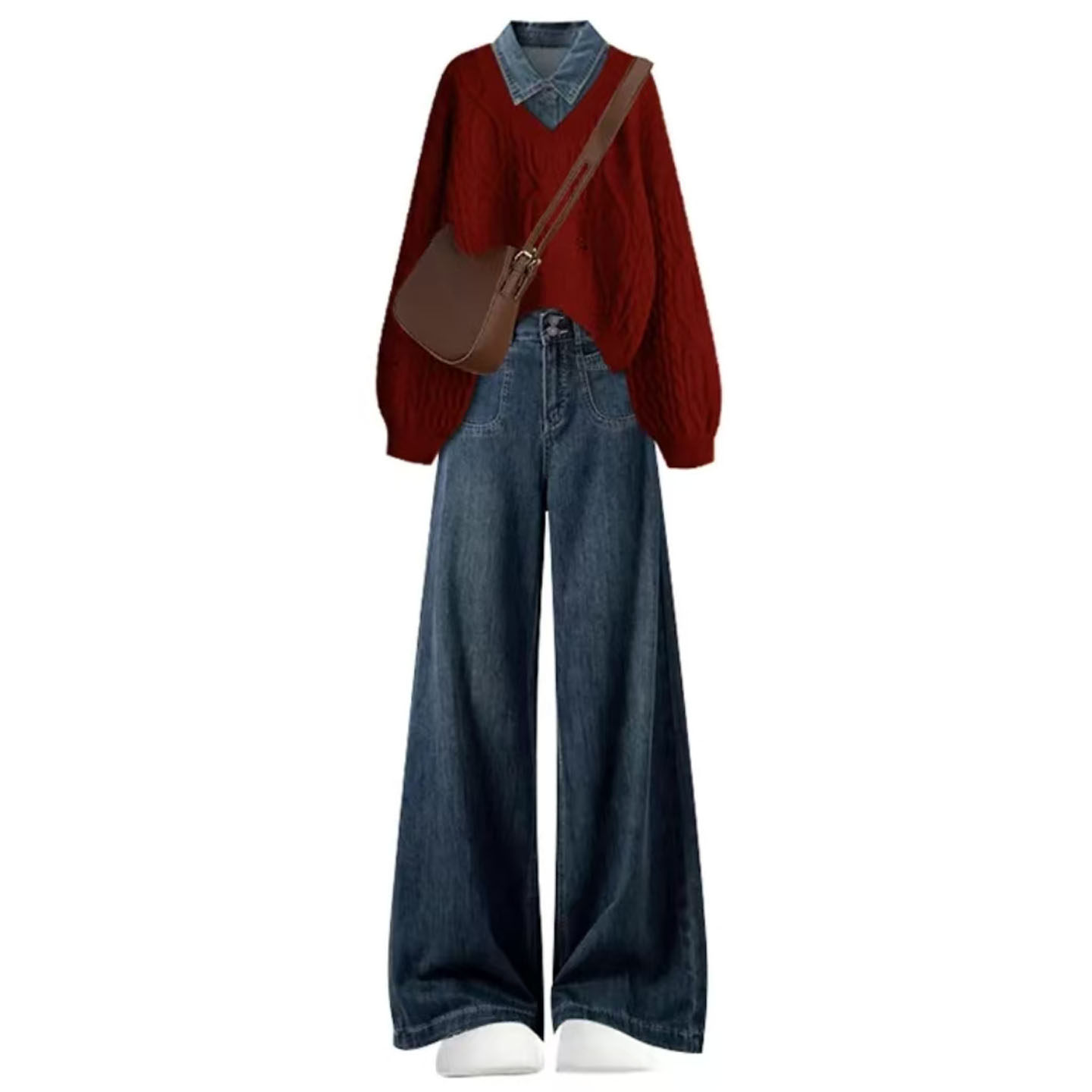 女大童奶呼呼新年秋冬红色毛衣衬衫学院风套装2026超火穿搭一整套
