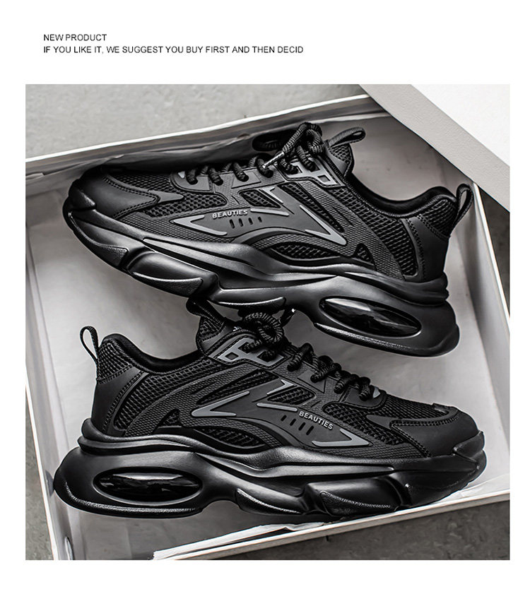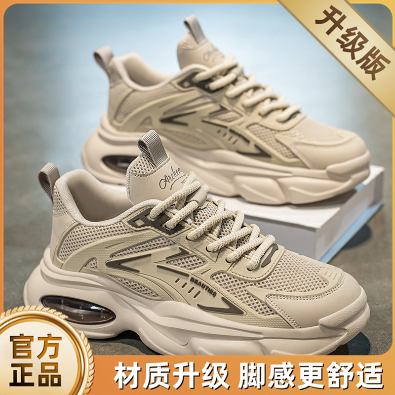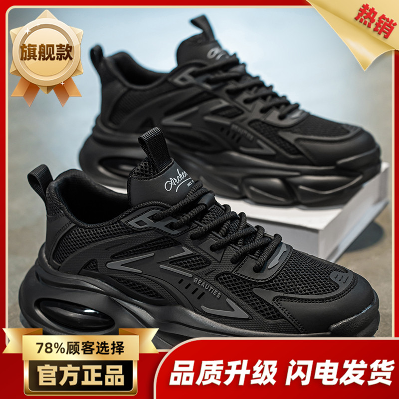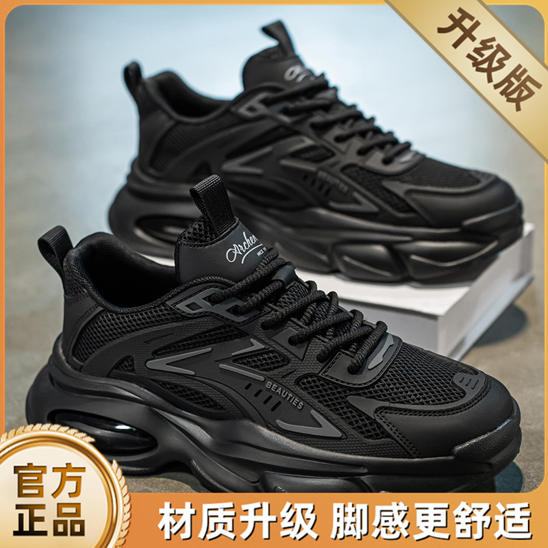 黑武士男鞋2026新款春季潮流百搭网面运动鞋厚底增高跑步老爹潮鞋