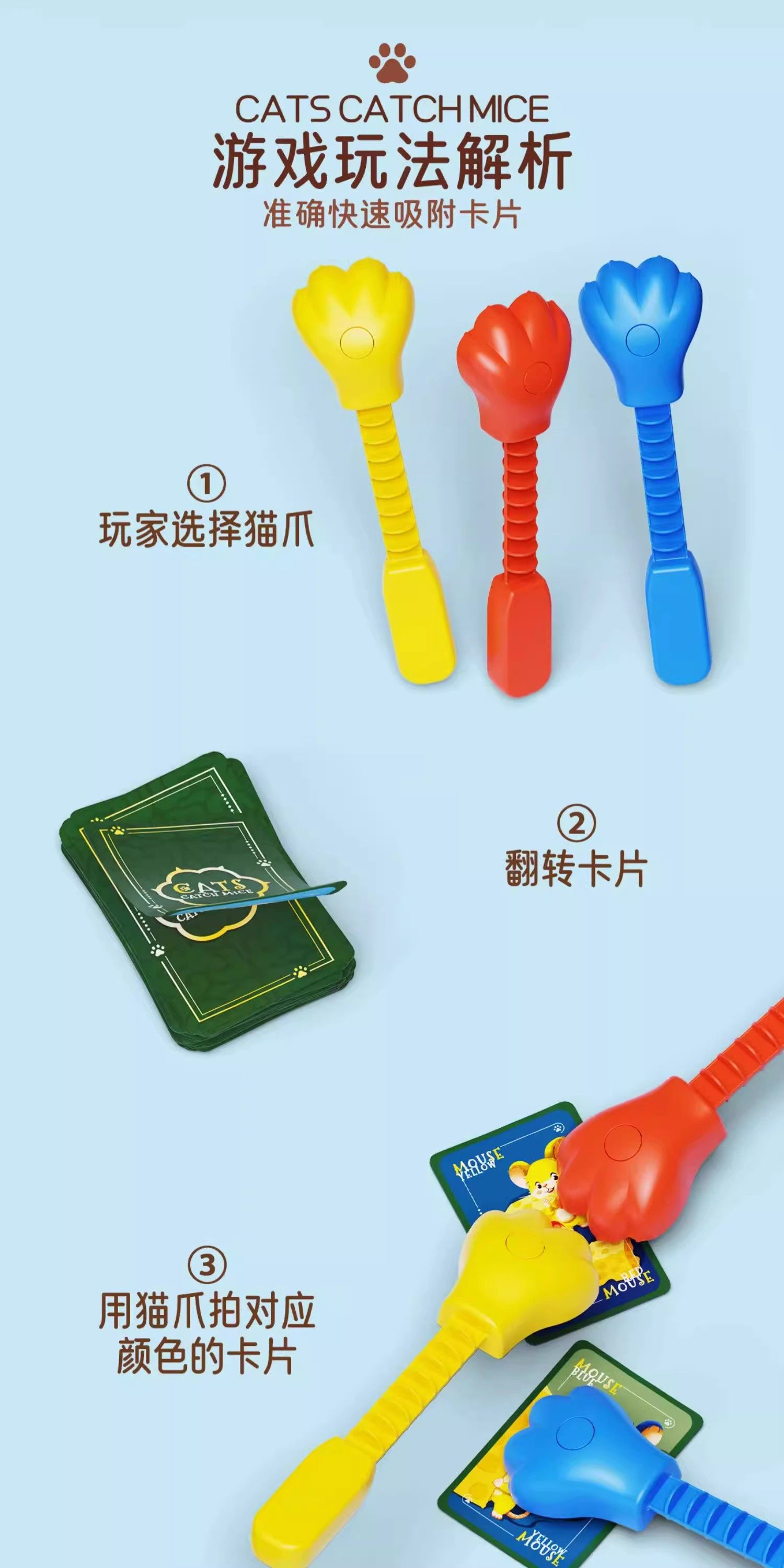 猫爪老鼠桌游卡牌亲子互动益智玩具6岁以上儿童对战思维训练桌面