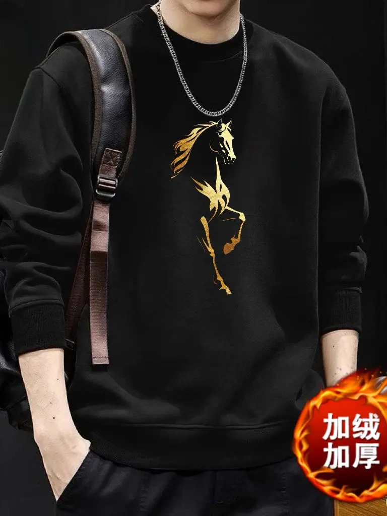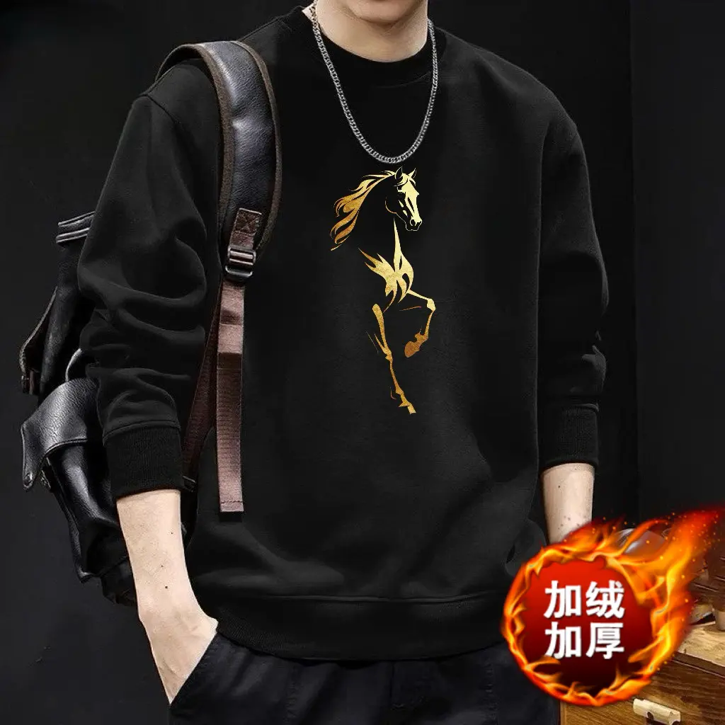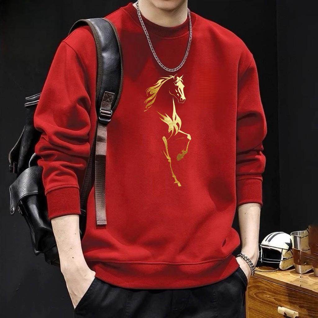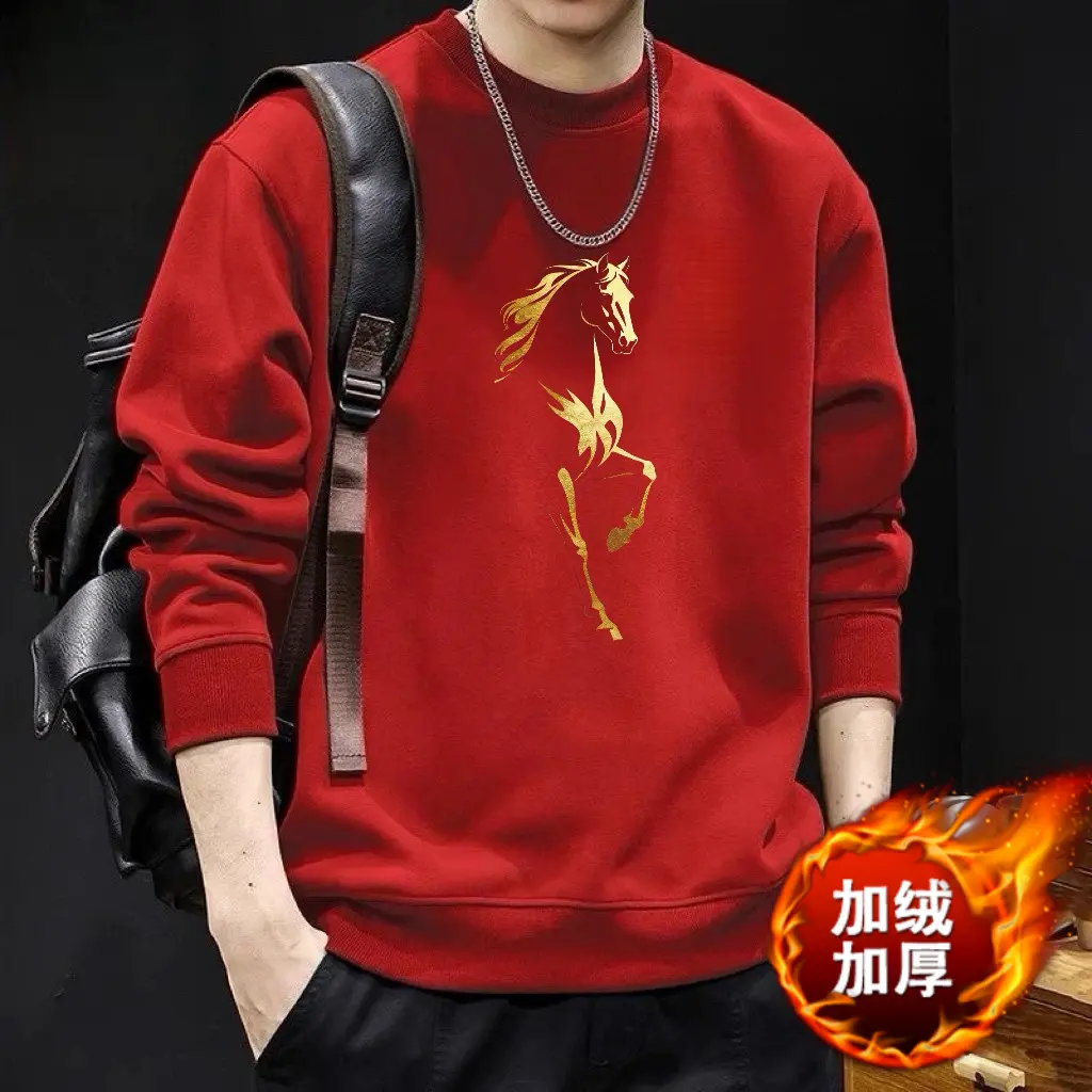红色本命年印花卫衣男士秋冬2026新款潮流中国风马年时尚百搭上衣
