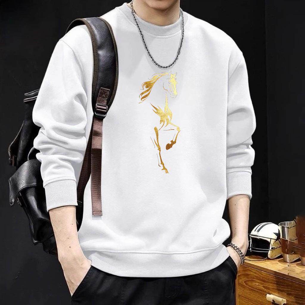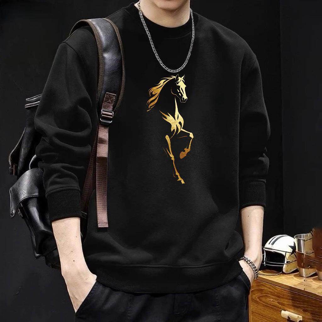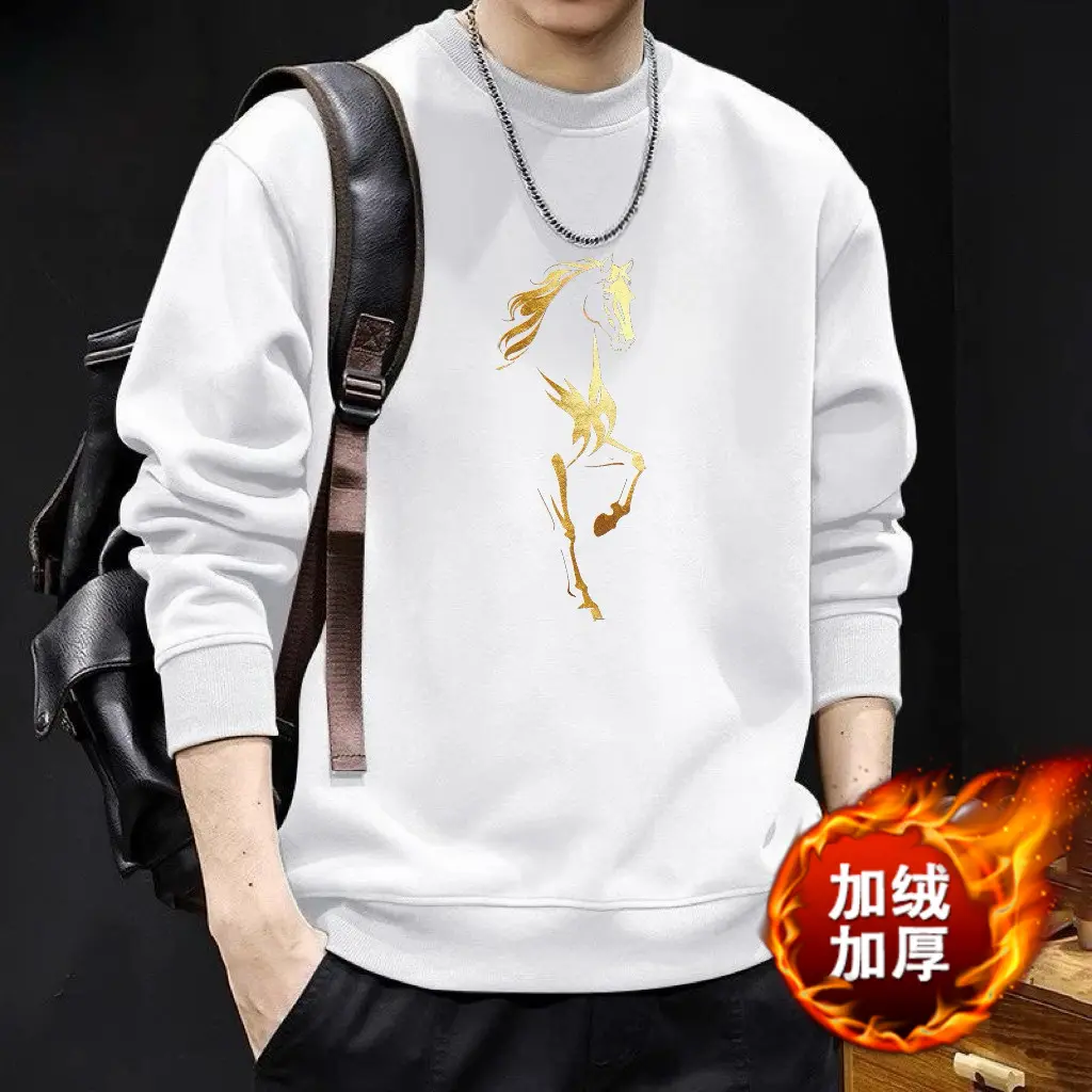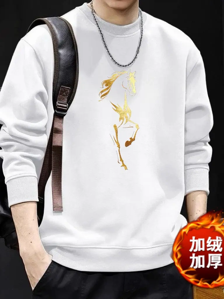 红色本命年印花卫衣男士秋冬2026新款潮流中国风马年时尚百搭上衣