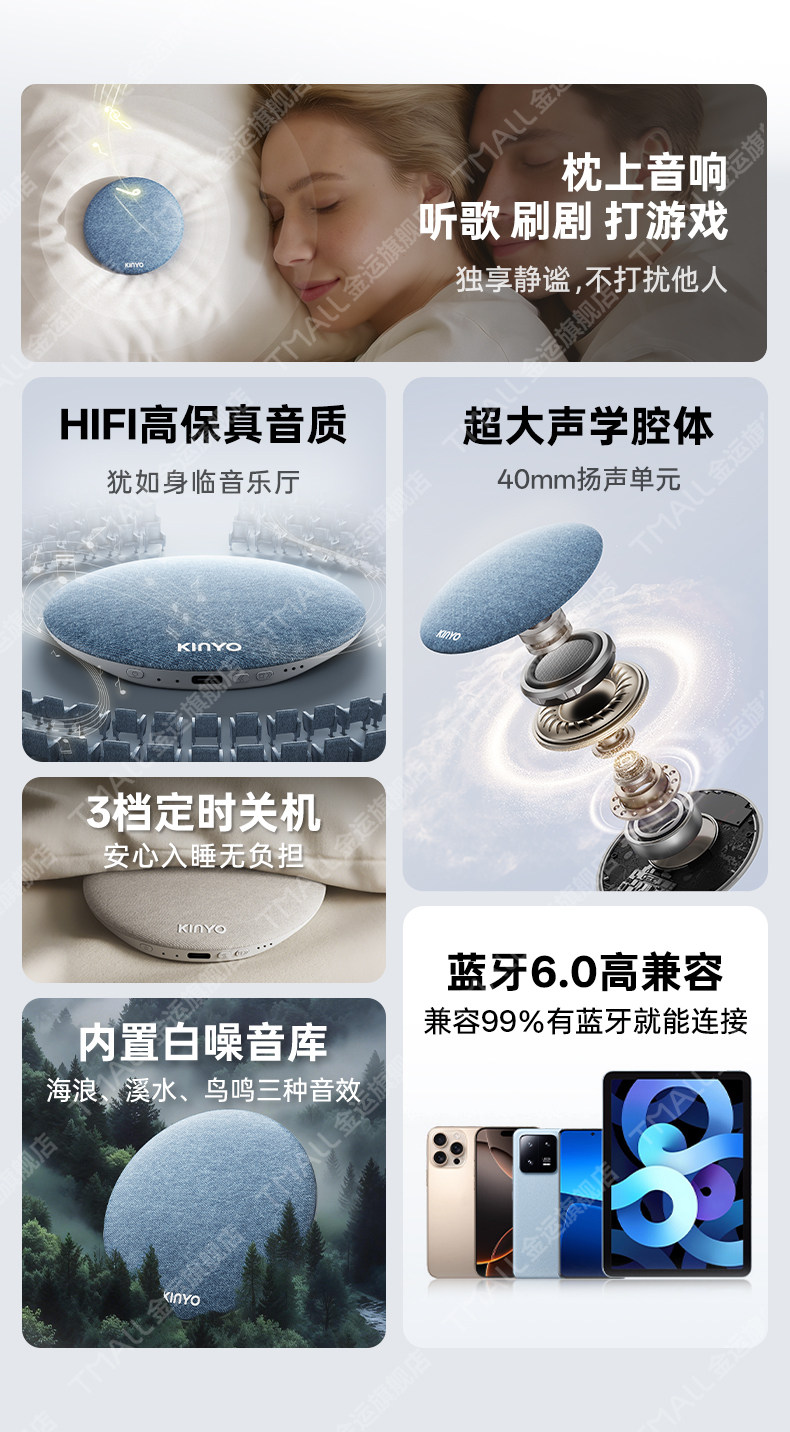 金运枕上音响枕下蓝牙音箱枕头助眠枕边睡眠迷你小型白噪音高音质