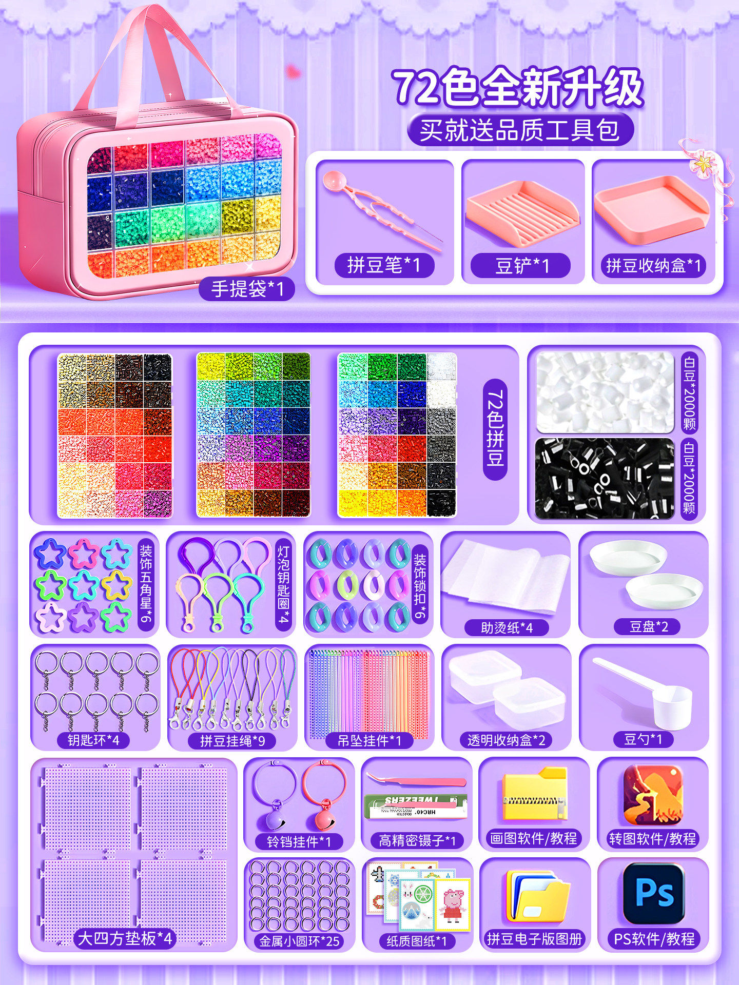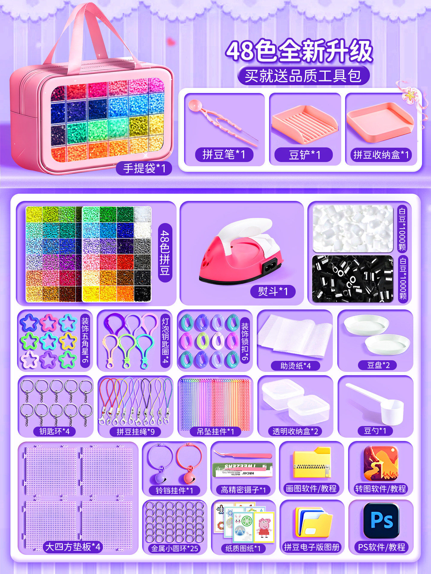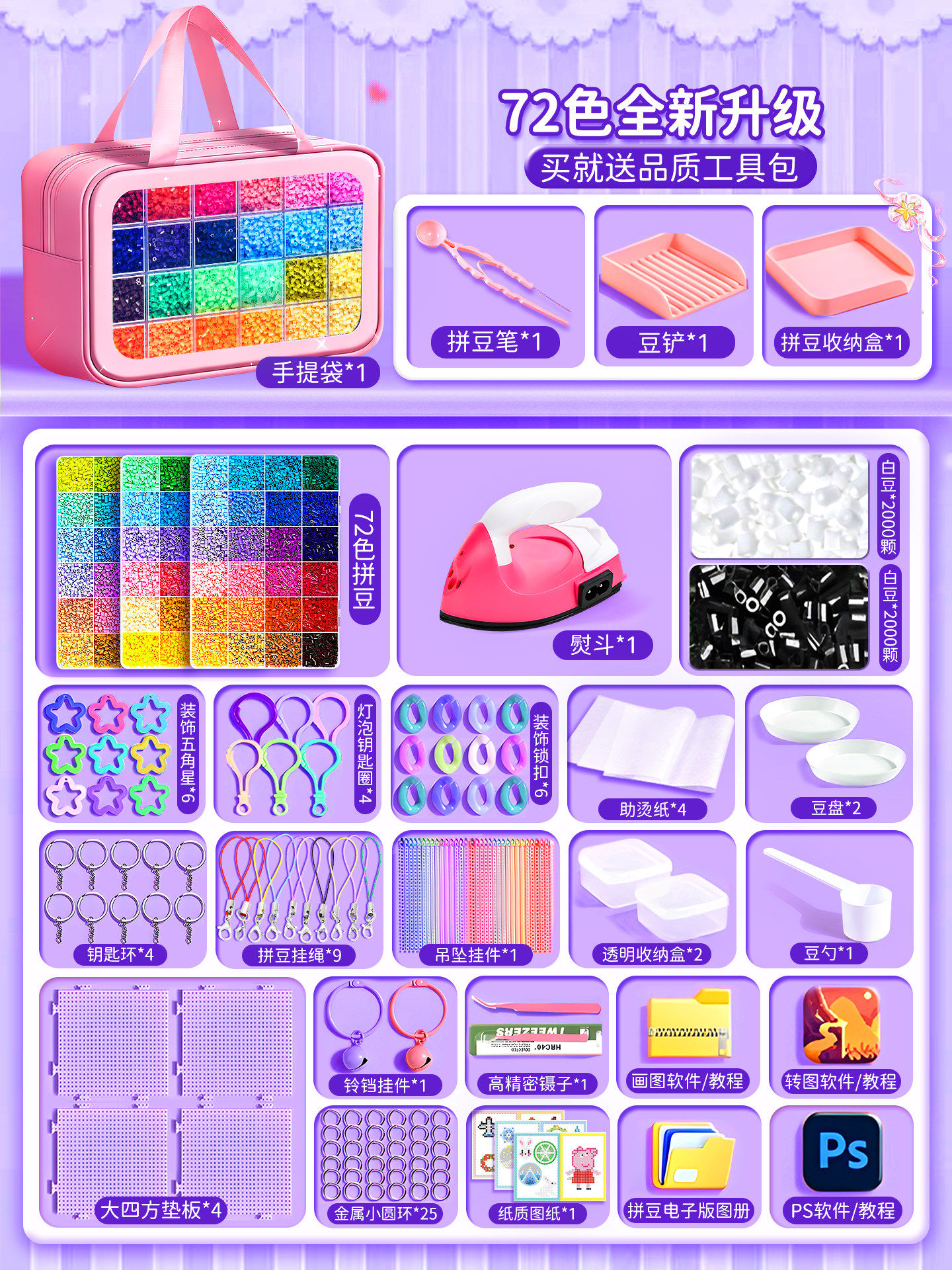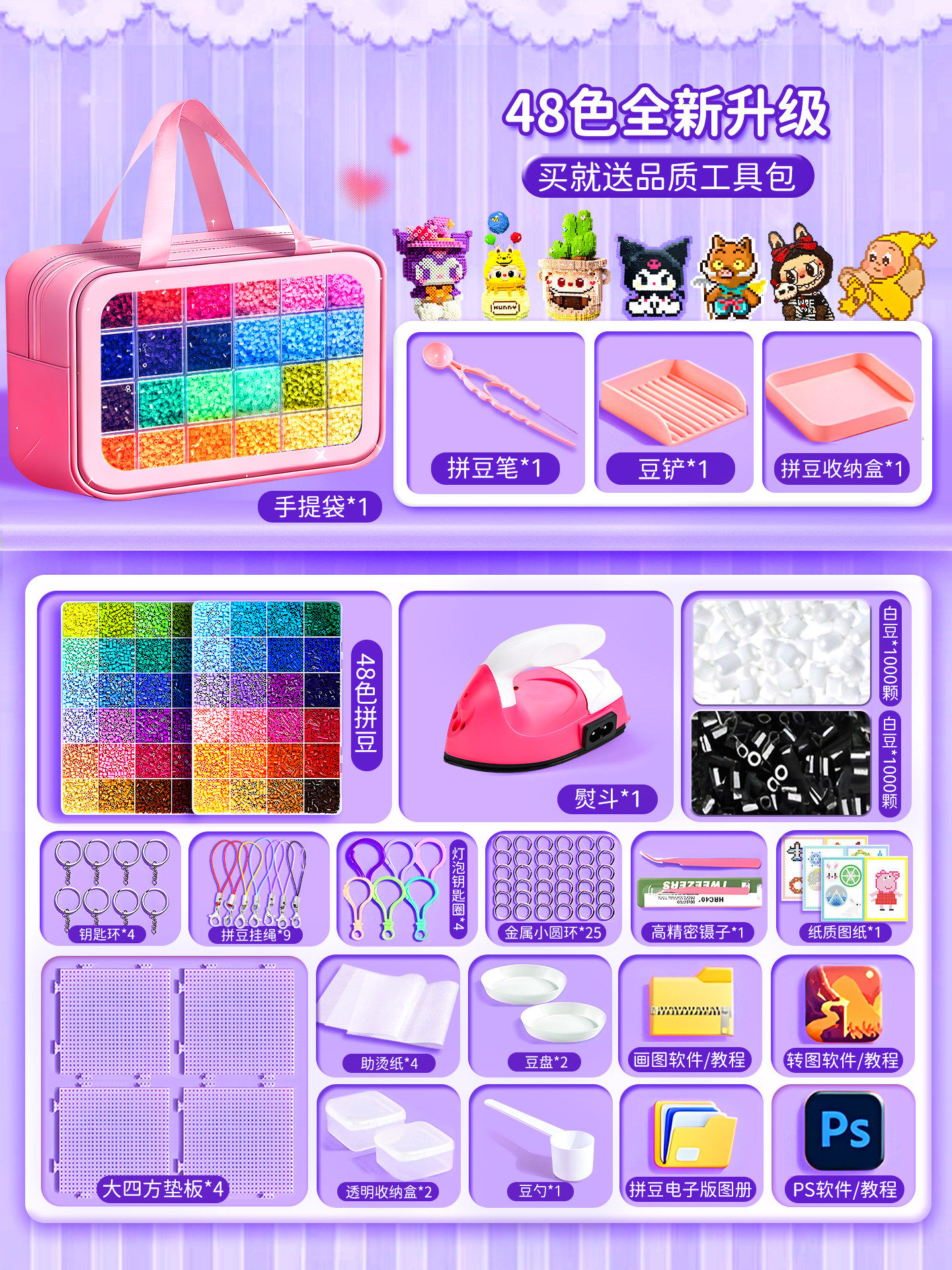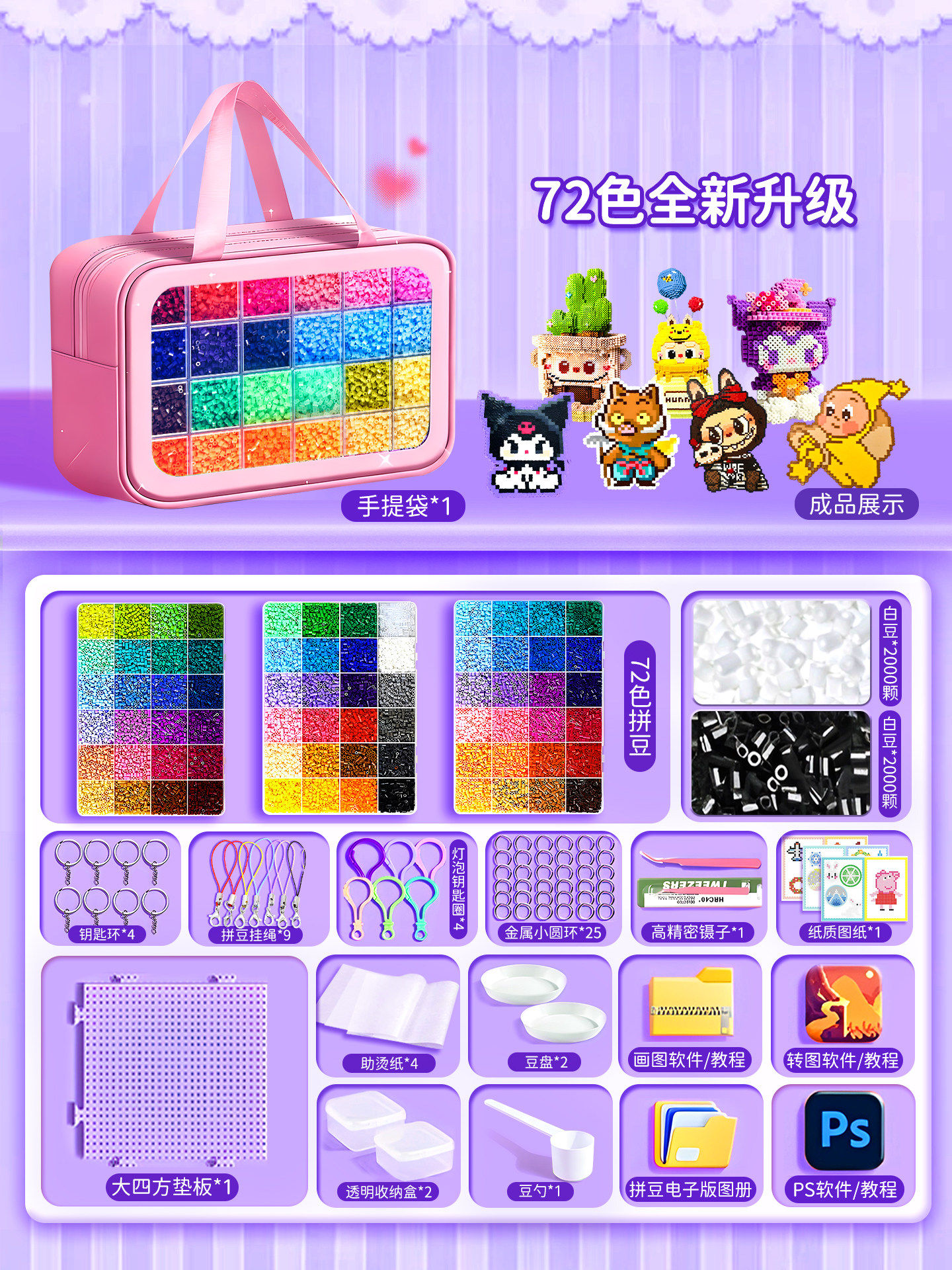拼豆豆手工diy材料包全套立体融合MARD色号套装工具熨斗补充包88