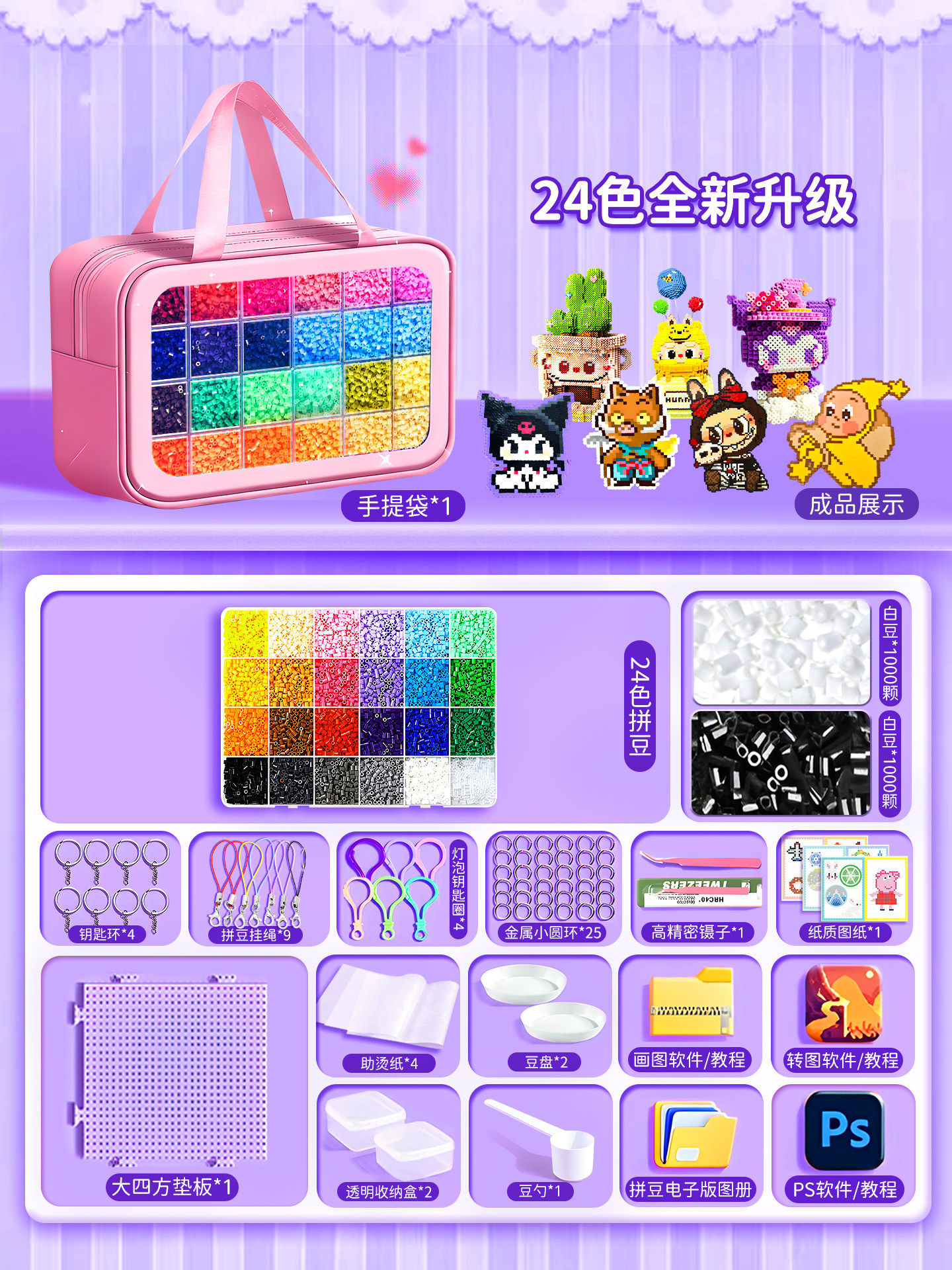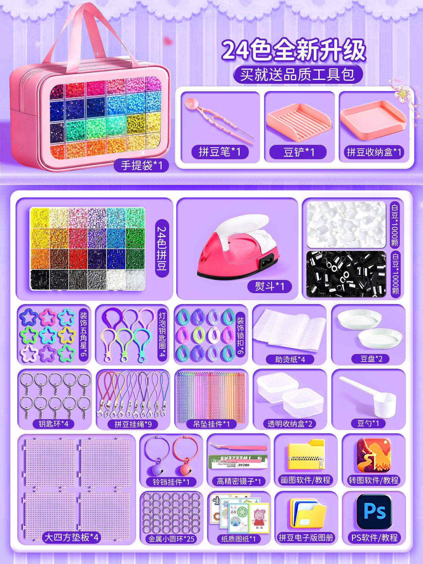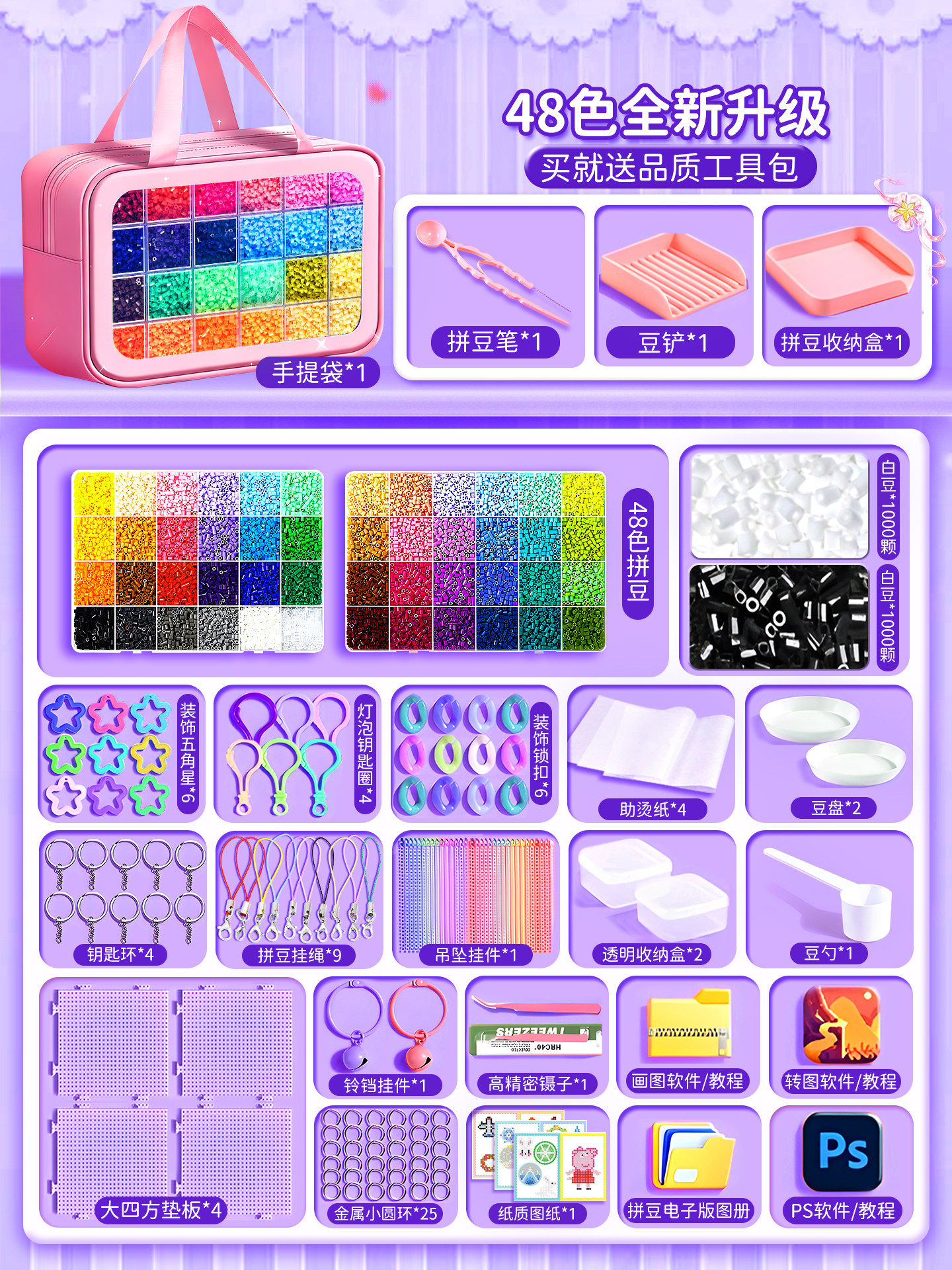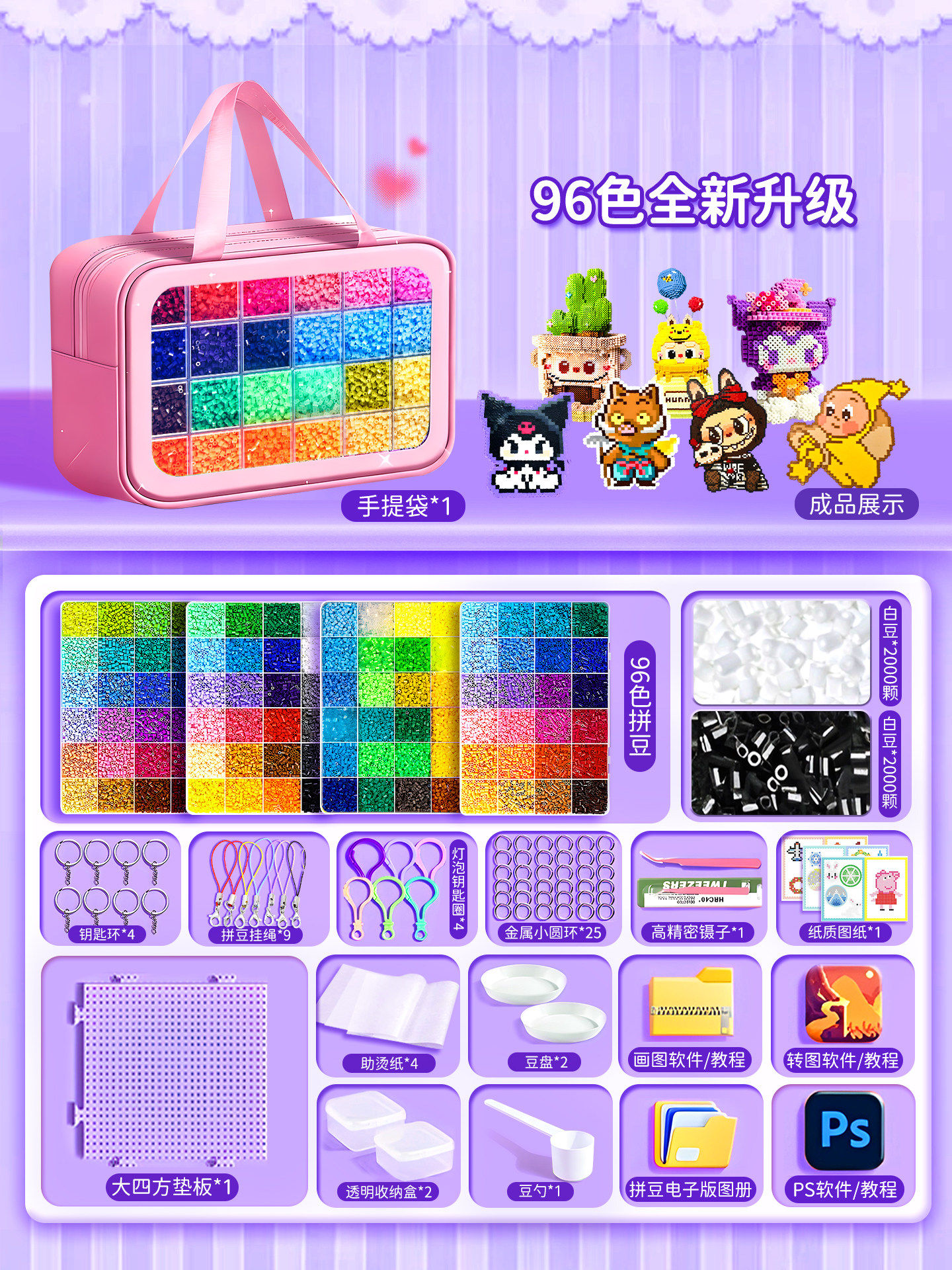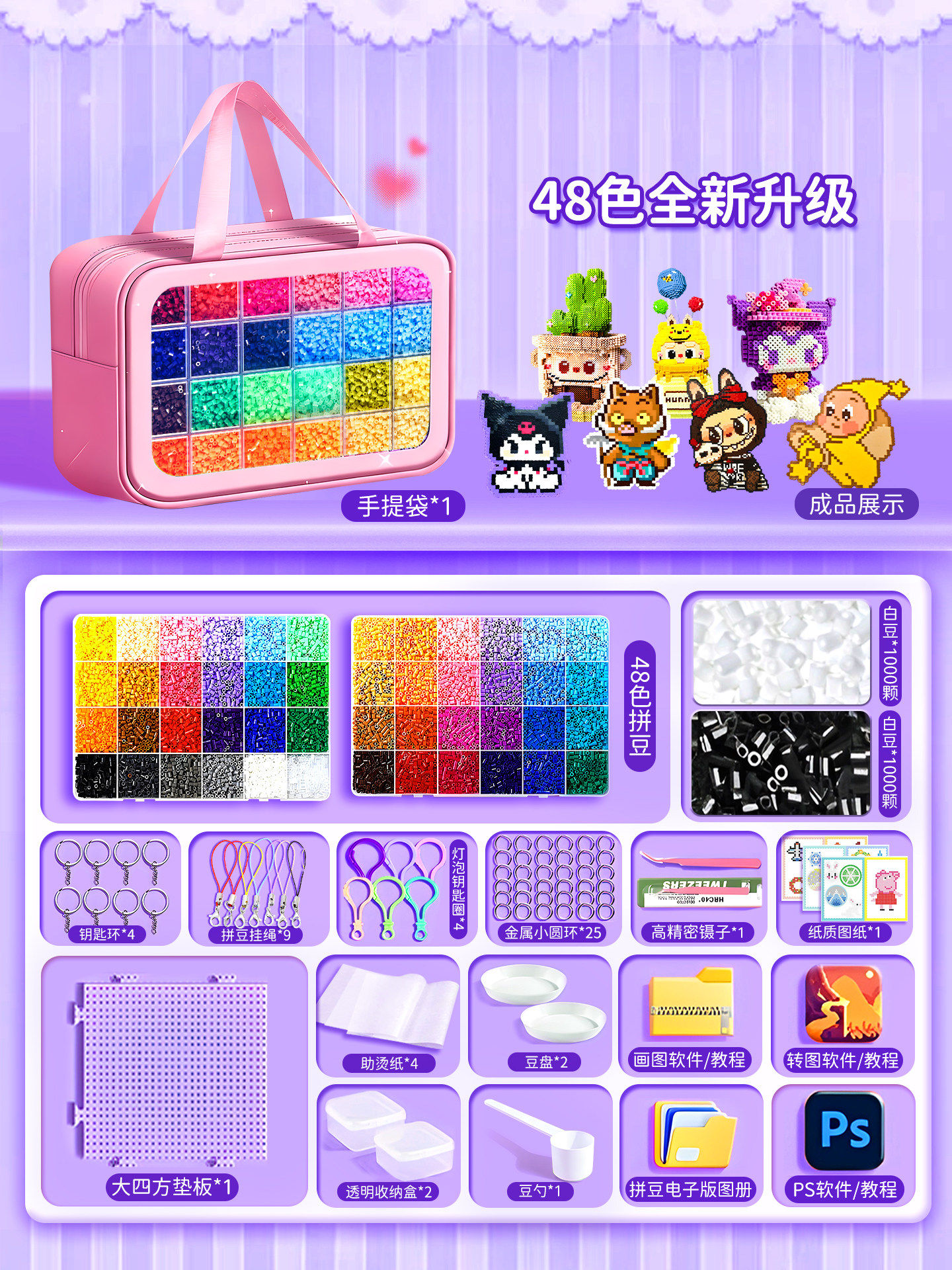 拼豆豆手工diy材料包全套立体融合MARD色号套装工具熨斗补充包88