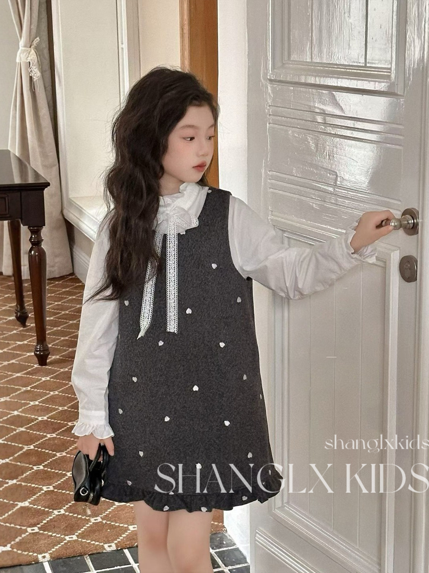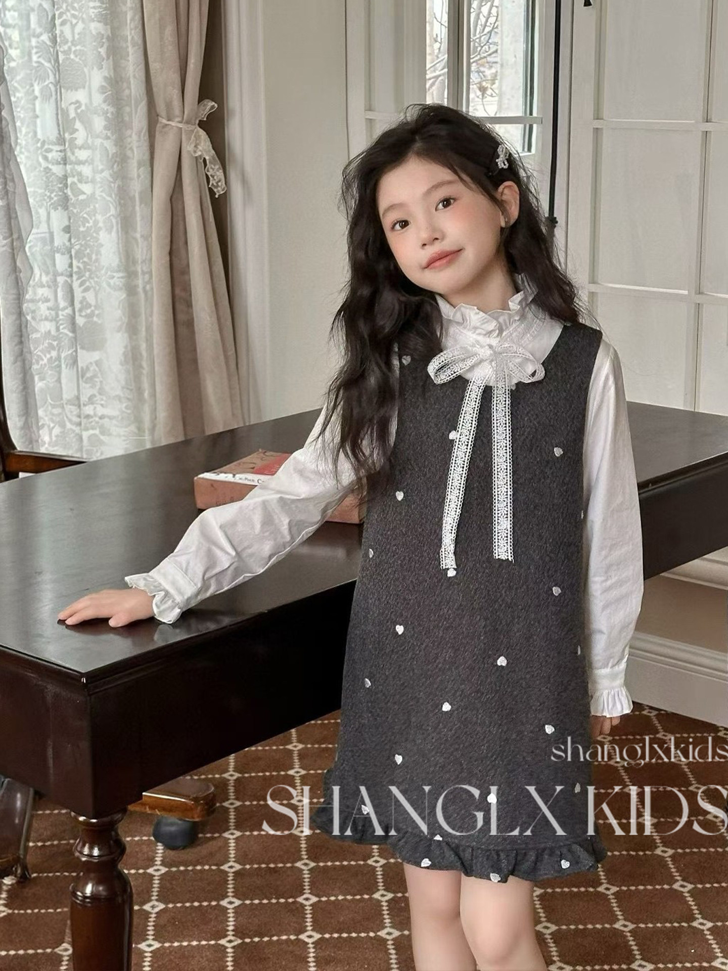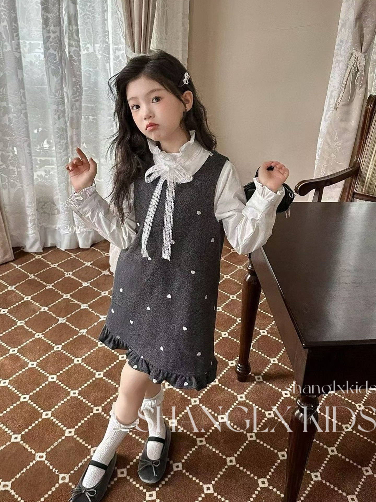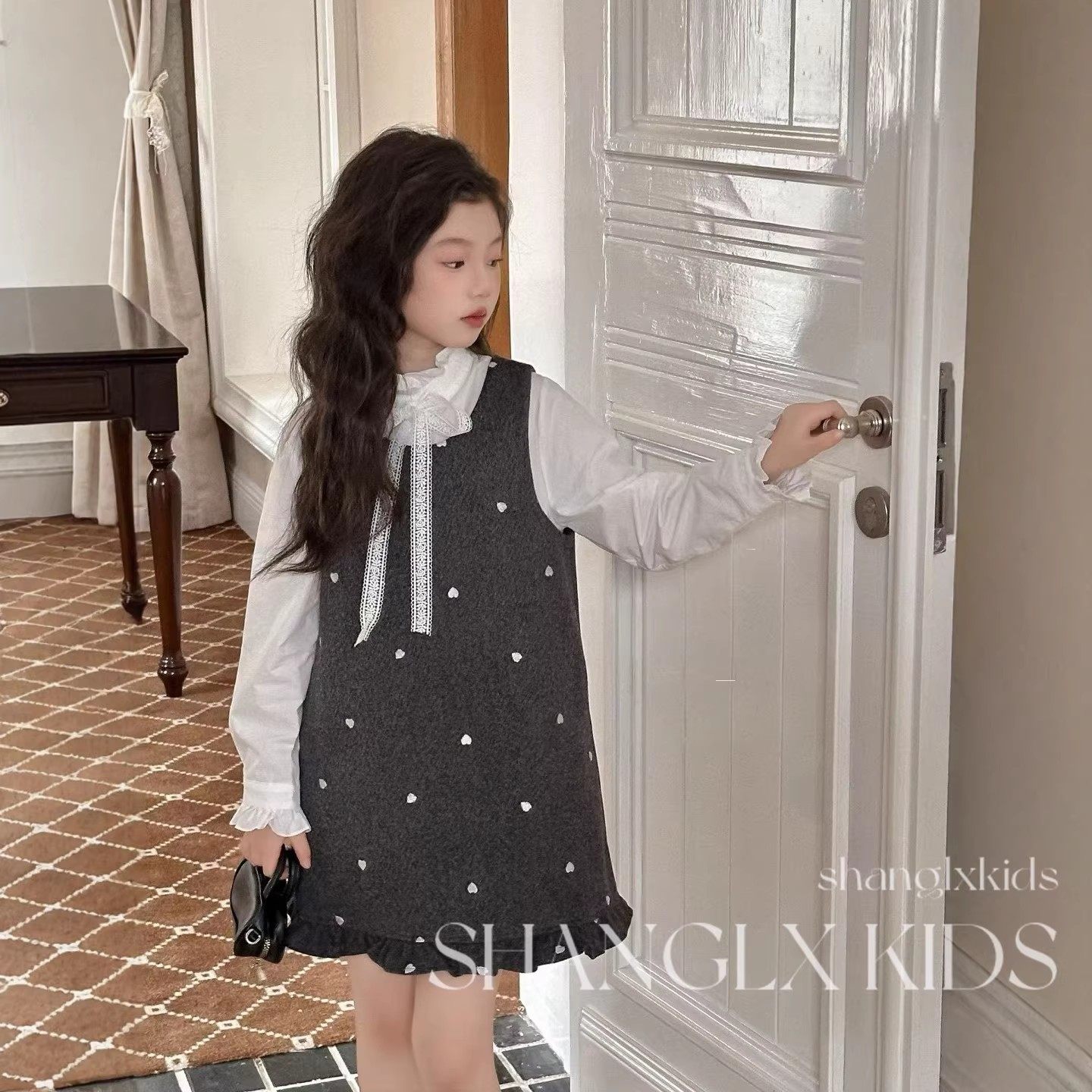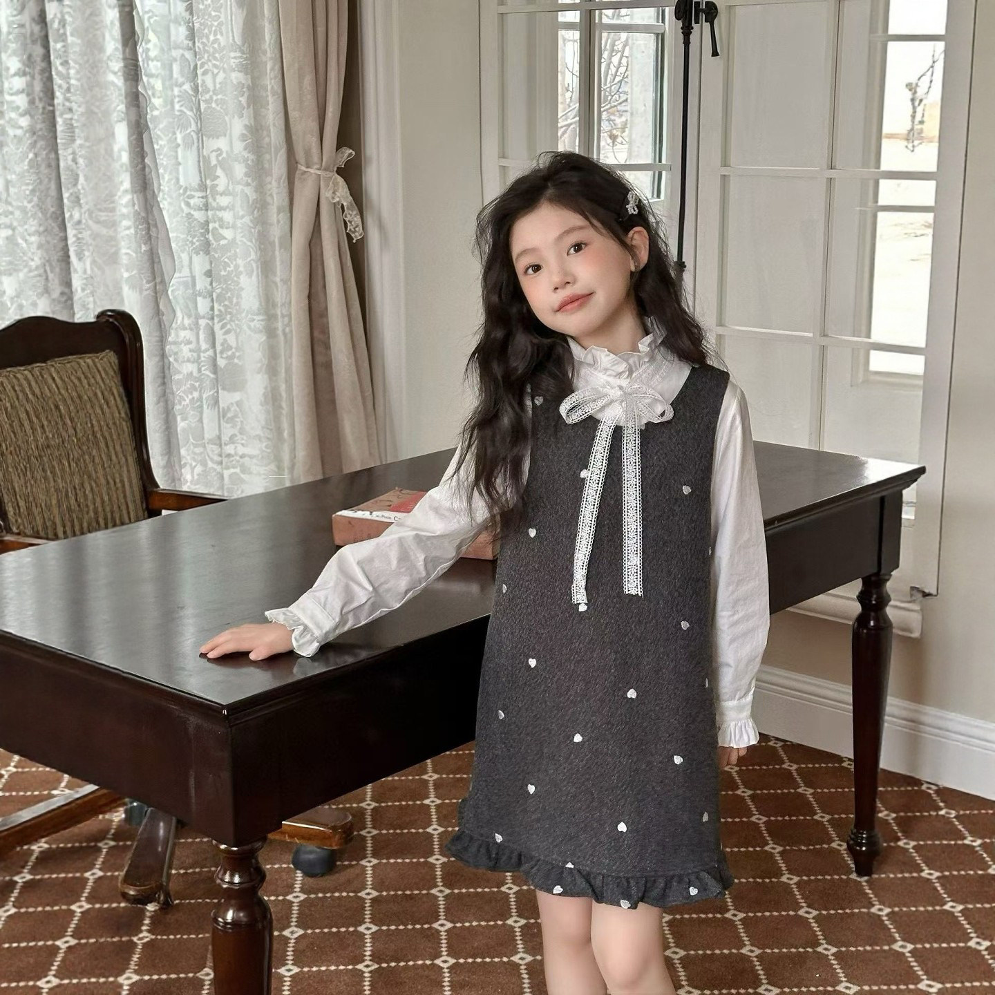 女童巨好看冬裙灰色毛呢裙子冬季小女孩绝美公主裙2025新款高级感