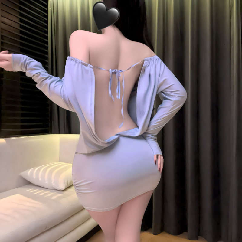 【刘季一万钱】游山恋后背摇纯欲露背连衣裙性感显瘦一字肩小短裙