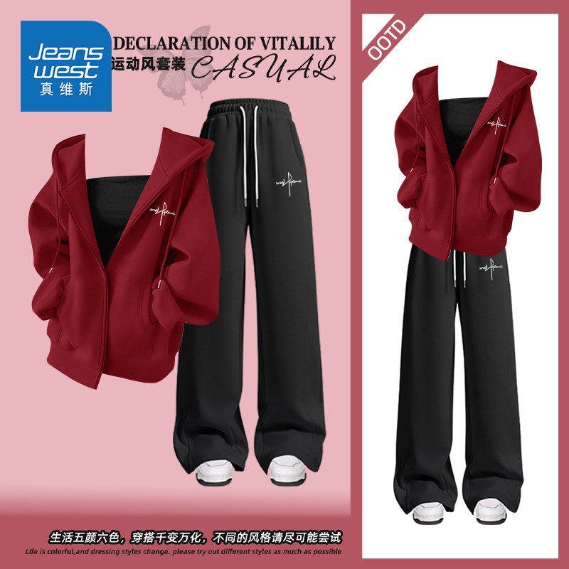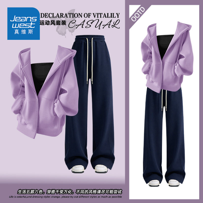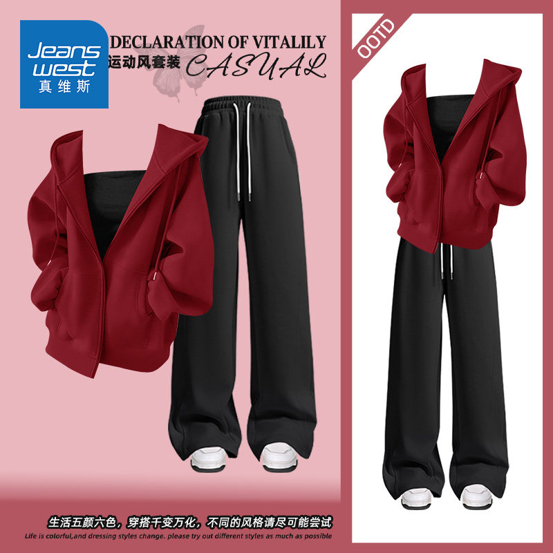 真维斯2026超火穿搭一整套女春秋款连帽卫衣小个子休闲运动女装X