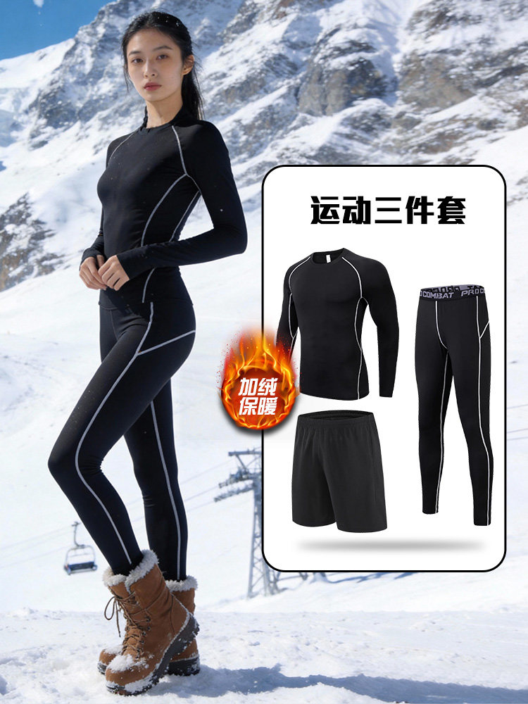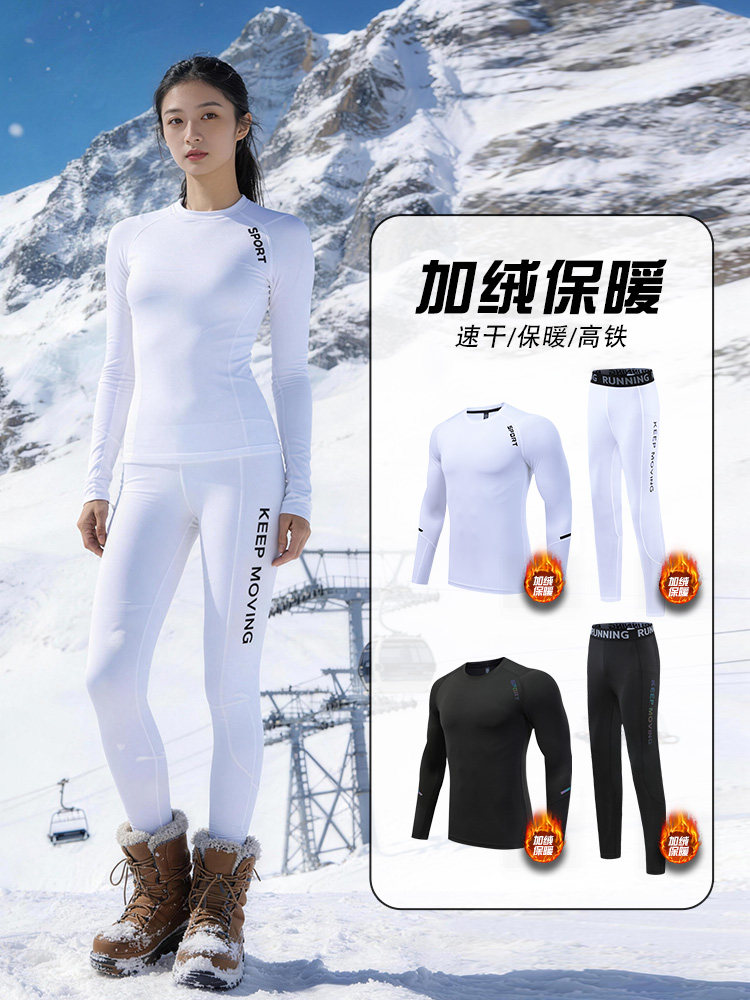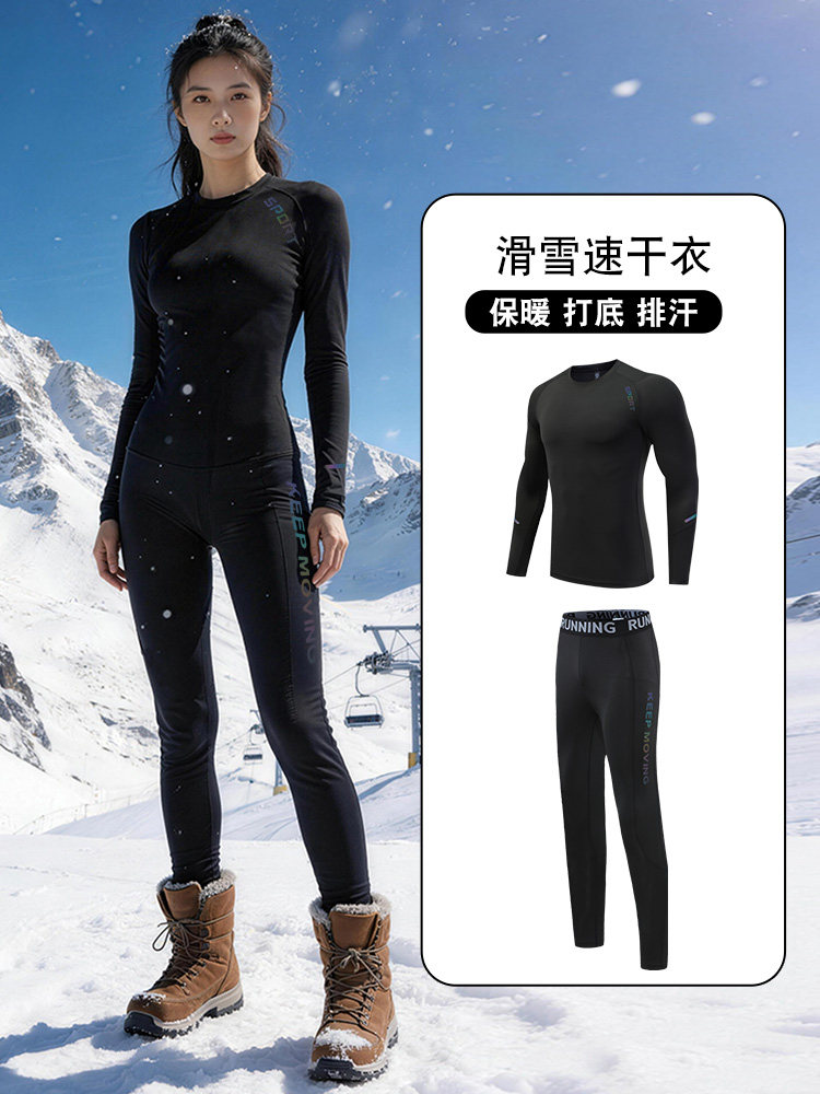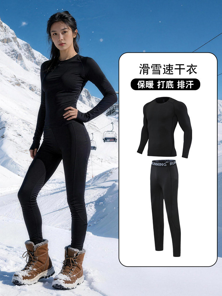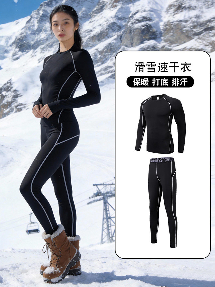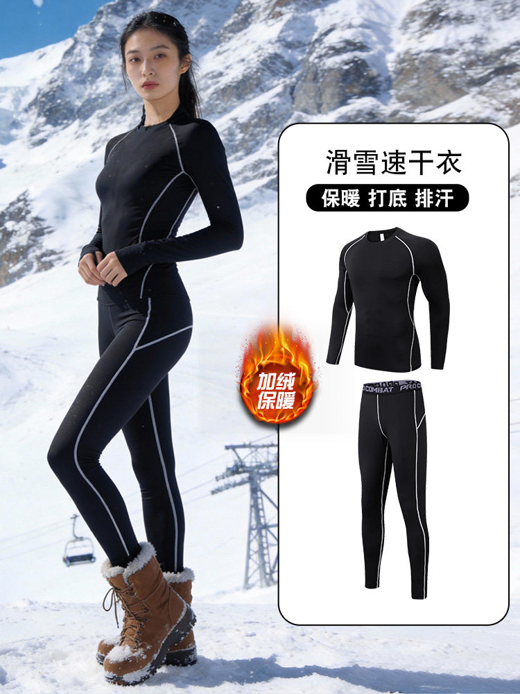滑雪速干衣男女保暖内搭衣冬季加绒户外登山打底长袖跑步运动套装