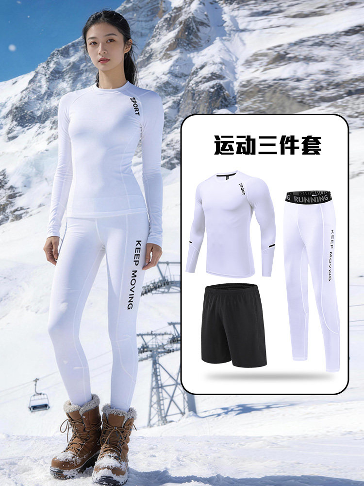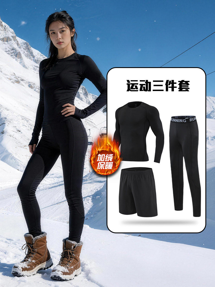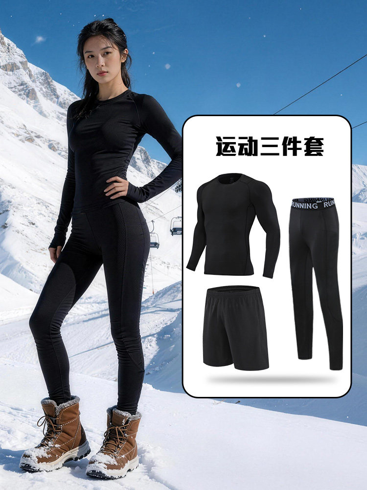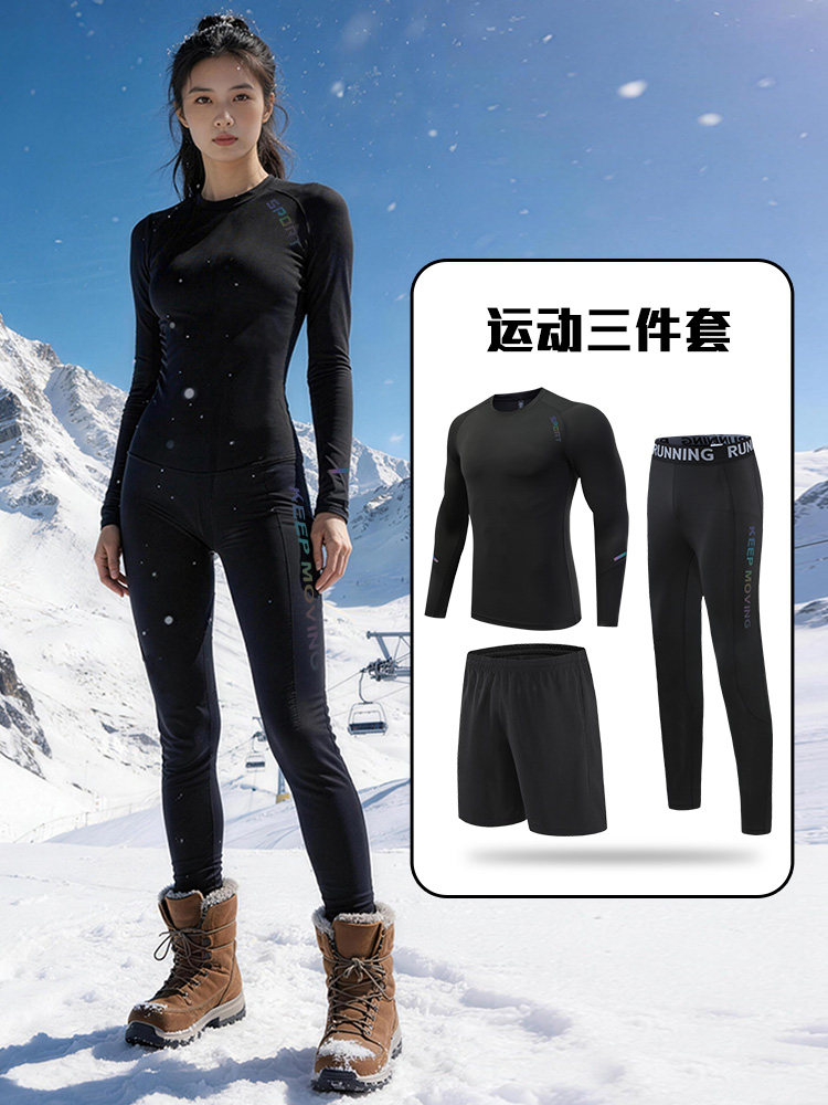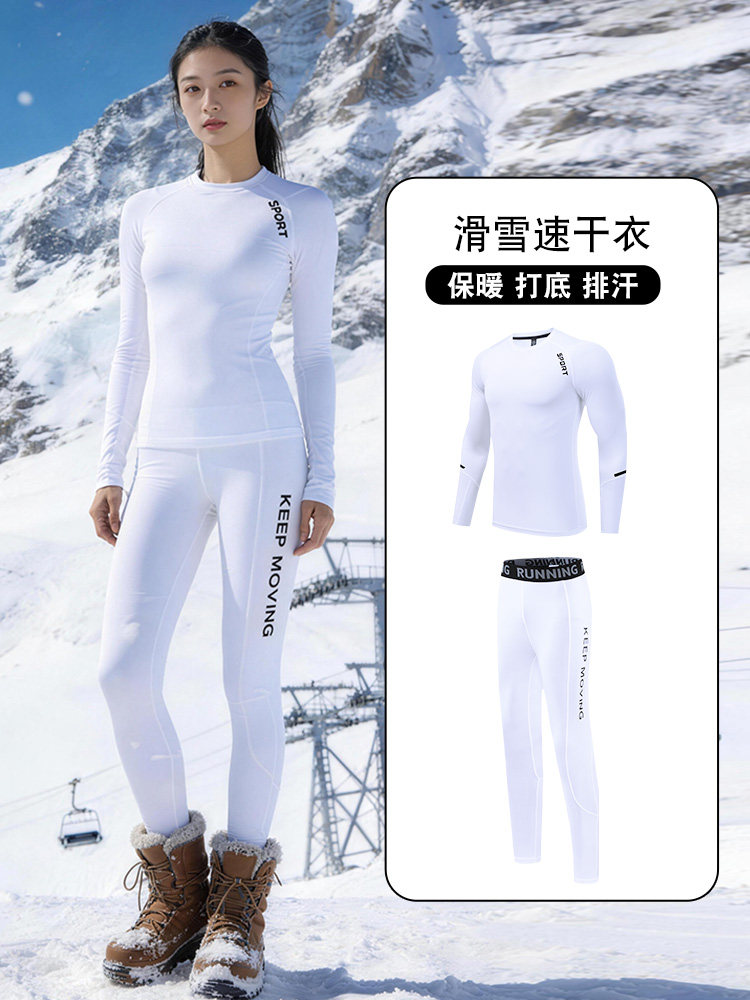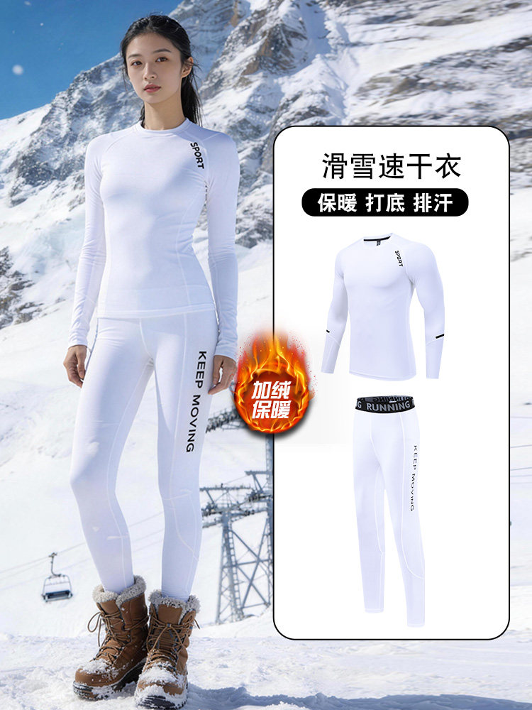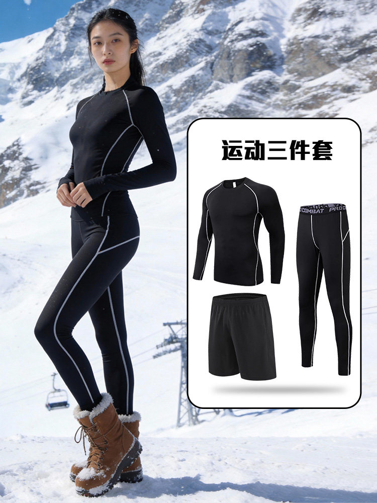 滑雪速干衣男女保暖内搭衣冬季加绒户外登山打底长袖跑步运动套装