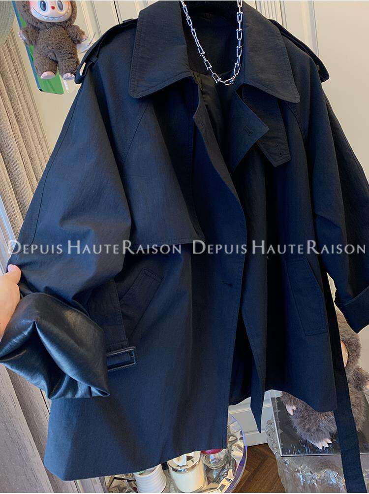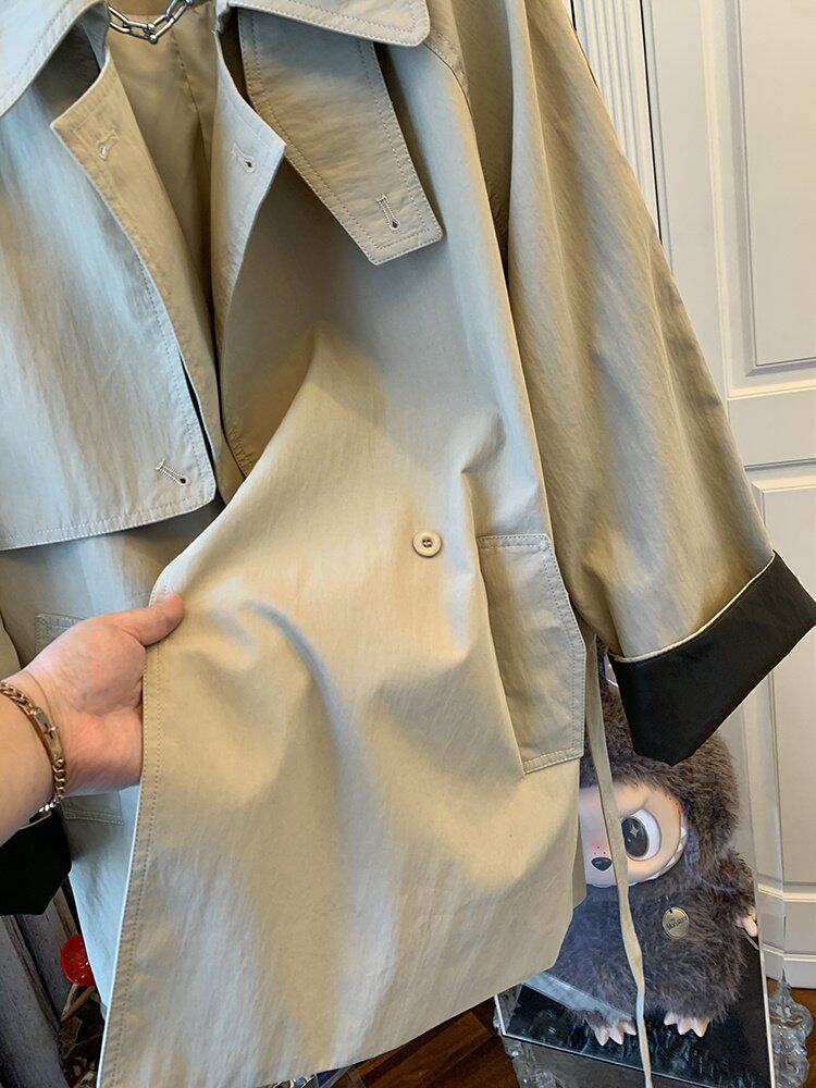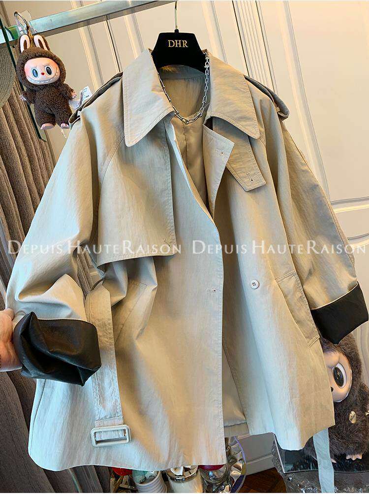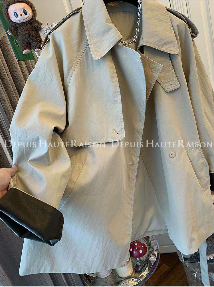 2026春秋季新款女士高级感宽松时髦中长款外套英伦风气质翻领风衣