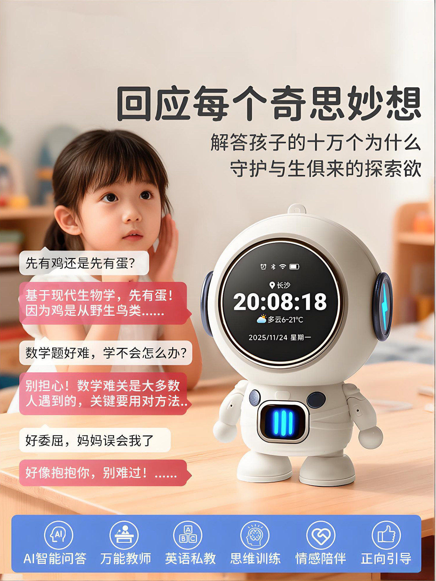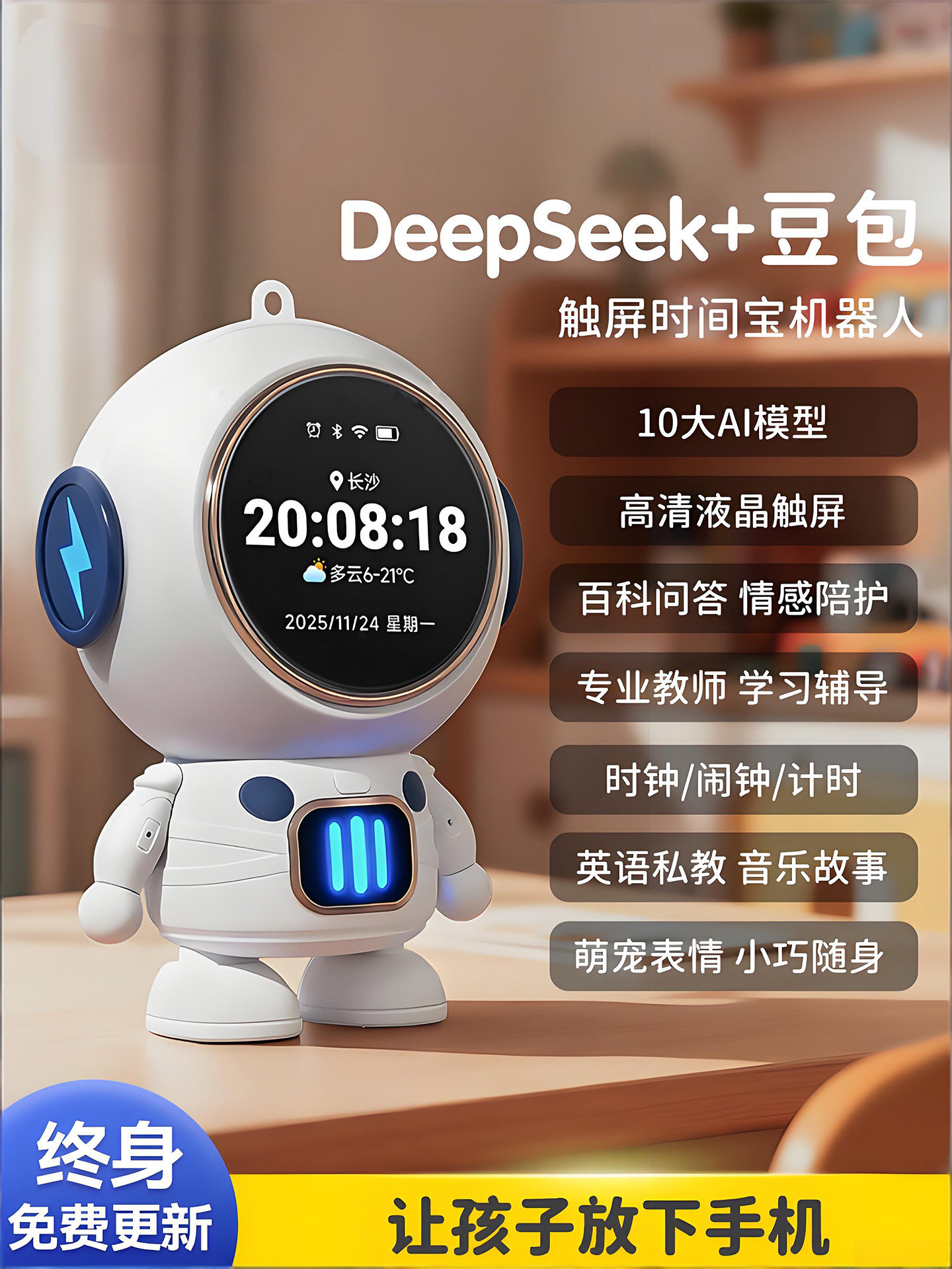 豆包智能ai机器人闹钟deepseek儿童学习语音对话玩具新年生日礼物