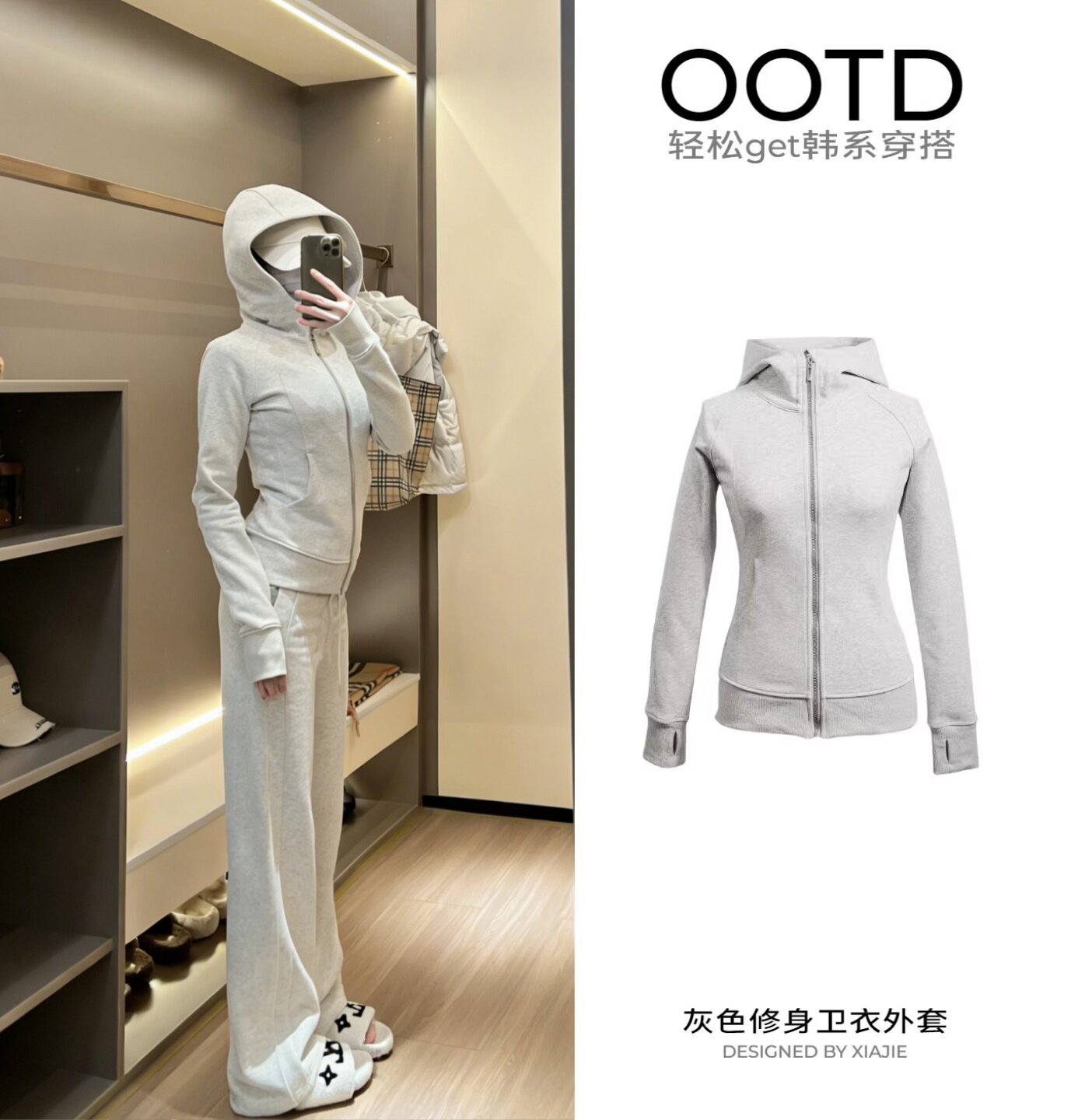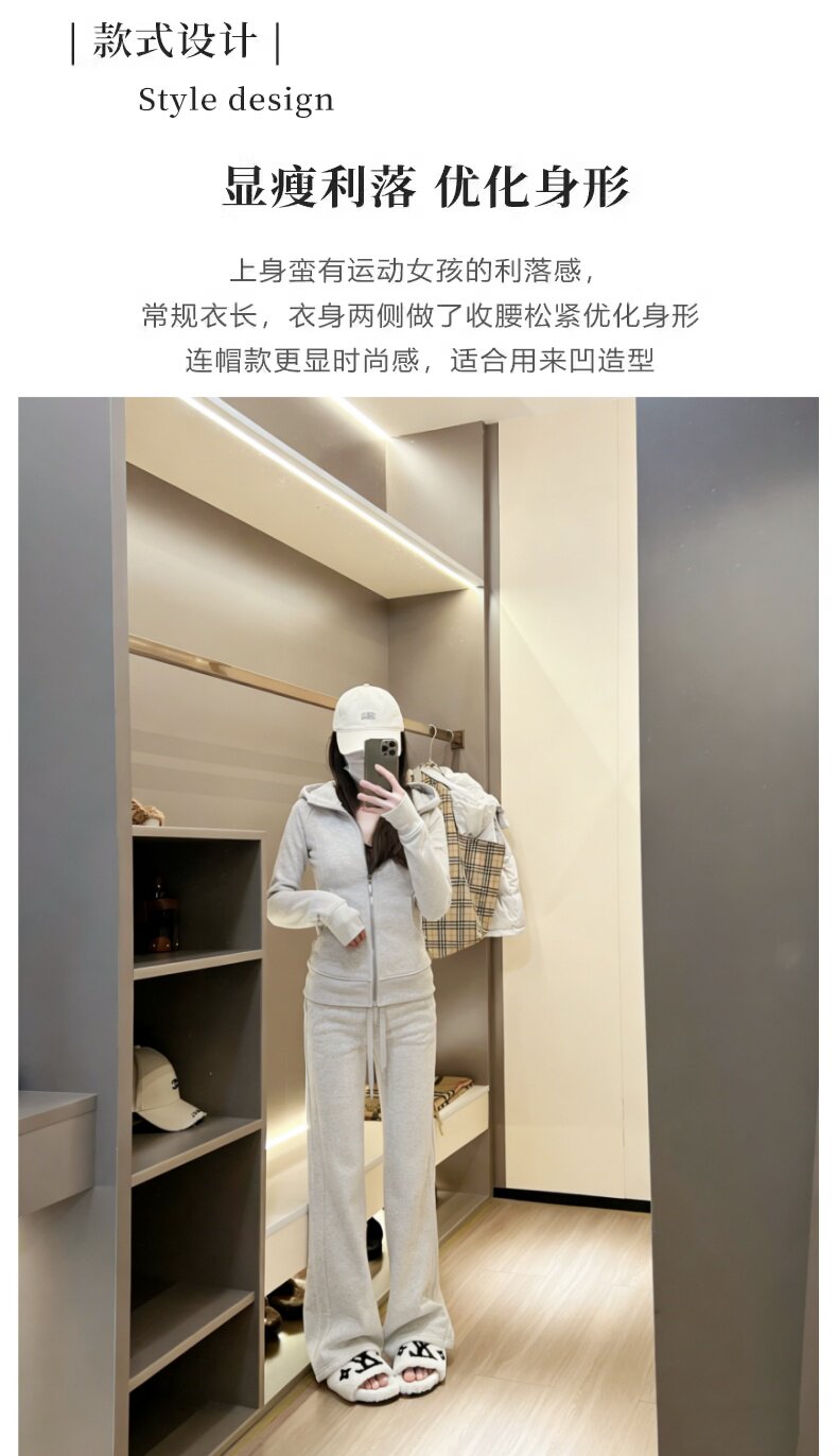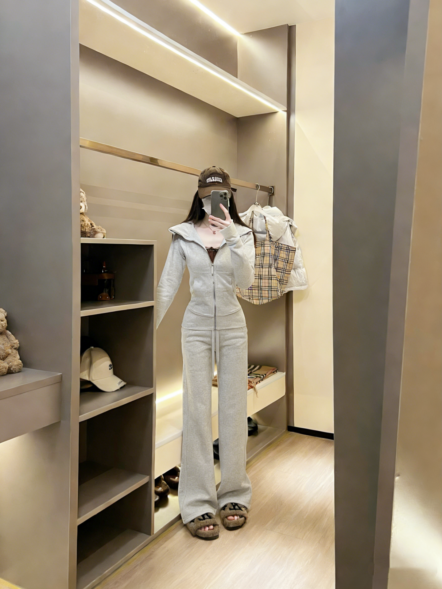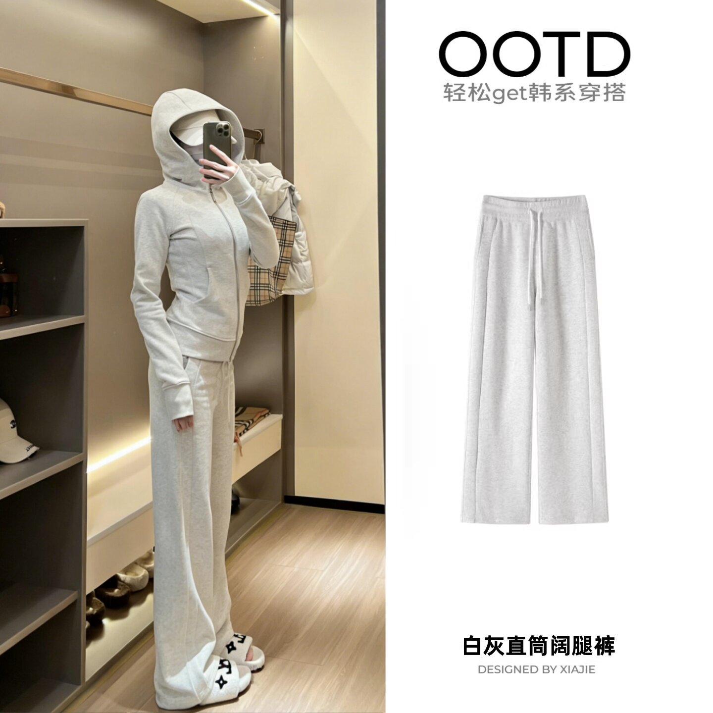 灰色休闲运动套装女2026超火穿搭一整套卫衣外套休闲裤两件套韩系