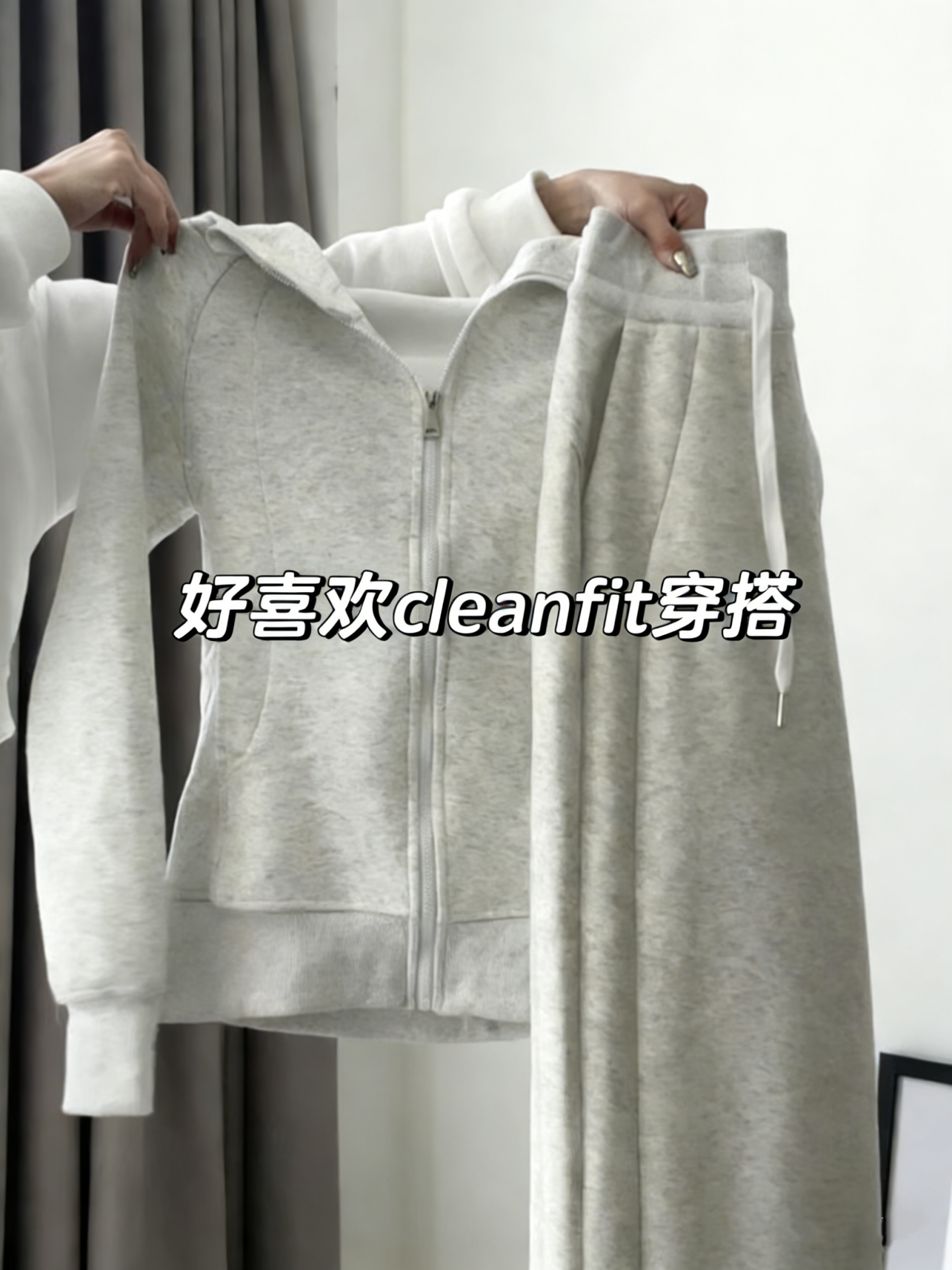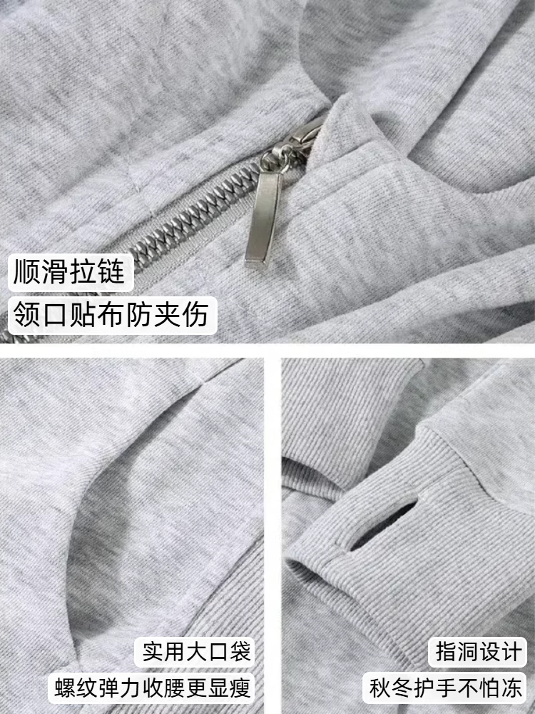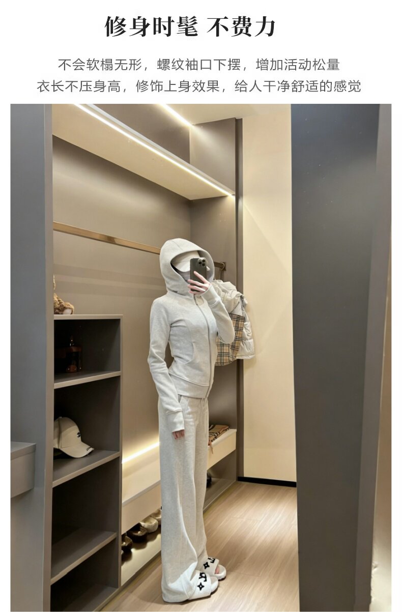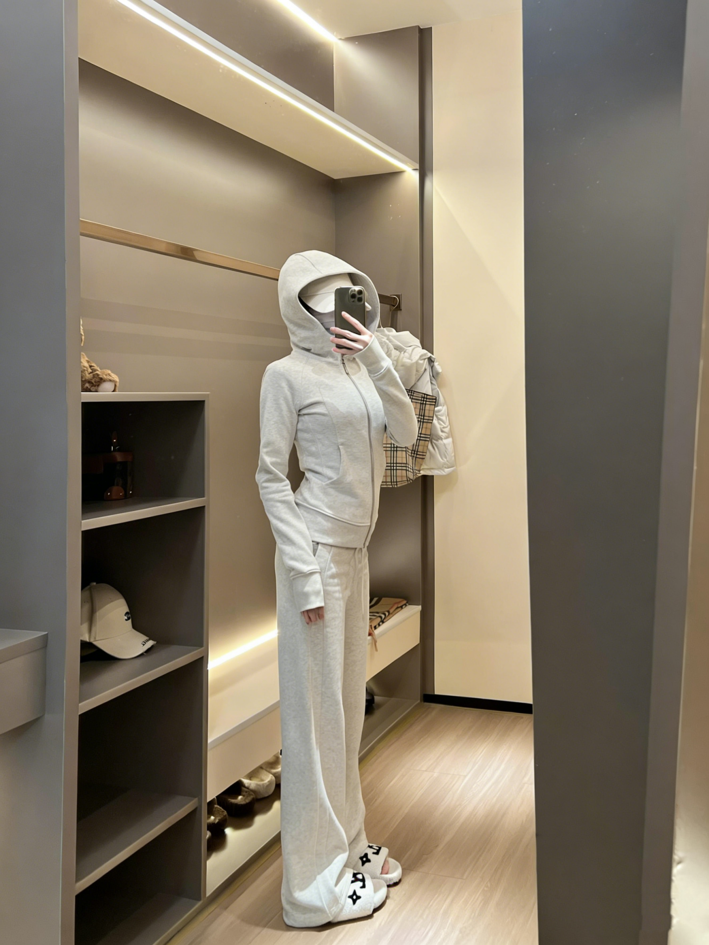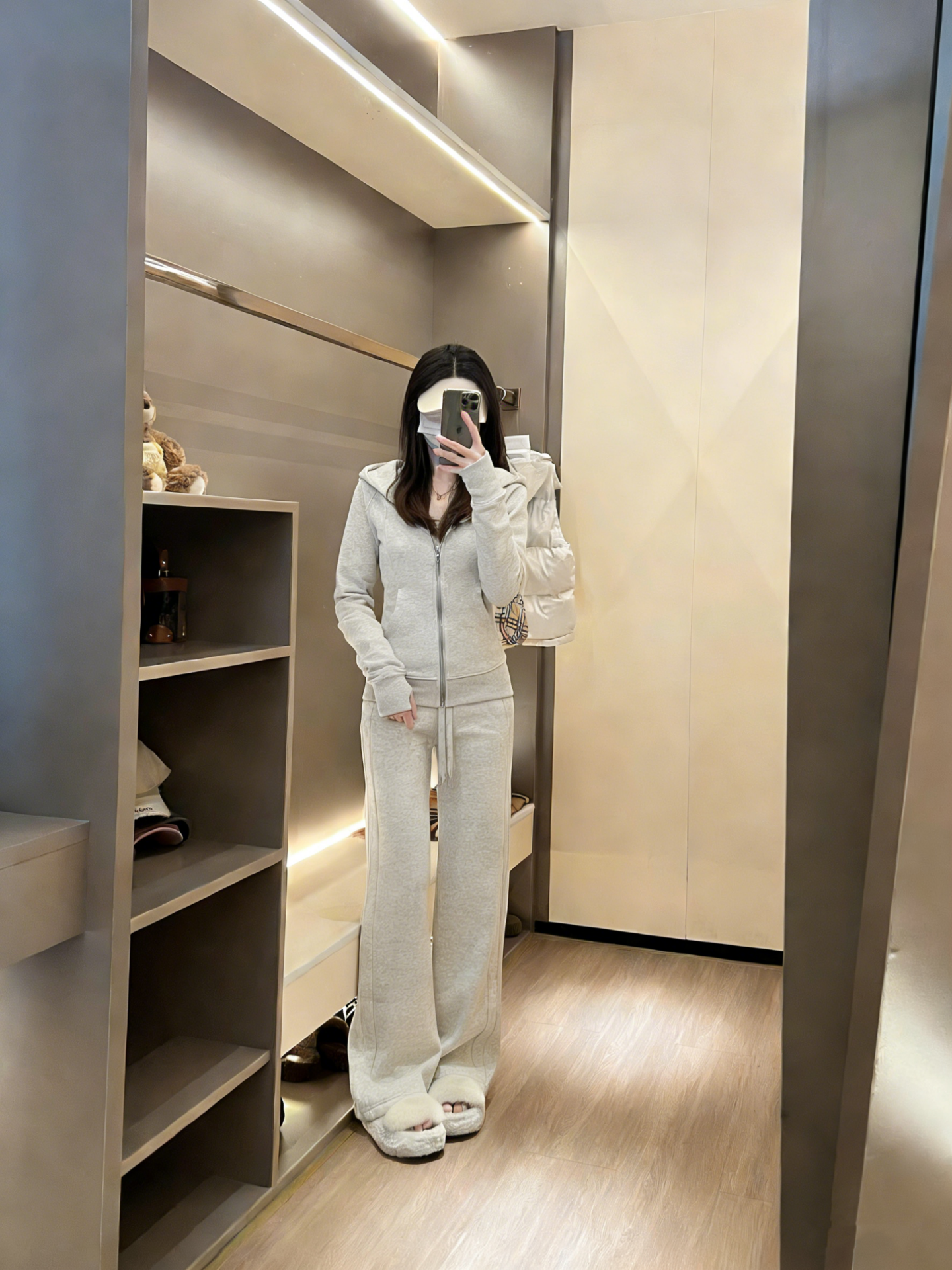 灰色休闲运动套装女2026超火穿搭一整套卫衣外套休闲裤两件套韩系