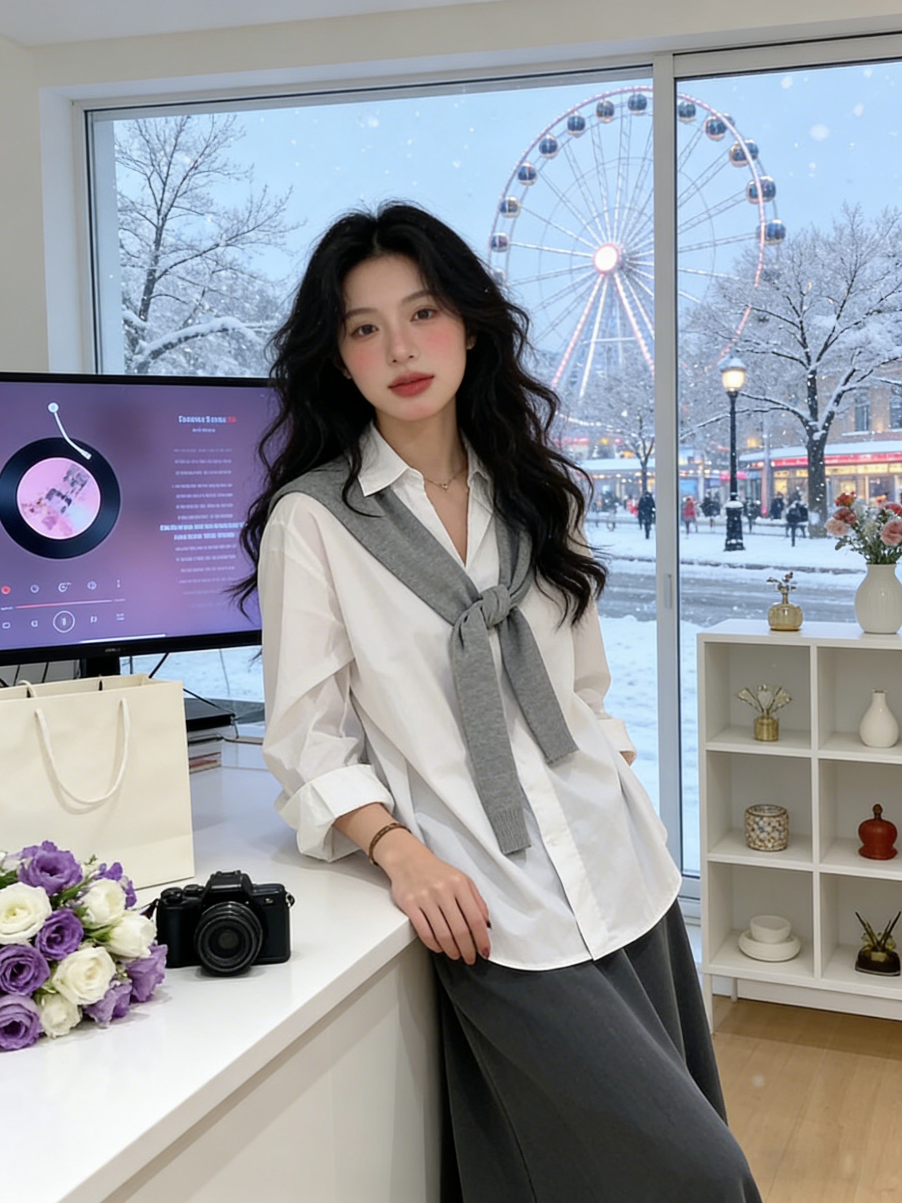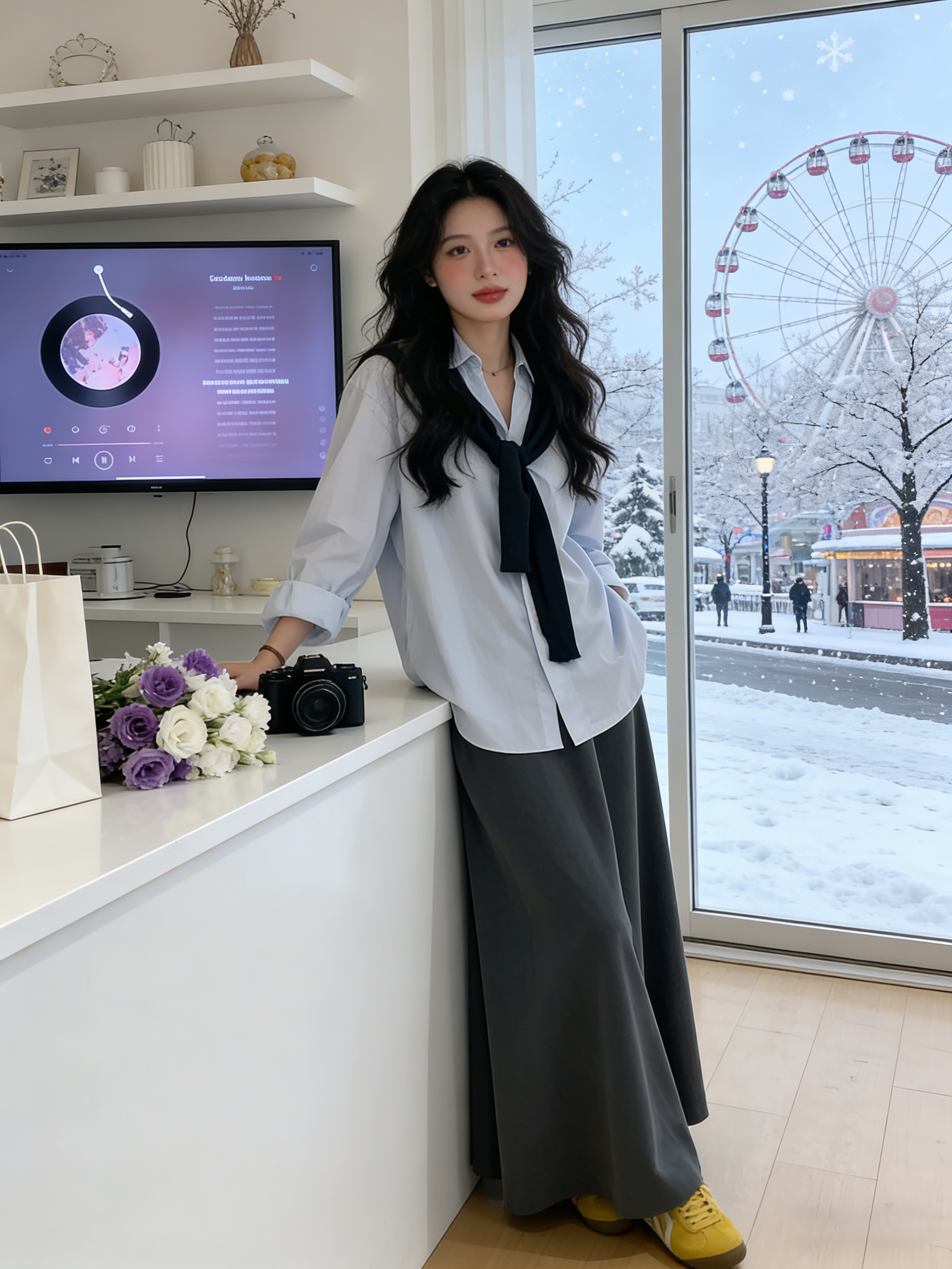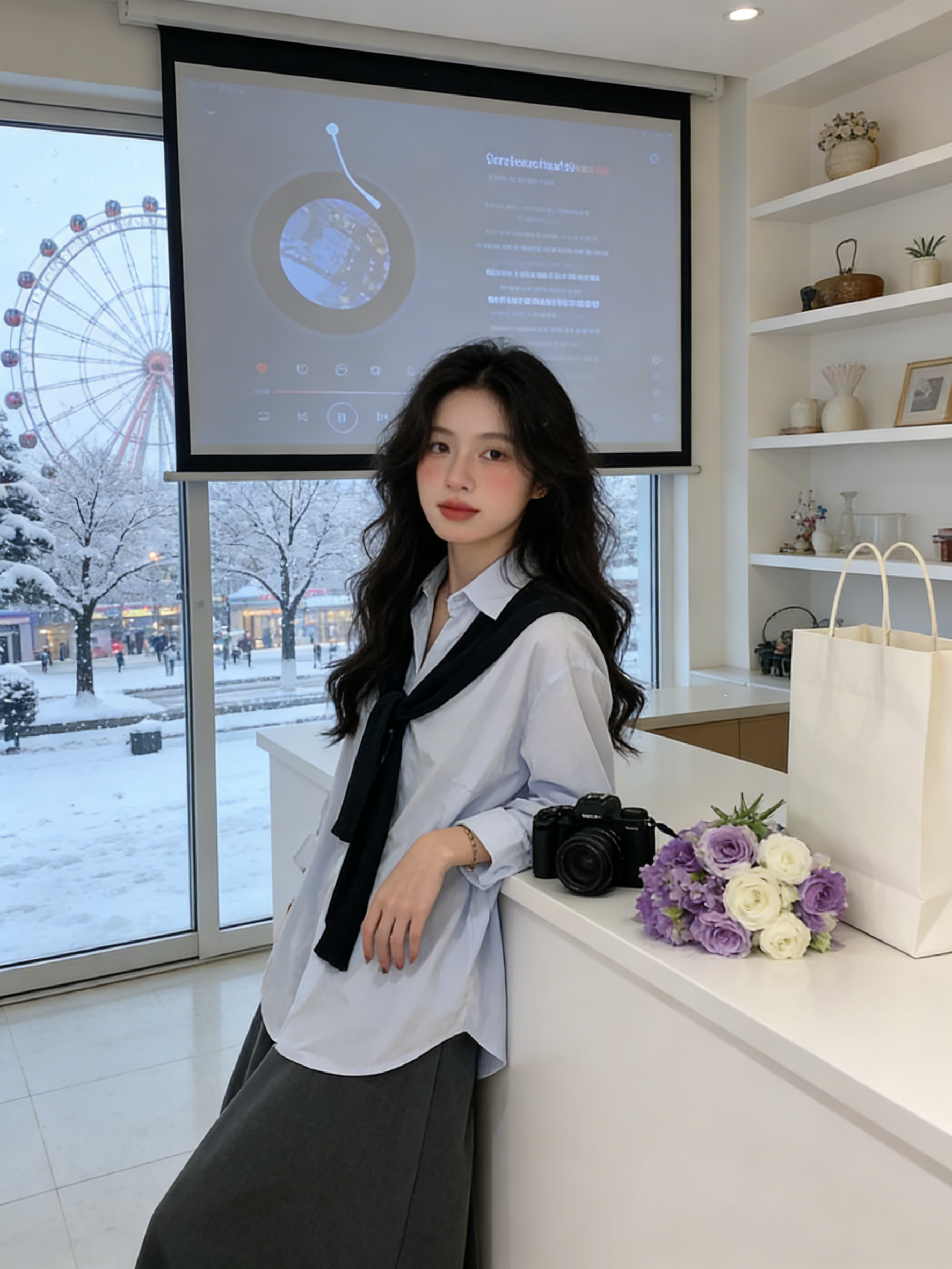 韩系披肩蓝色长袖衬衫女装早春2026新款气质通勤宽松显瘦百搭上衣