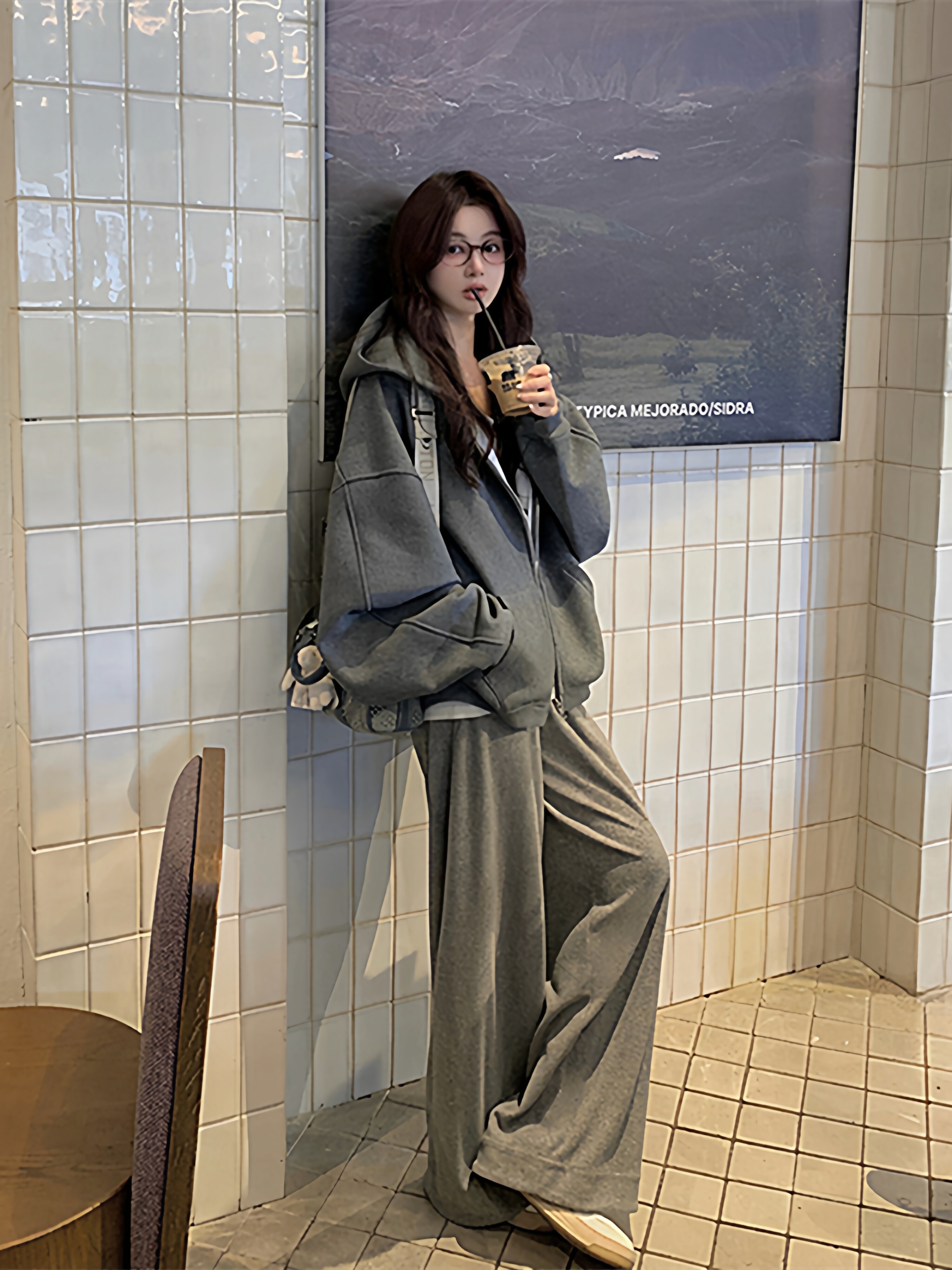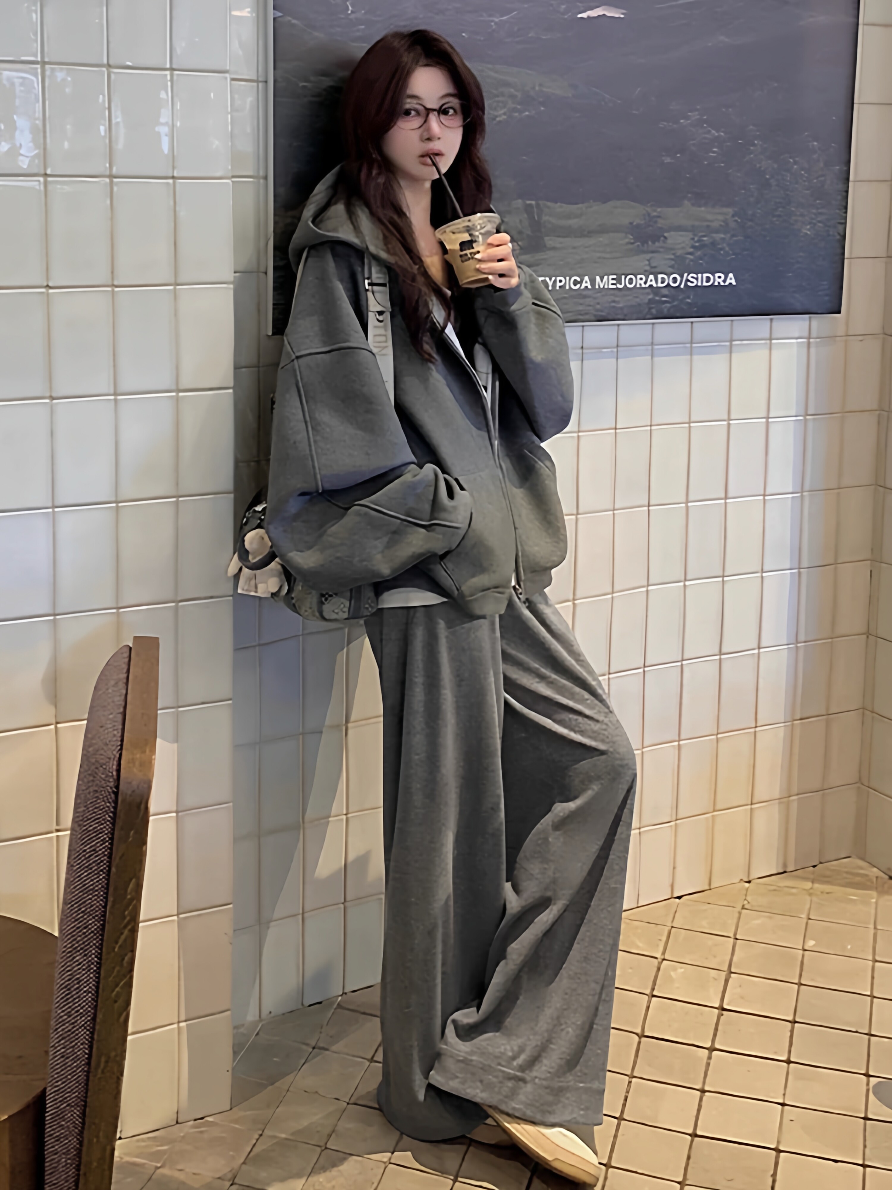 慵懒风运动套装女春秋季学生韩系宽松显瘦时尚连帽卫衣休闲两件套