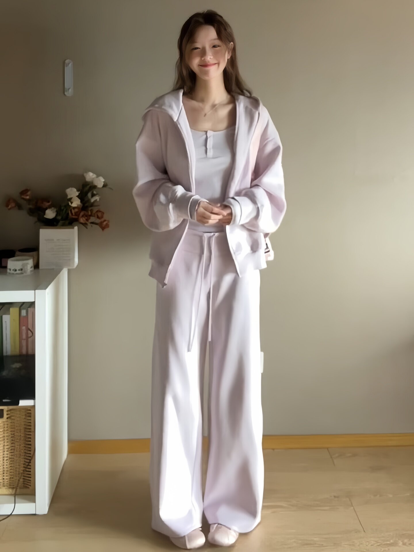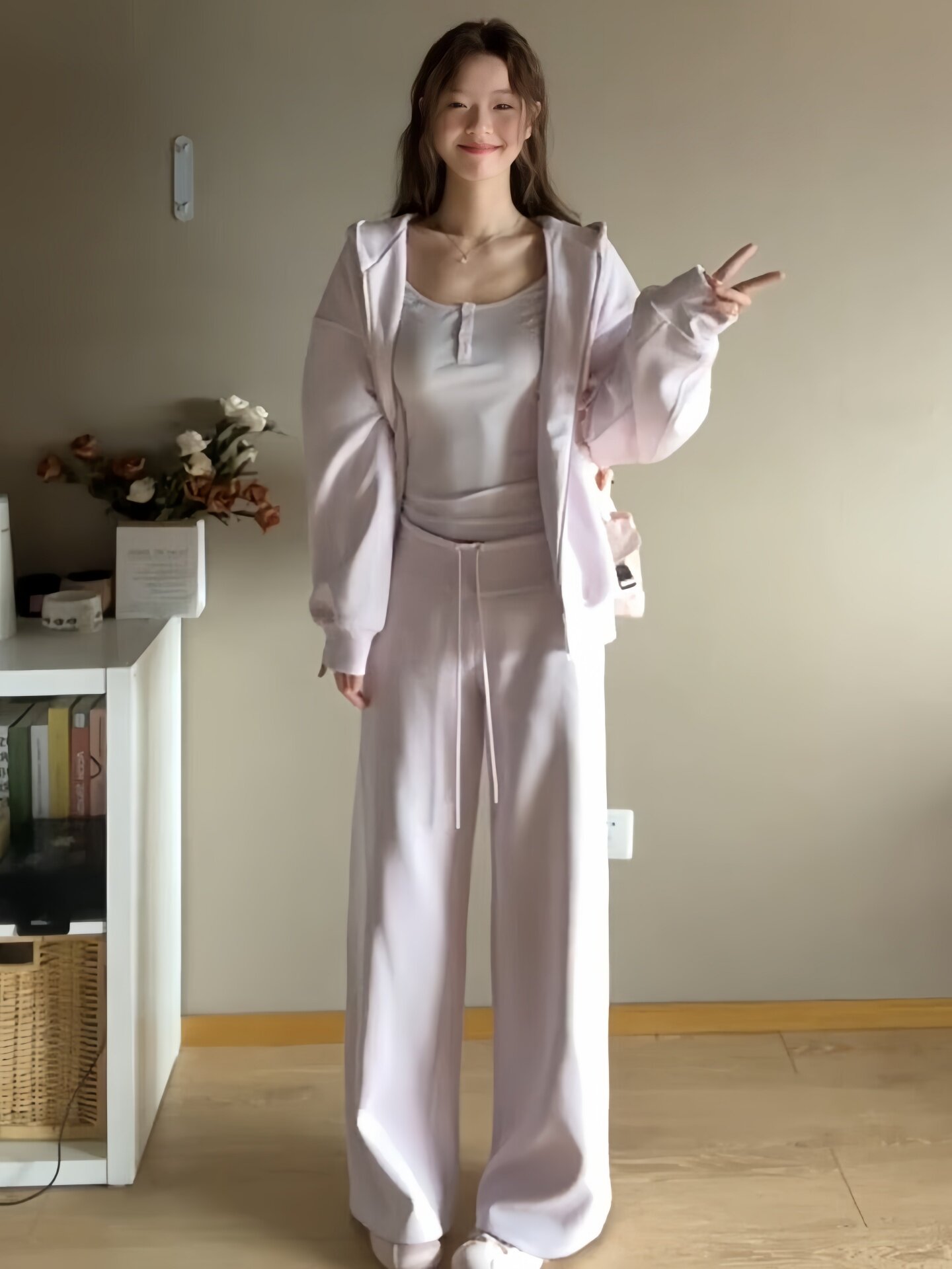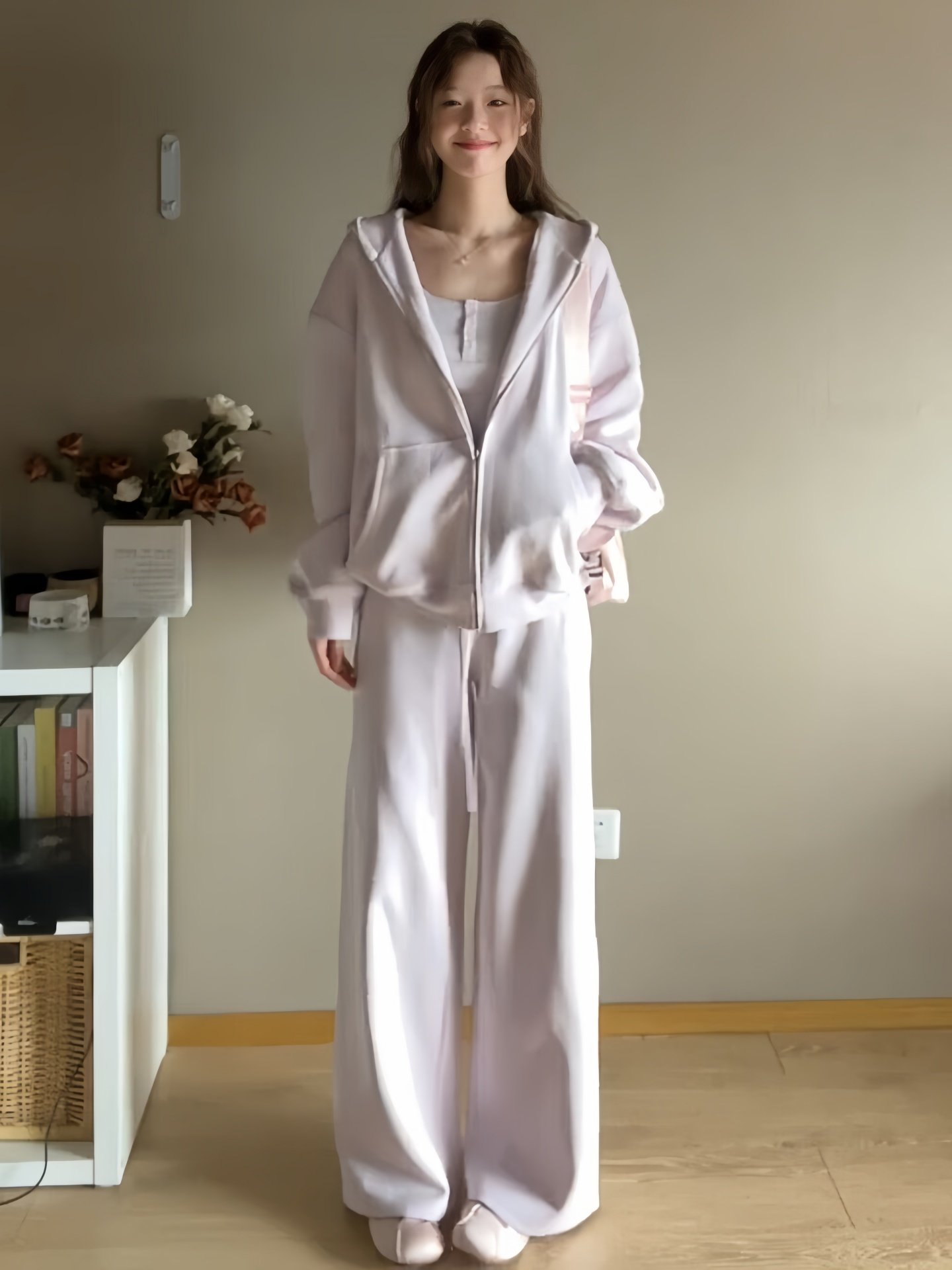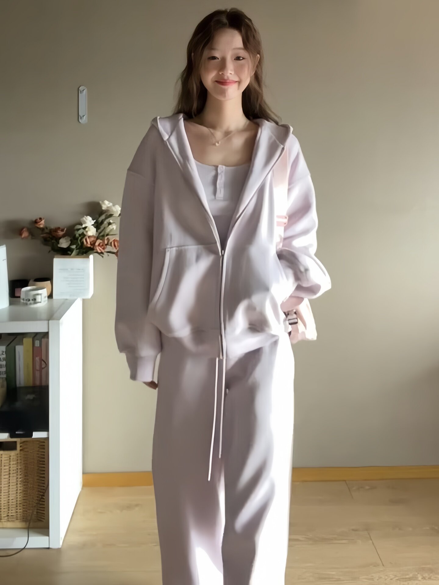 纯棉盐系运动服套装女春秋宽松时尚减龄慵懒风卫衣长裤休闲两件套