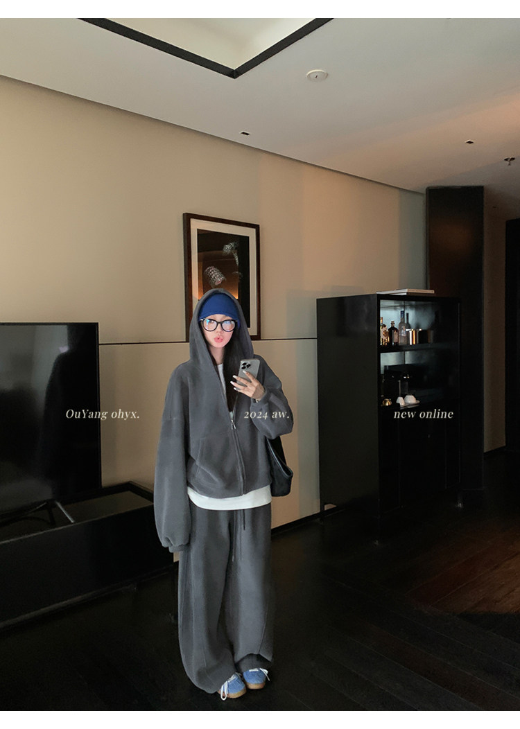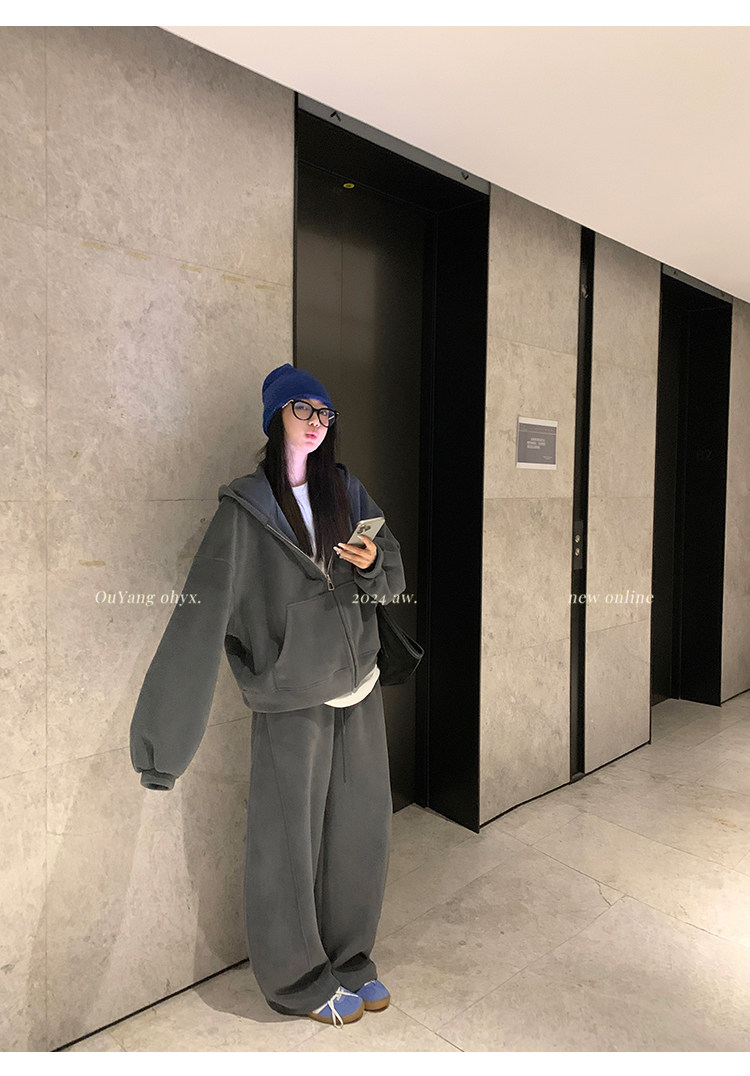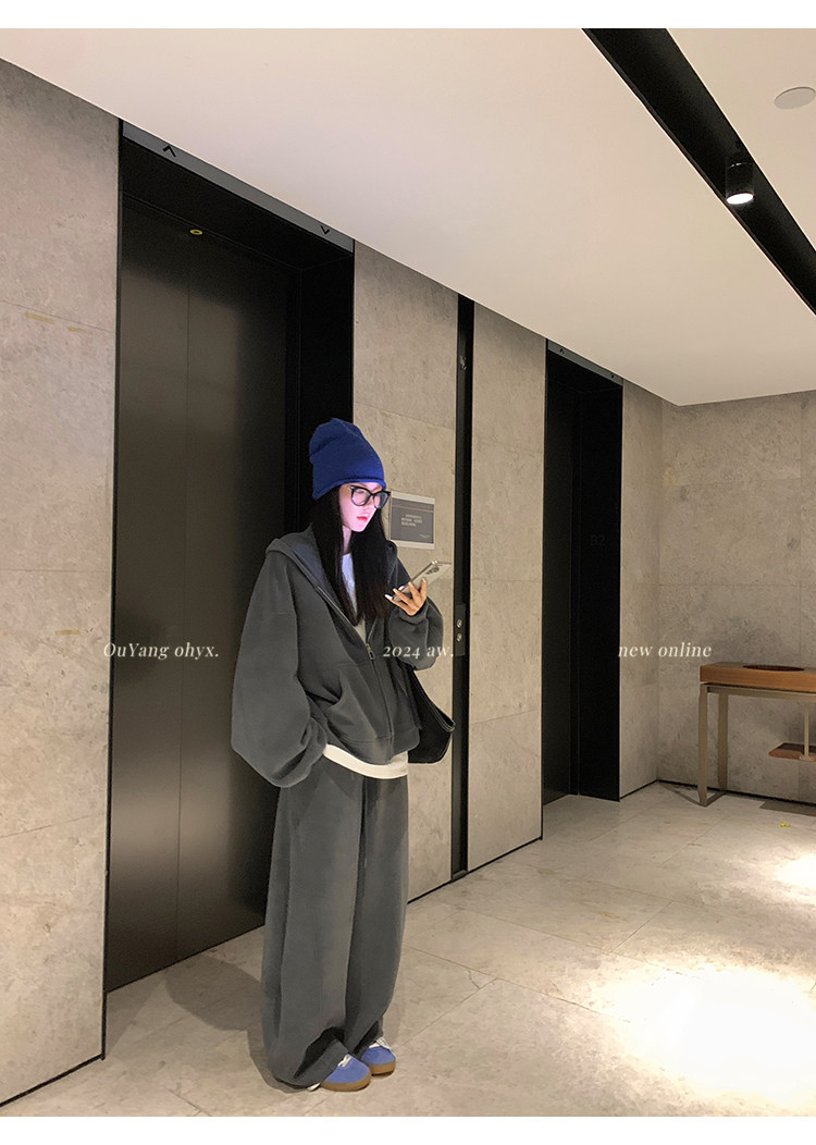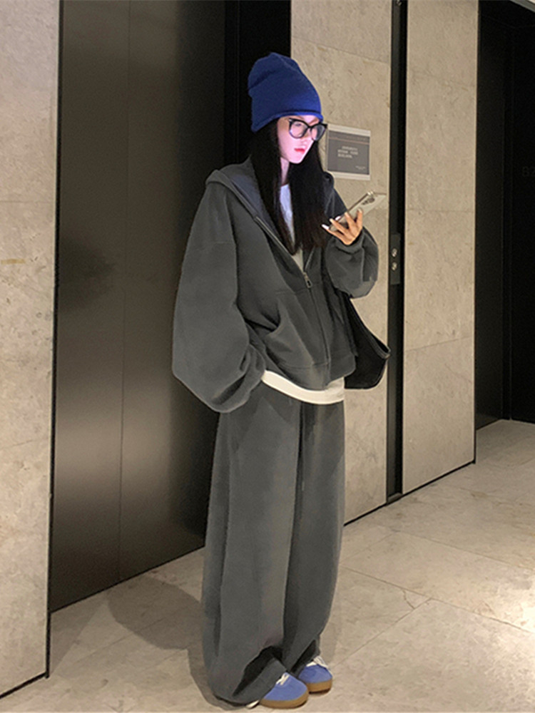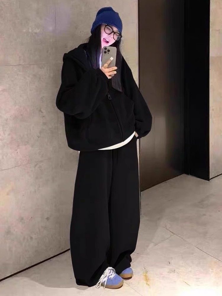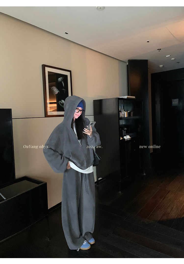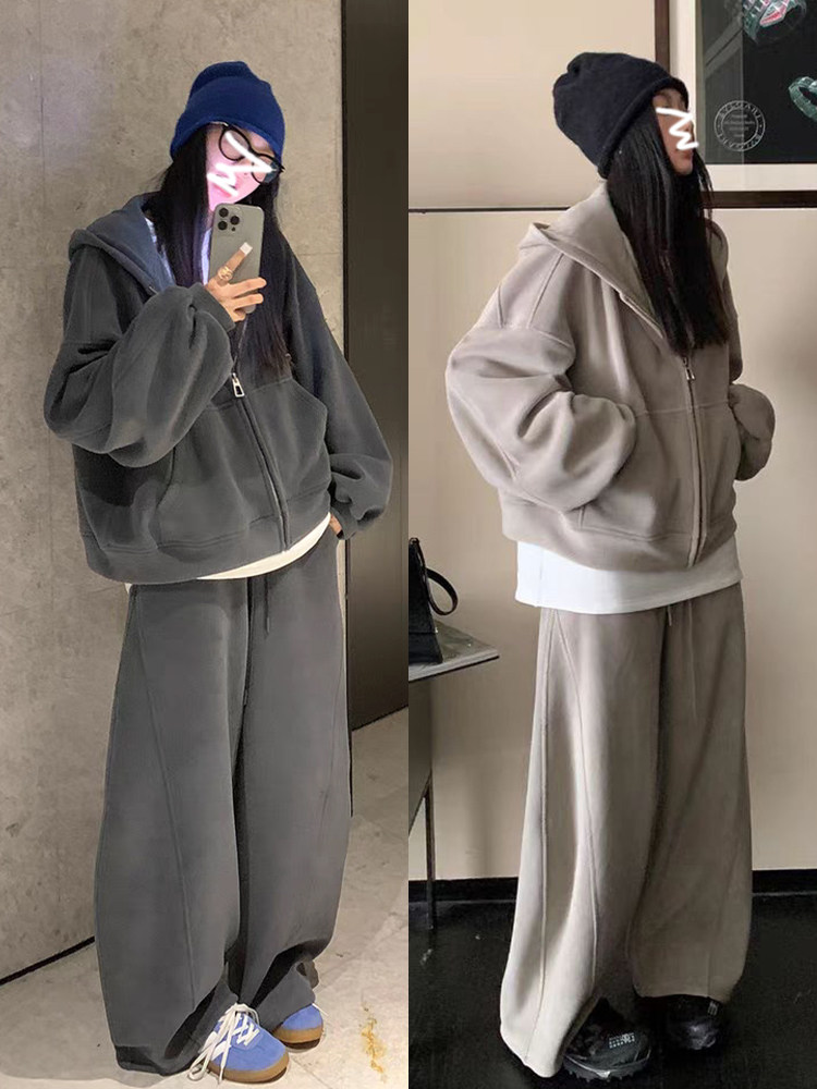 高级感宽松休闲运动套装女春秋学生韩版时尚连帽卫衣阔腿裤两件套