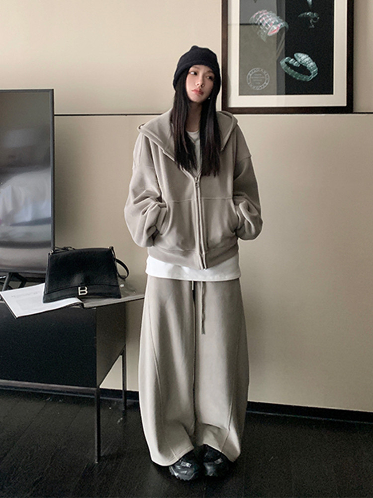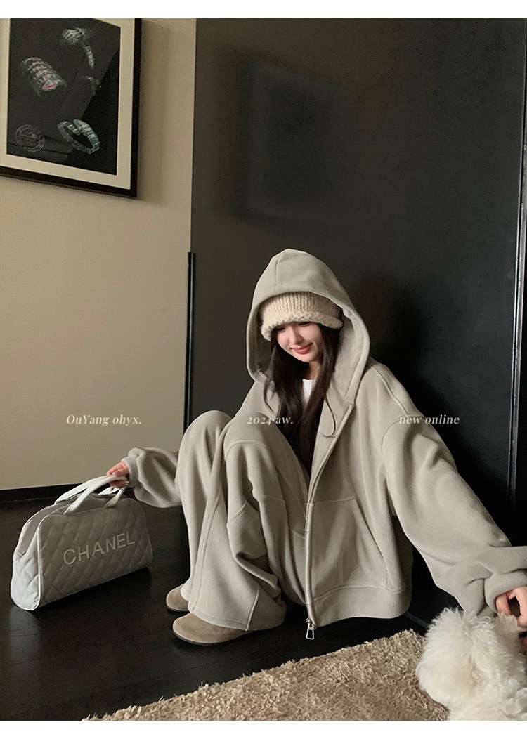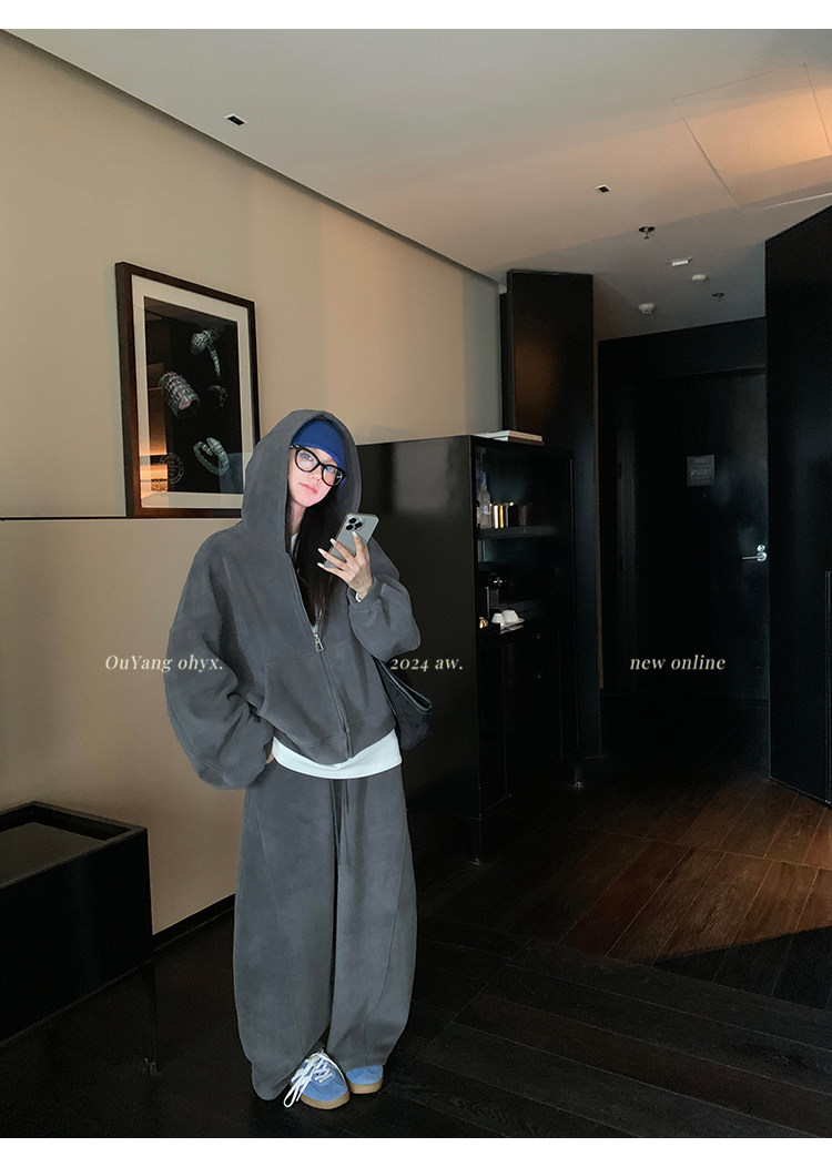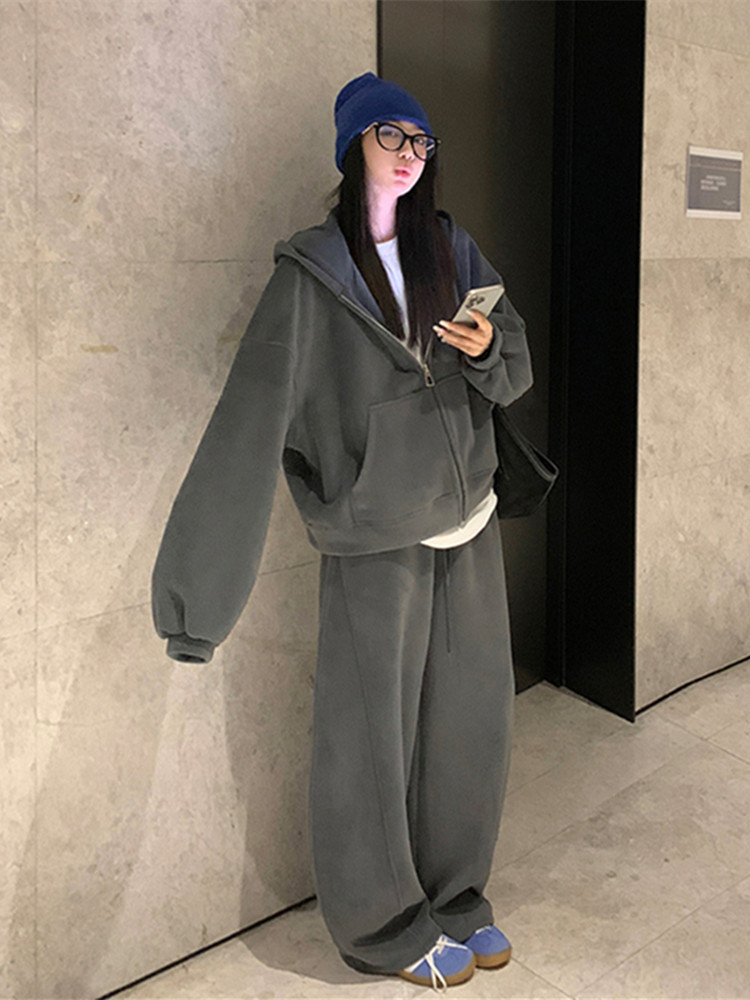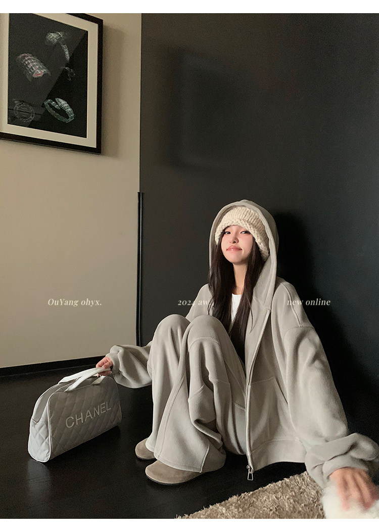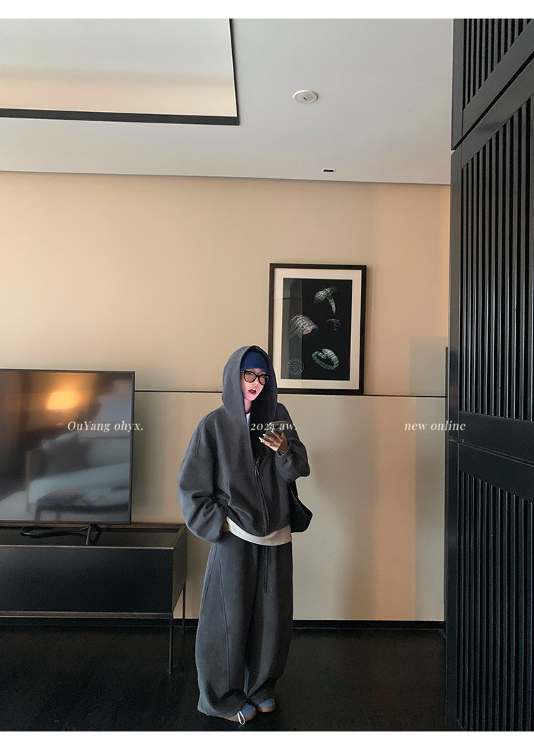 高级感宽松休闲运动套装女春秋学生韩版时尚连帽卫衣阔腿裤两件套