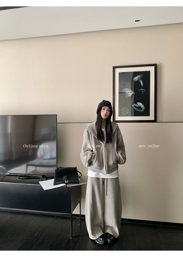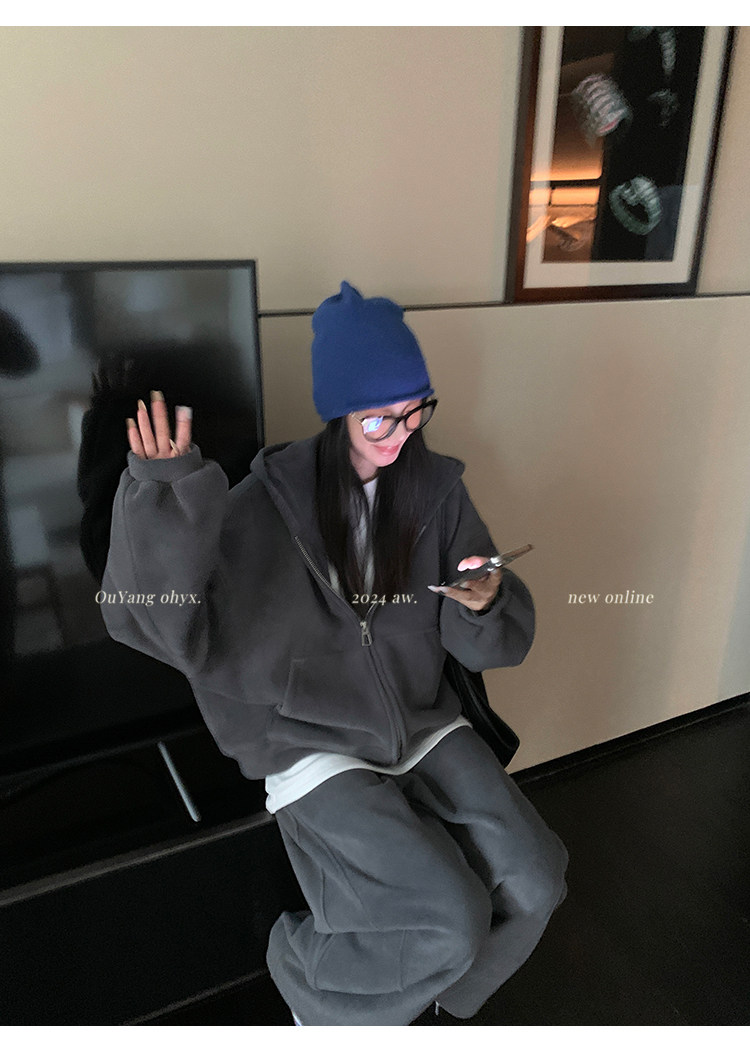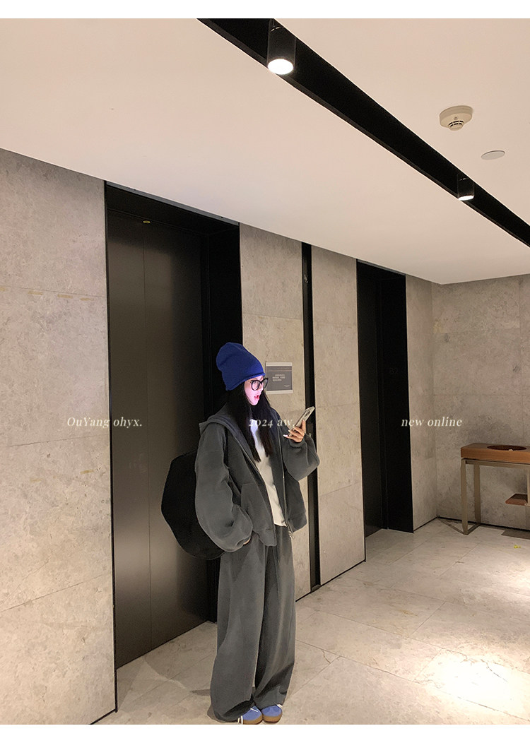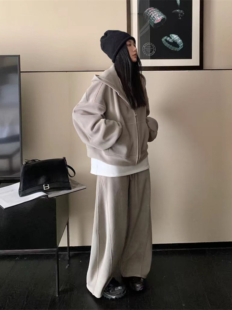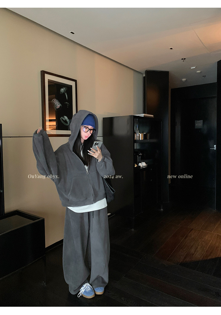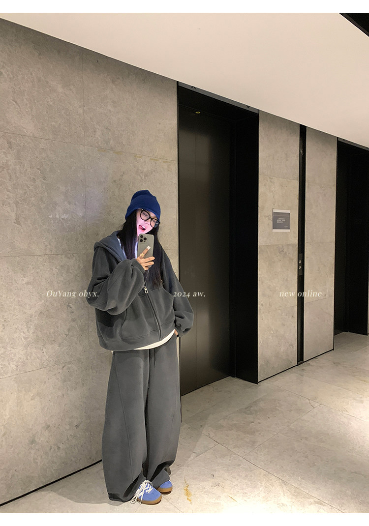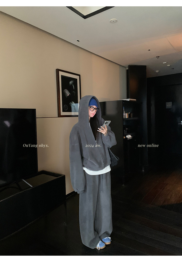 高级感宽松休闲运动套装女春秋学生韩版时尚连帽卫衣阔腿裤两件套