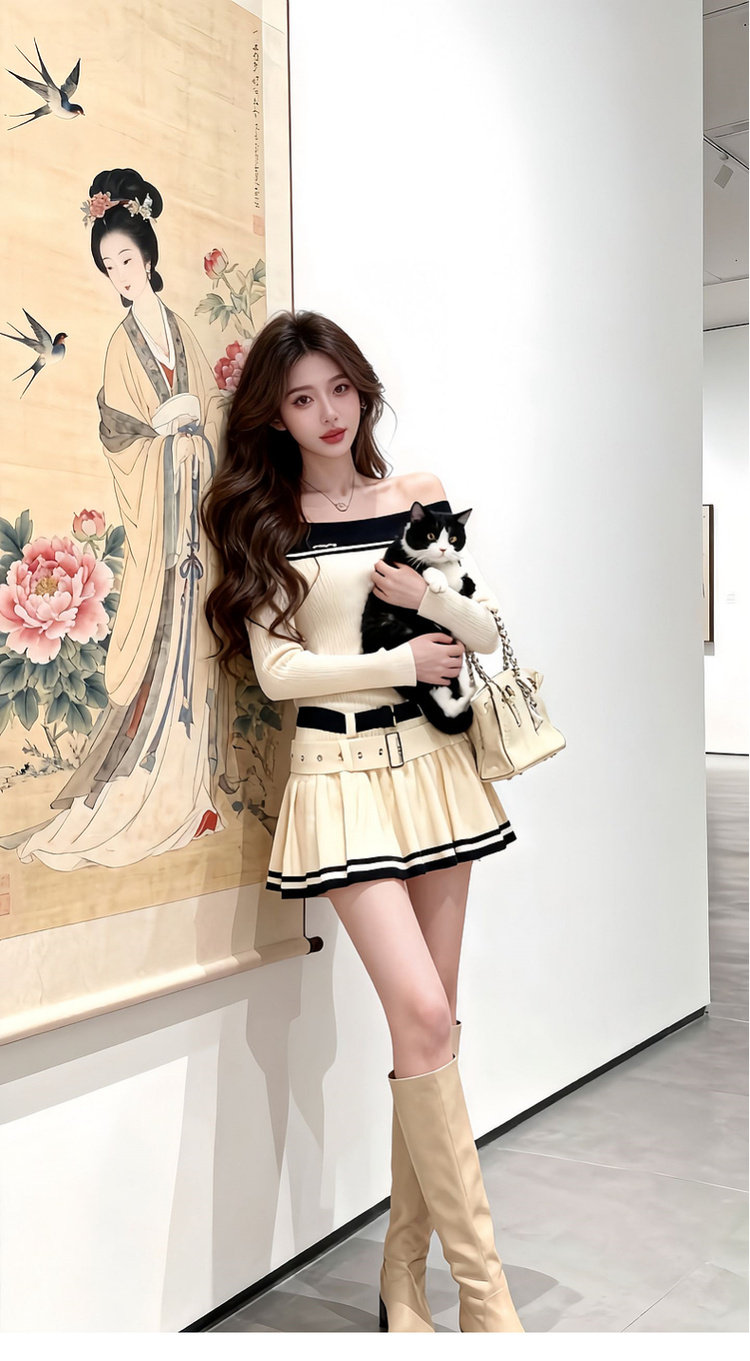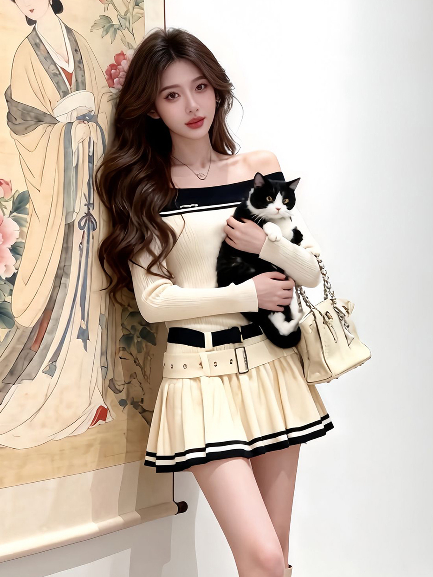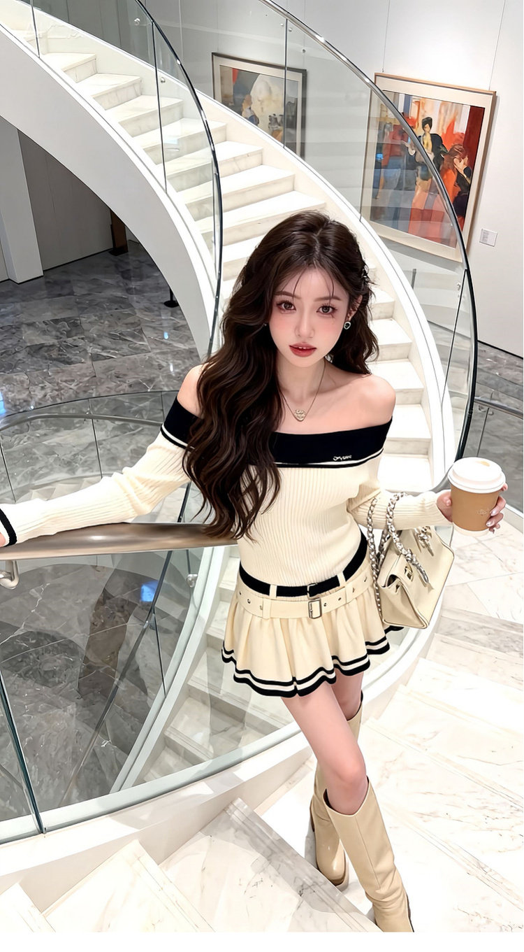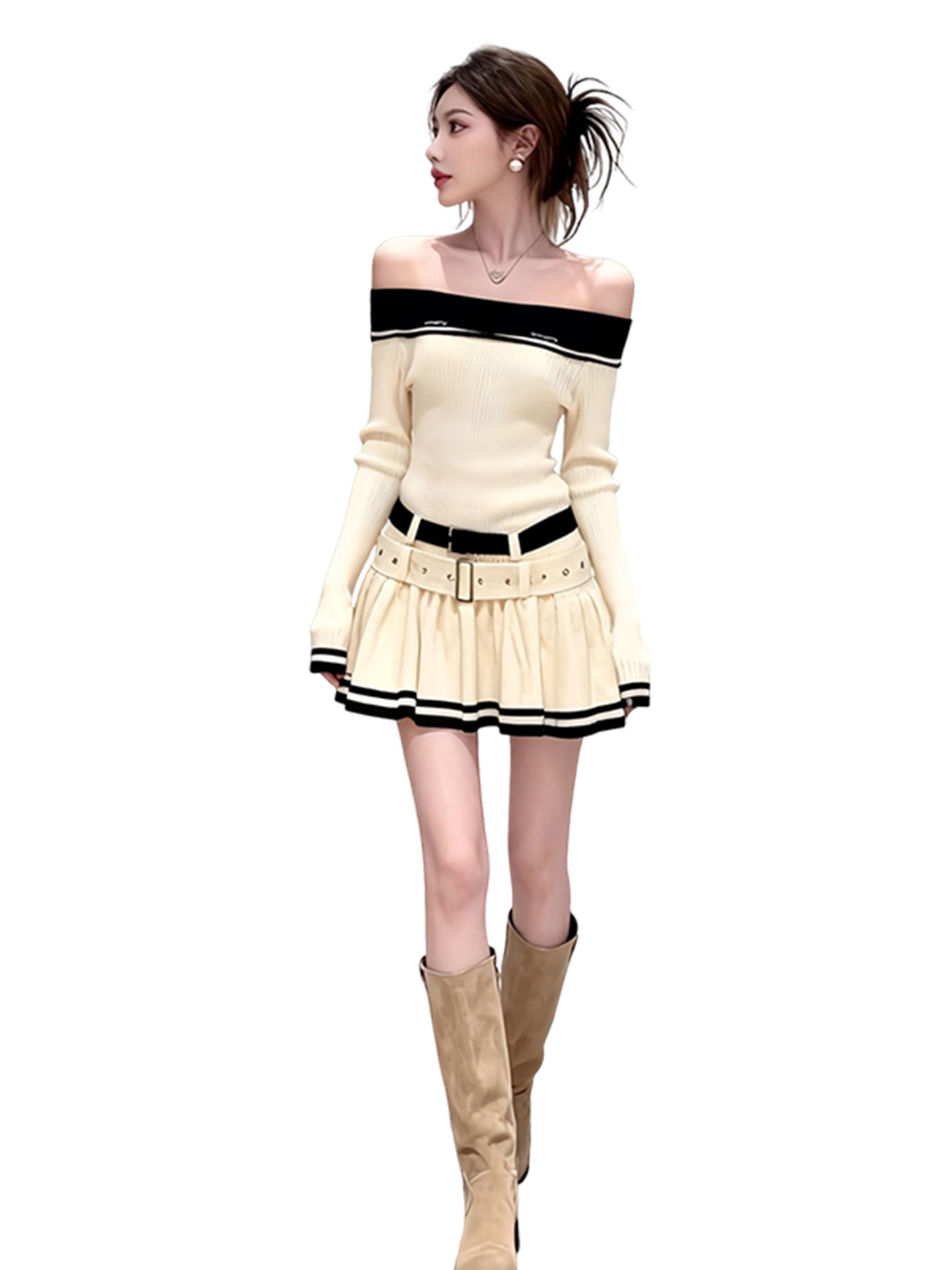 早春季一字肩针织连衣裙子女2026新款秋冬穿搭特别漂亮掐腰小裙子