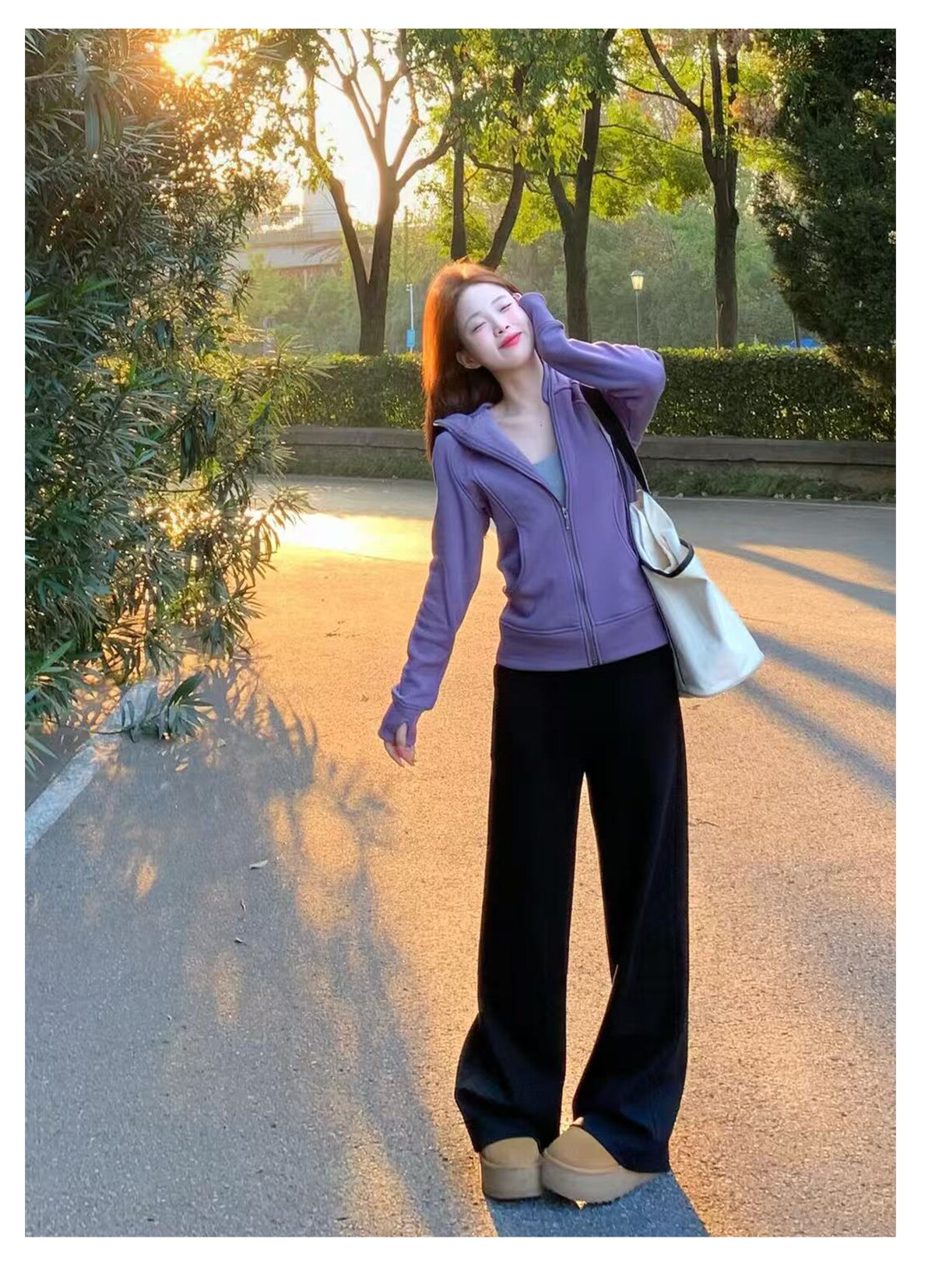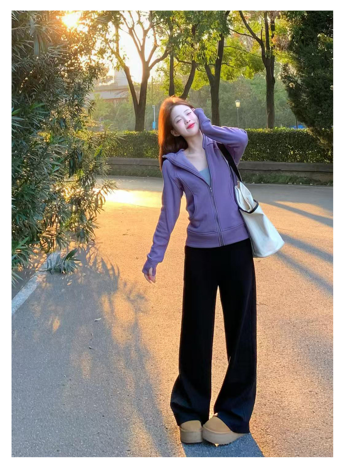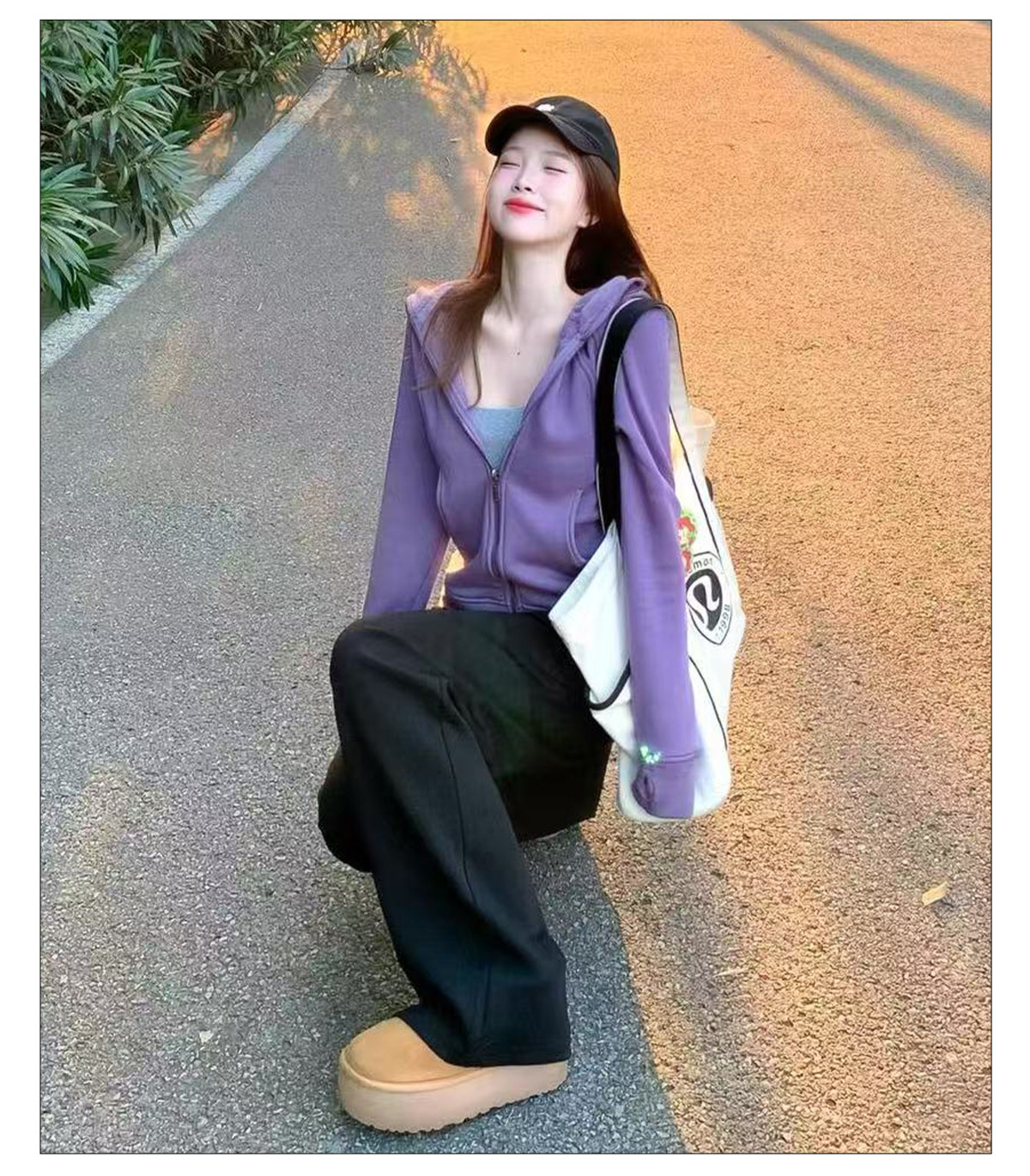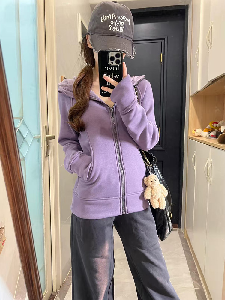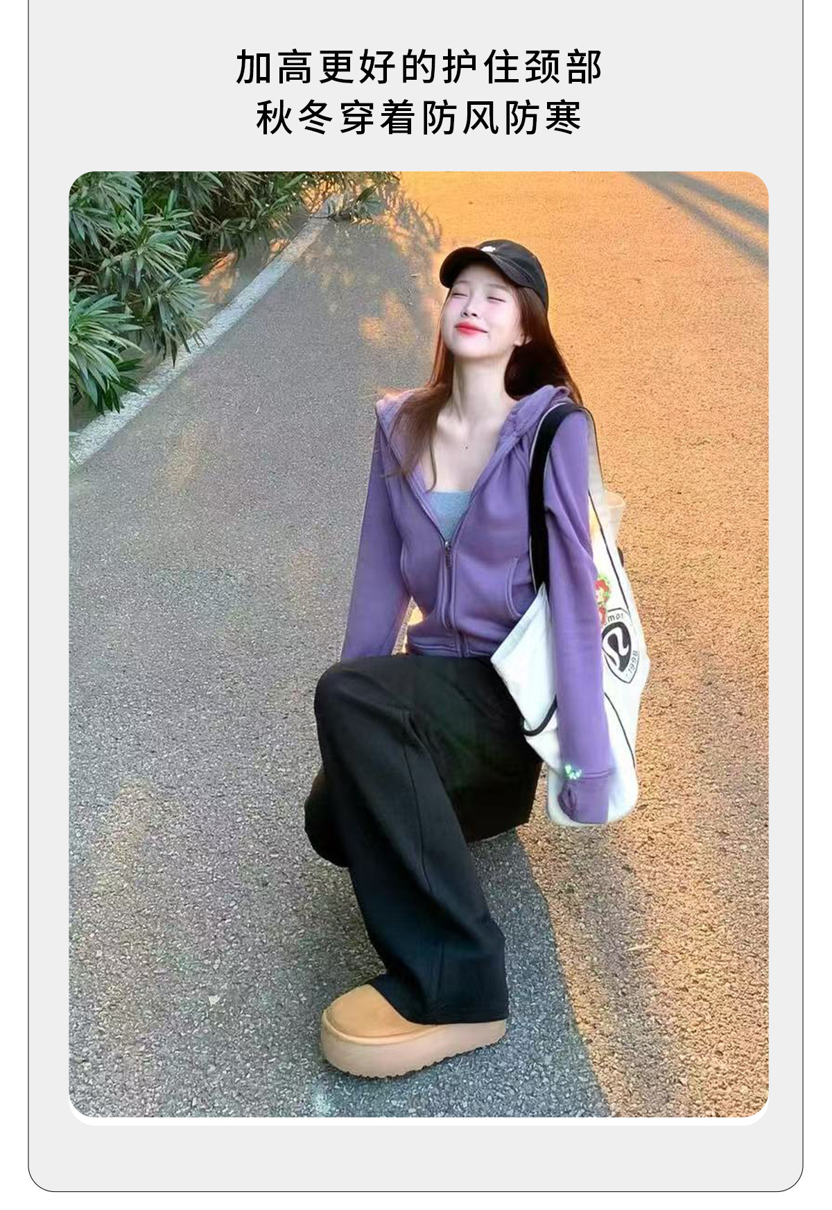 紫色卫衣外套女2026新款今年流行爆款小个子短款修身上衣春季连帽