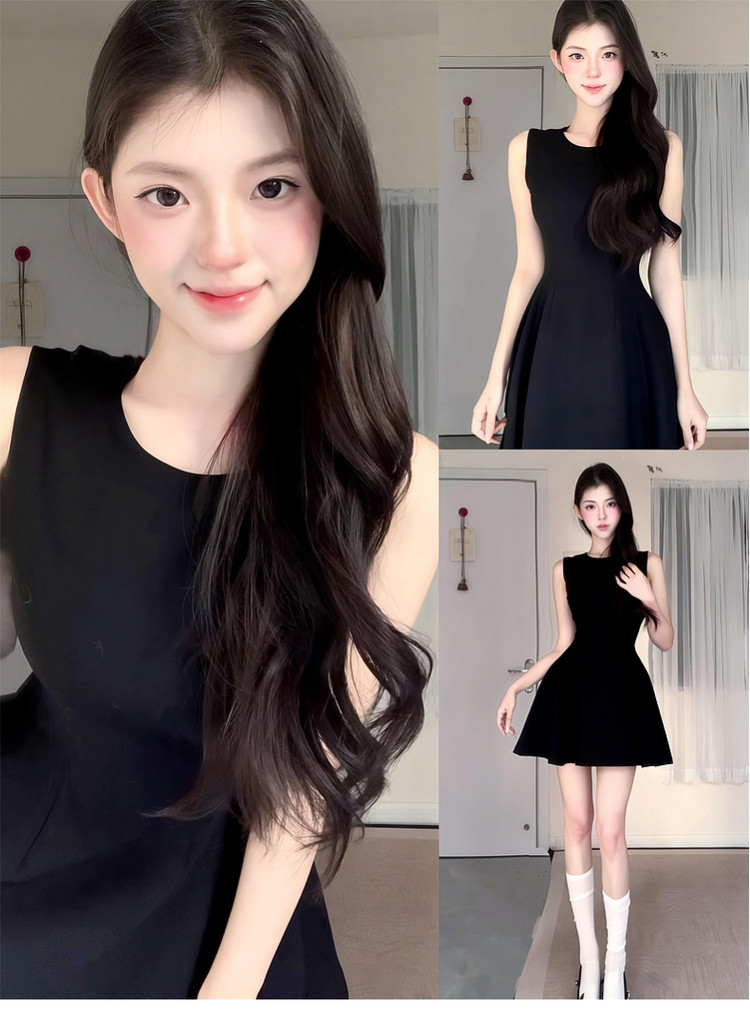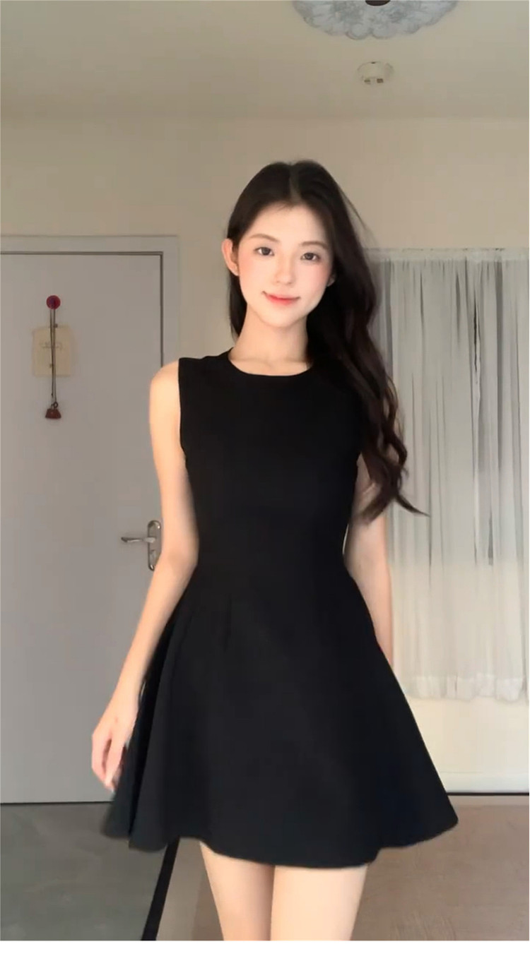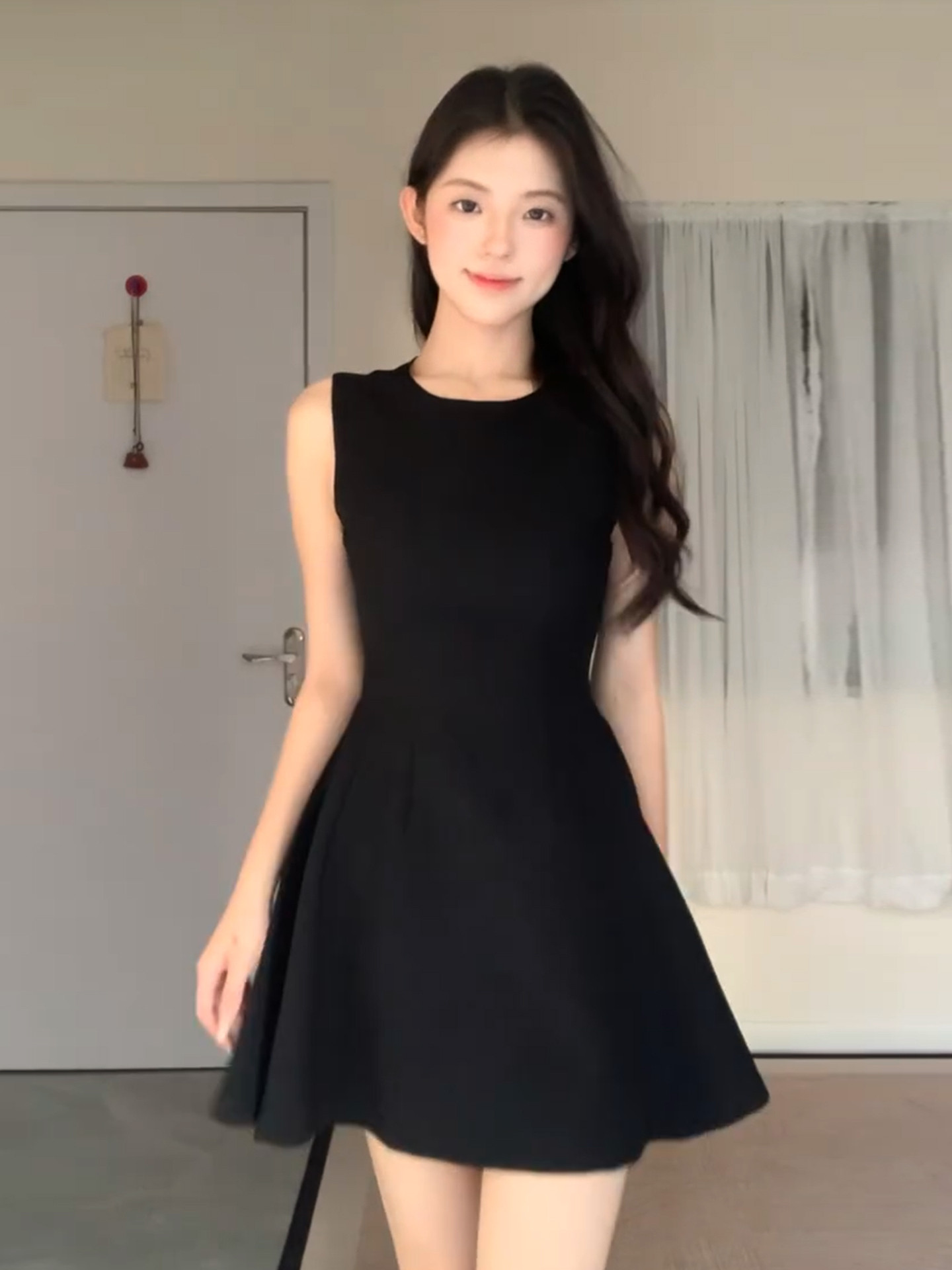 法式黑色气质无袖背心连衣裙子女装早春2026新款高级感赫本风短裙