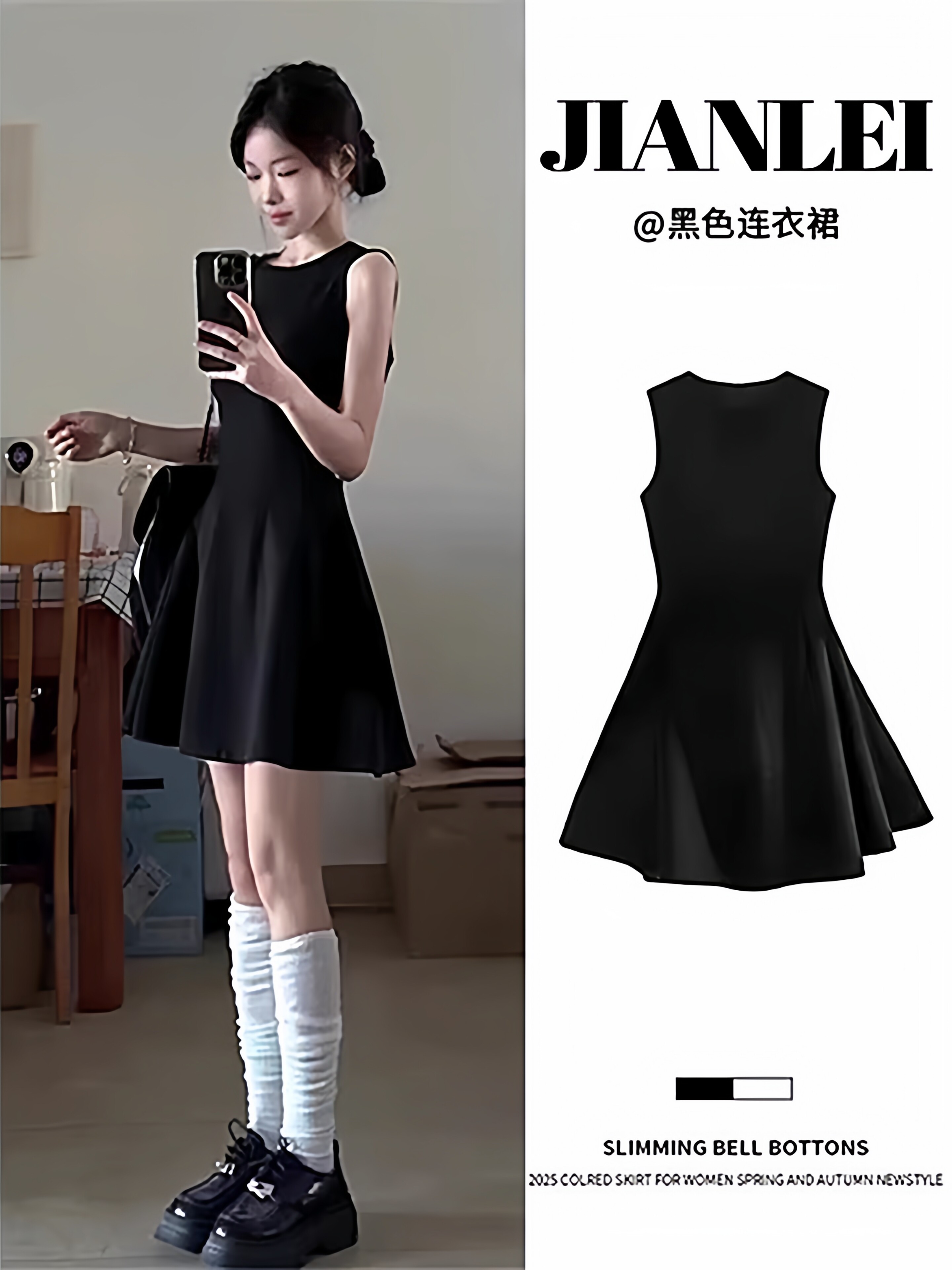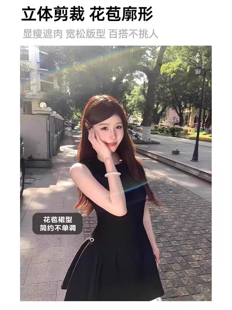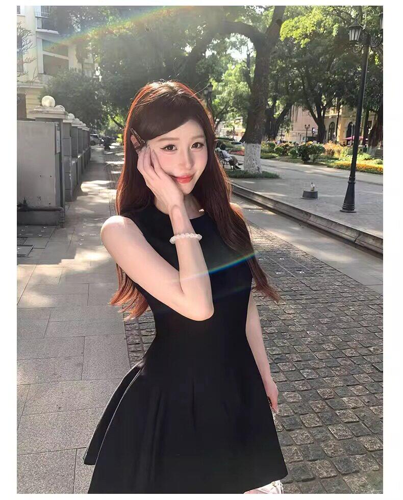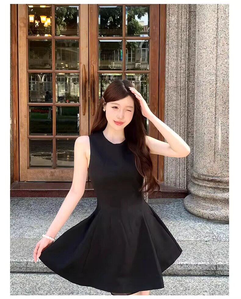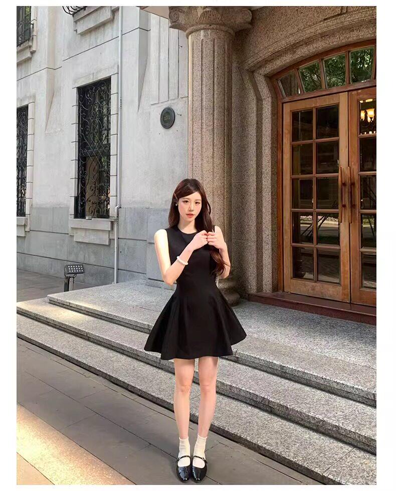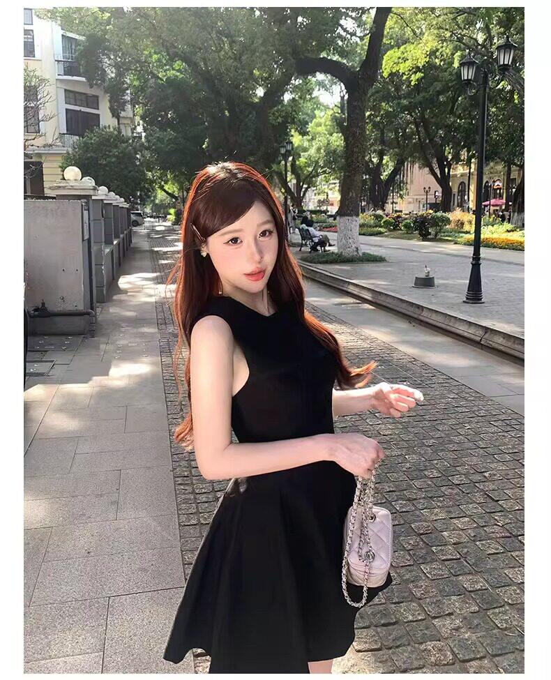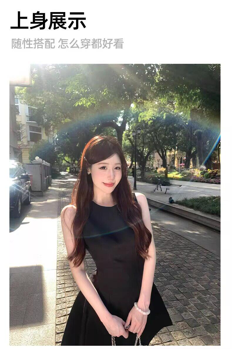 黑色法式连衣裙女款掐腰U领A字小黑裙春季2026新款赫本风韩系裙子