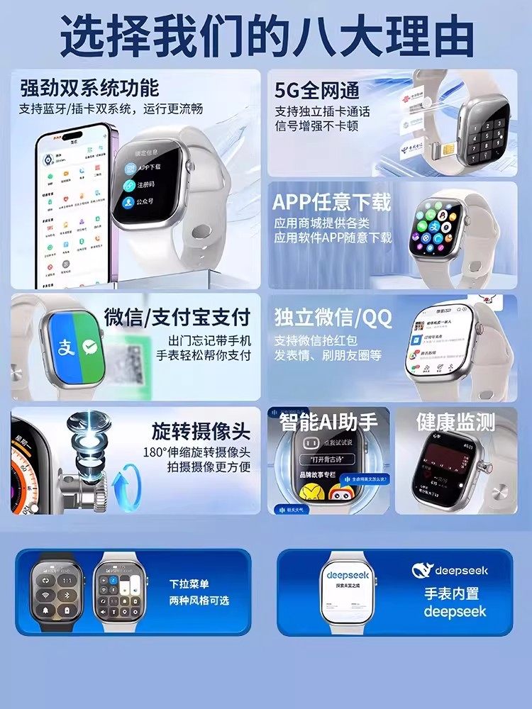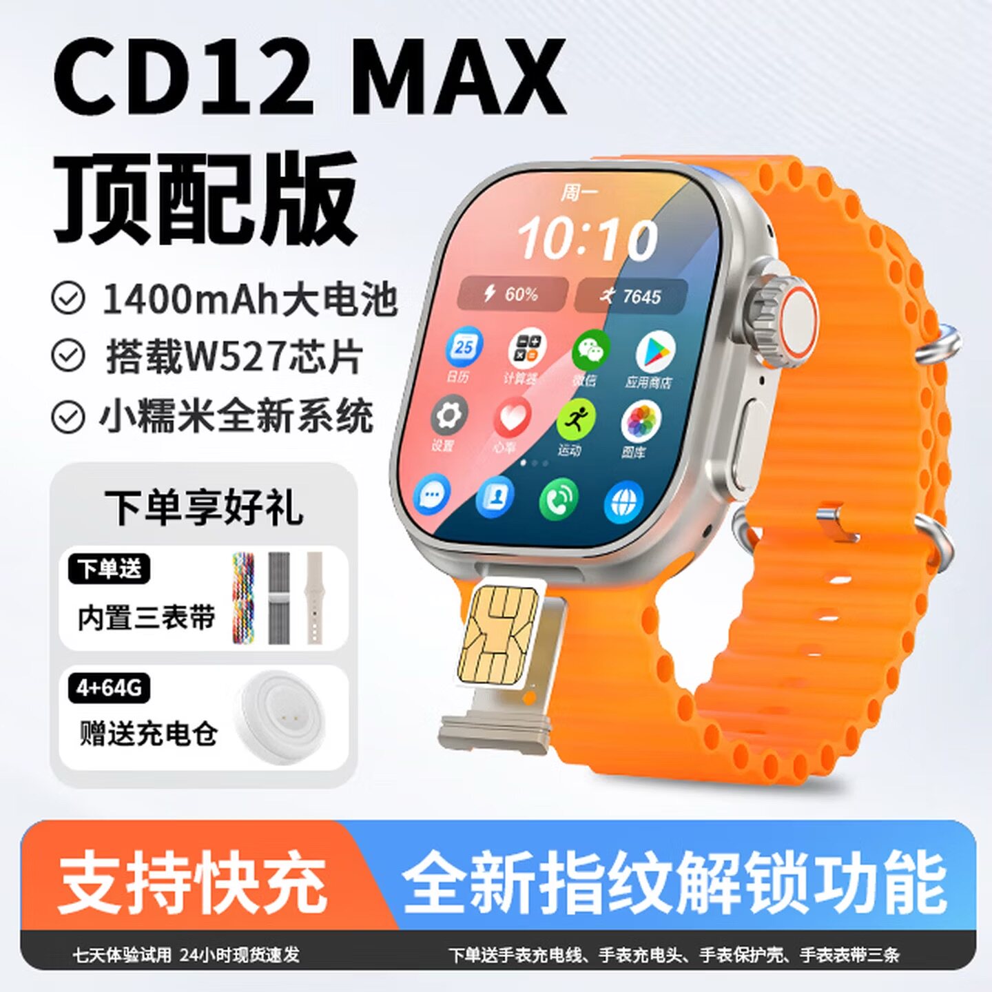 华强北W527芯片CD12max智能手表1400毫安蜂窝版5G全网通插卡手表