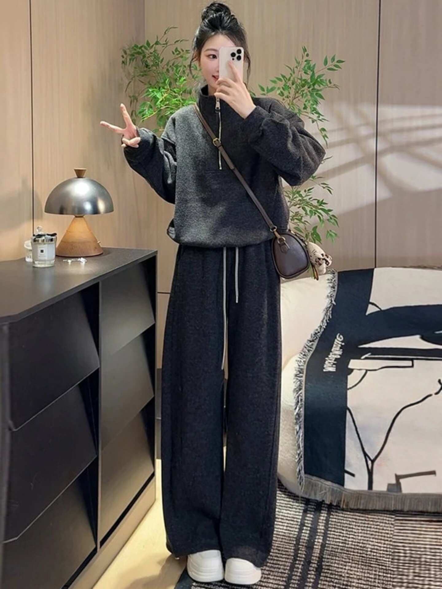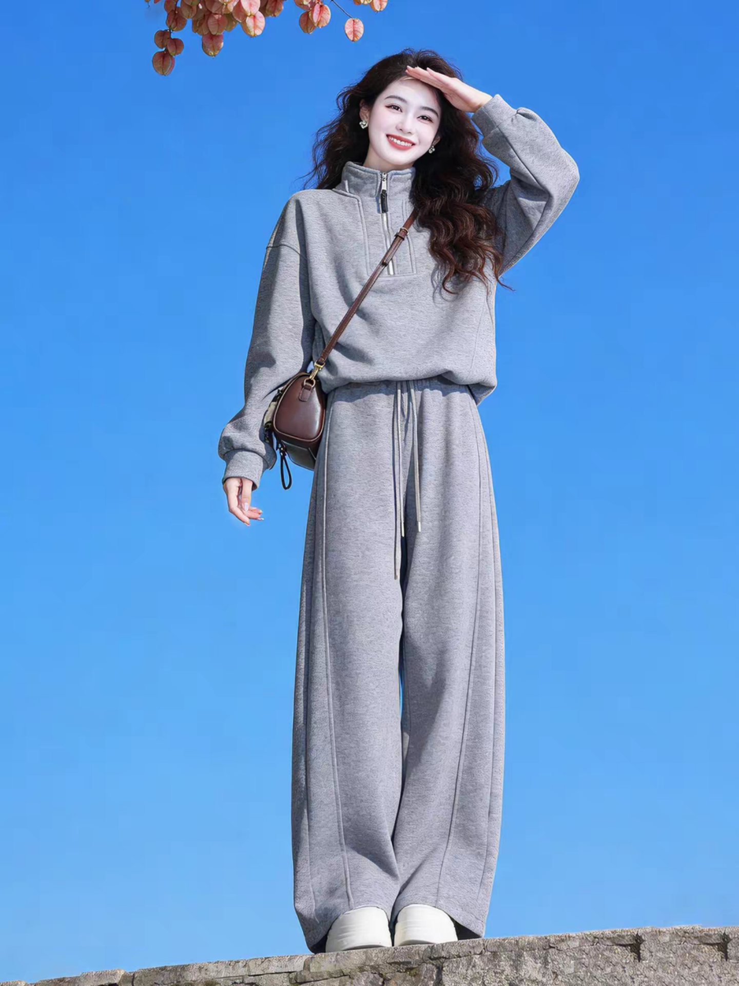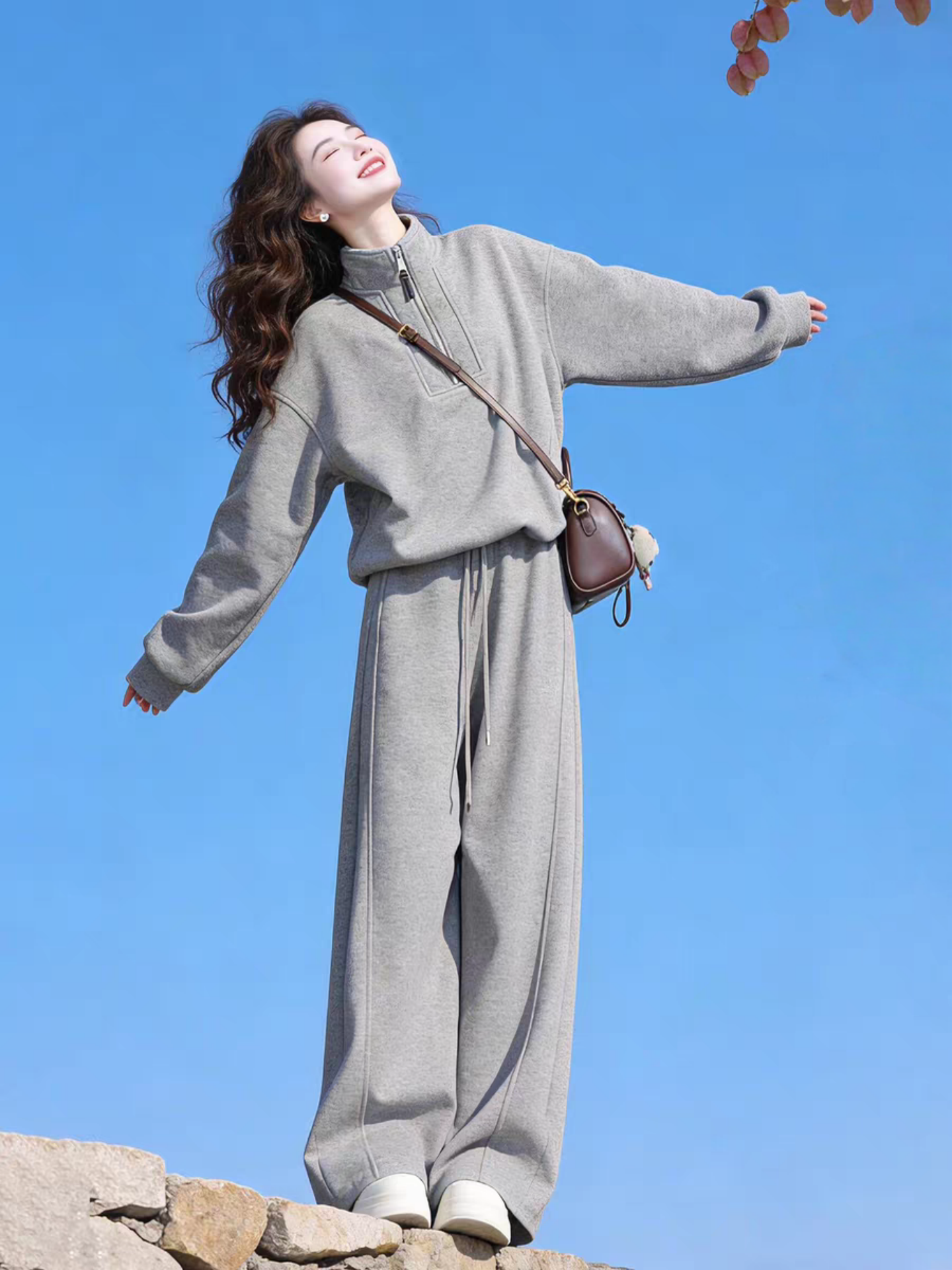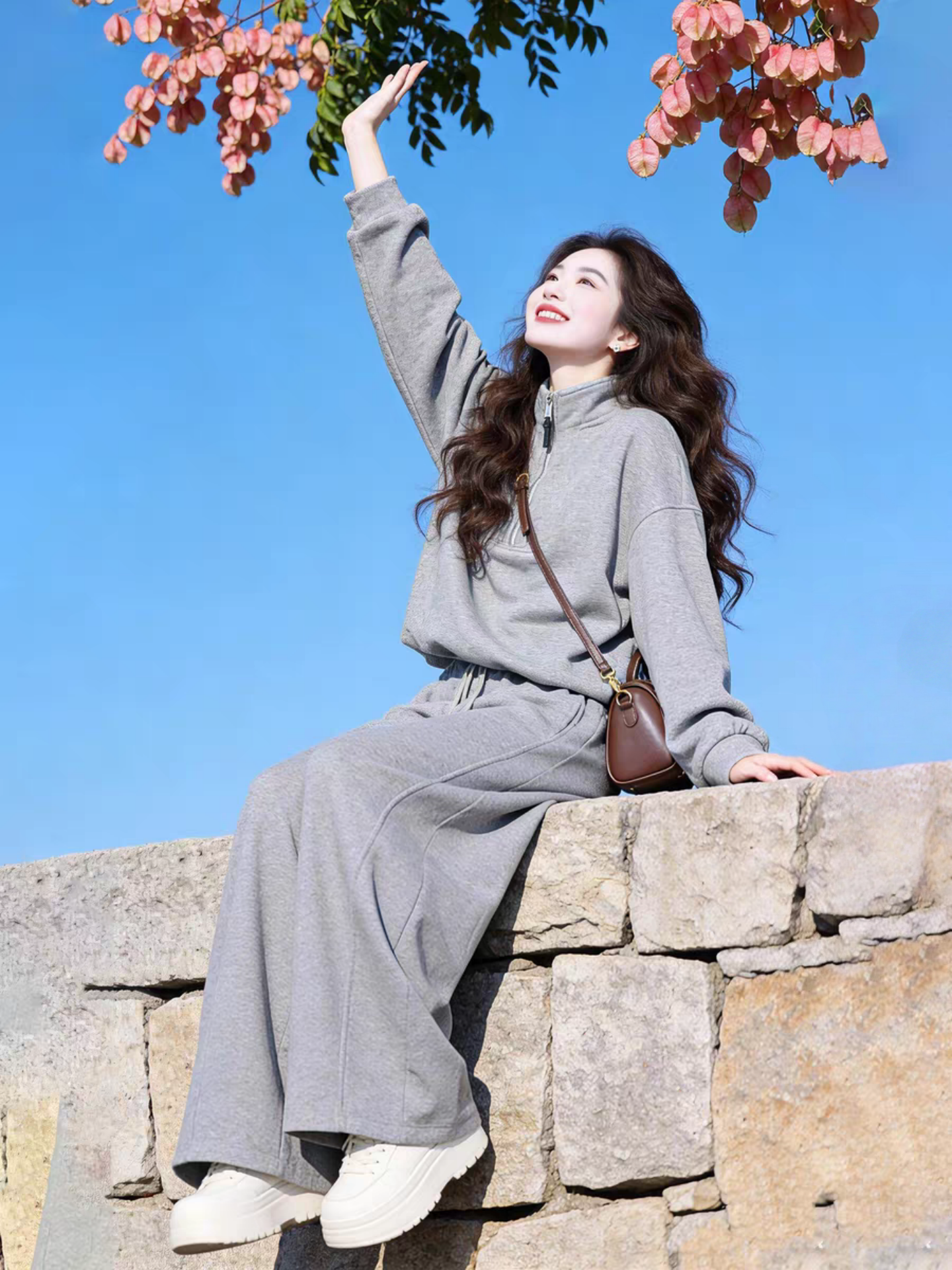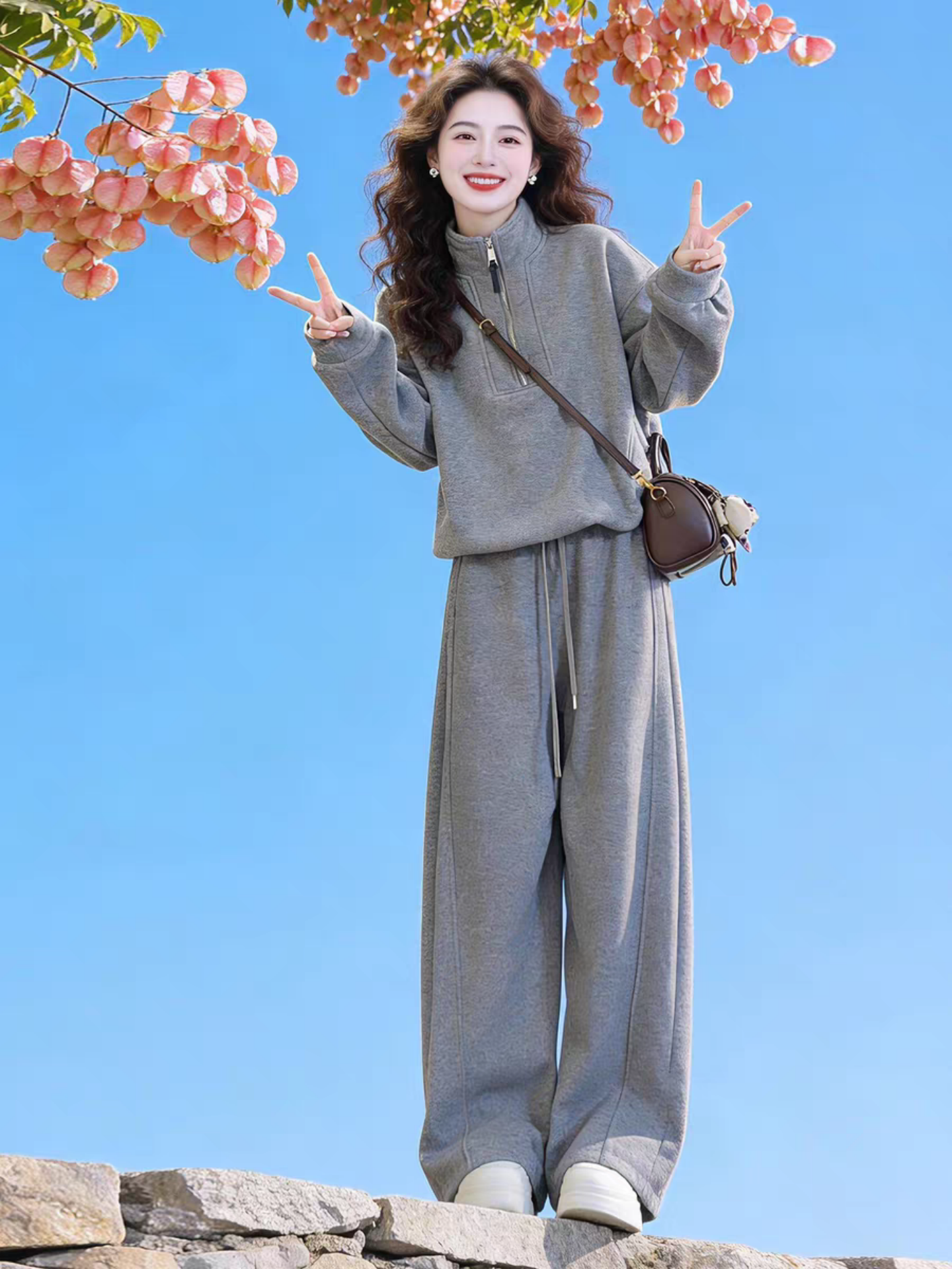 盐系运动服套装女春秋学生韩版宽松显瘦时尚卫衣阔腿裤休闲两件套