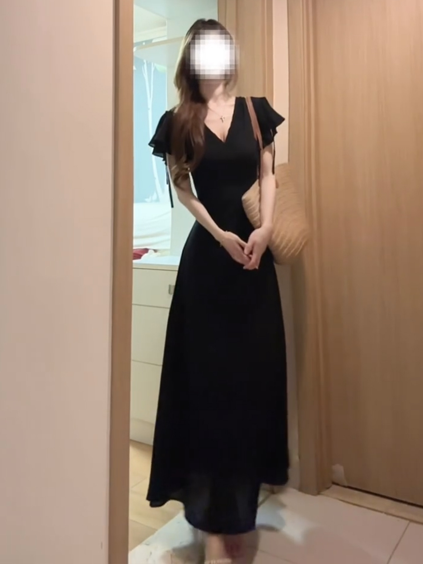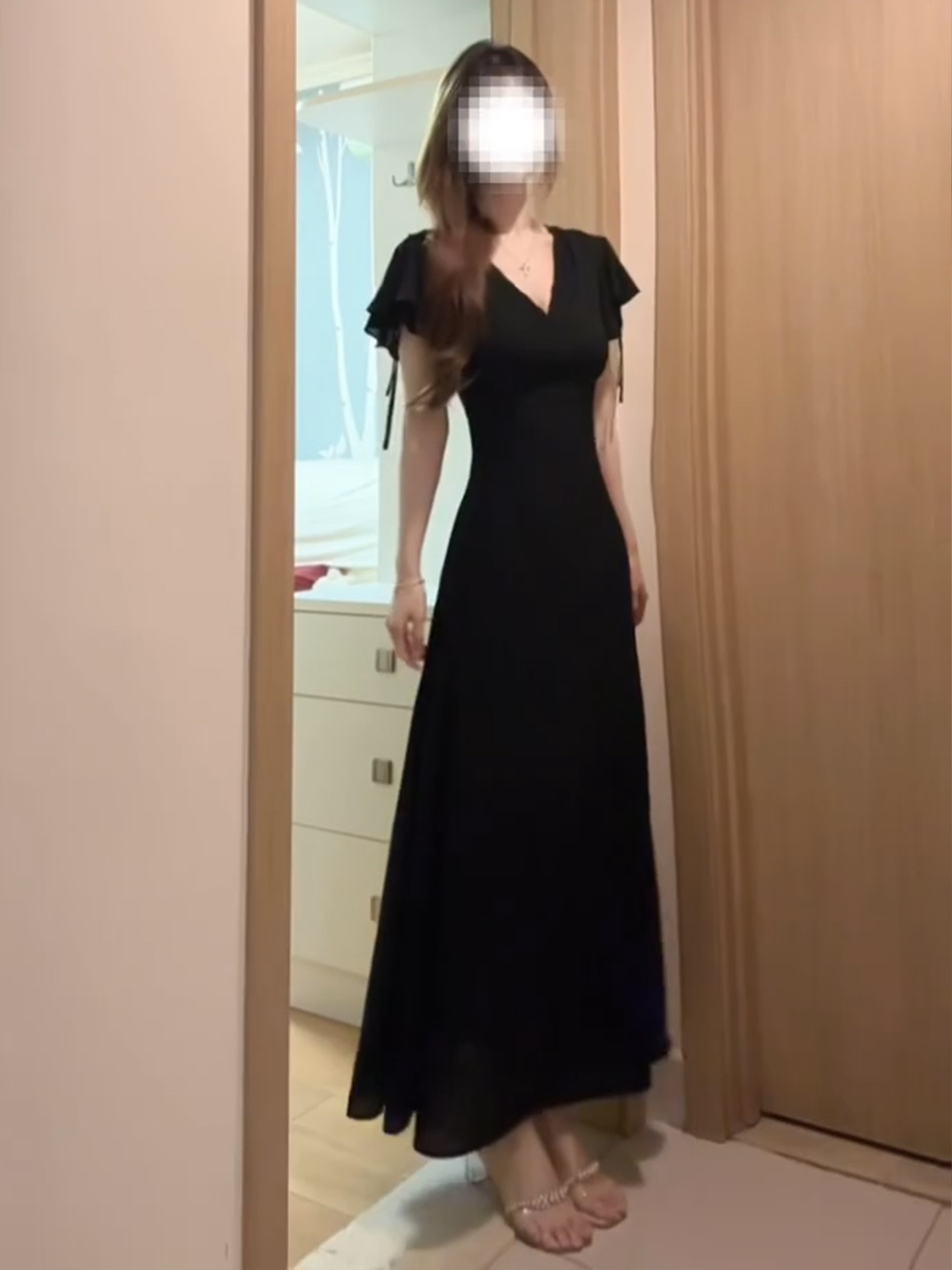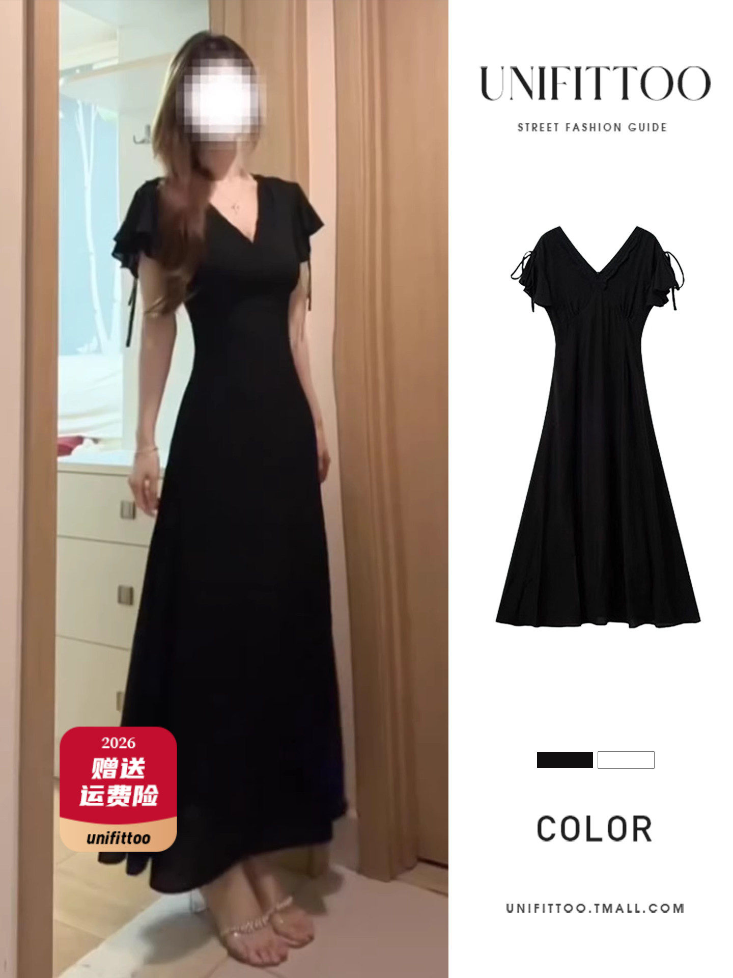 2026新款黑色v领连衣裙子赫本风法式女装夏季爆款高级感气质长裙