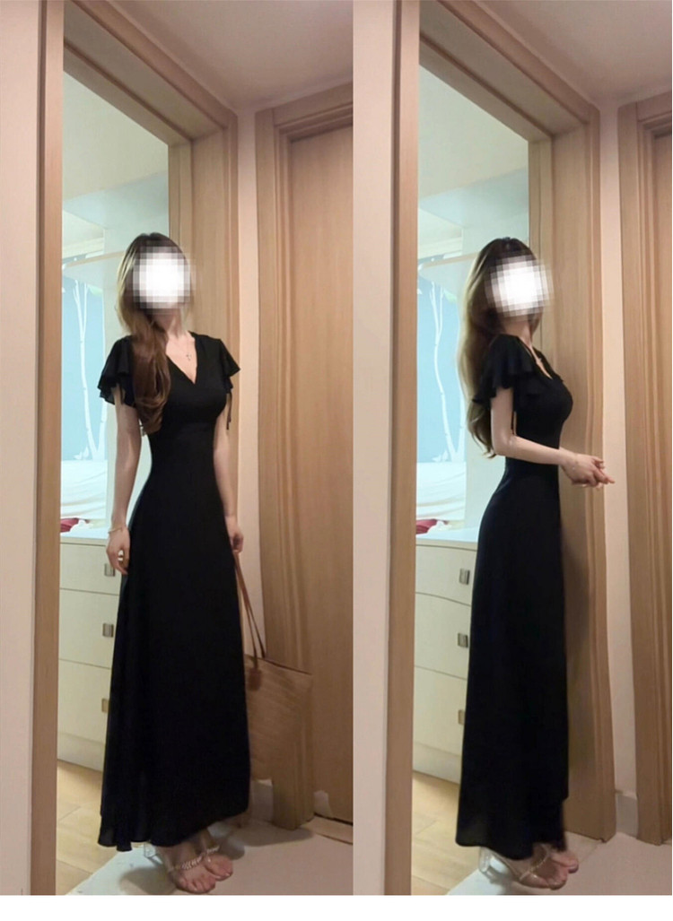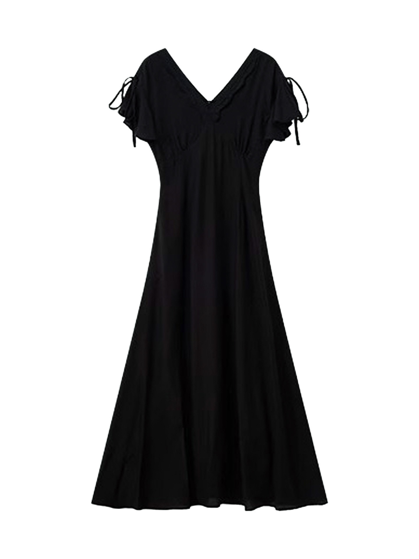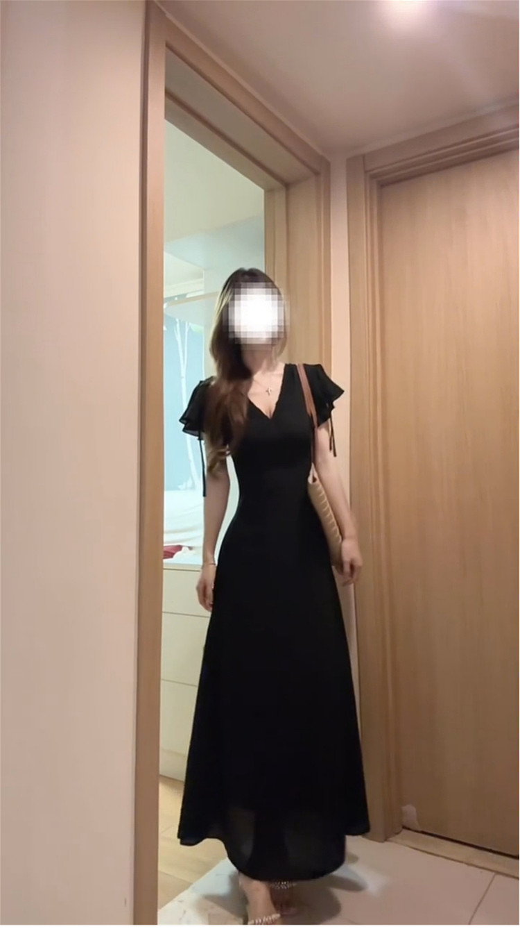 2026新款黑色v领连衣裙子赫本风法式女装夏季爆款高级感气质长裙